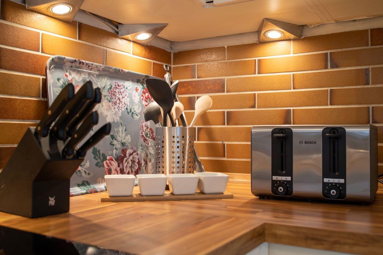 Die vollausgestattete Küche lädt zur großen Kochsession ein und im ganzen Haus finden sich Entertainmentmöglichkeiten wie schnellstes Internet, Spielecken und Fernseher mit Netflix und IP-TV.