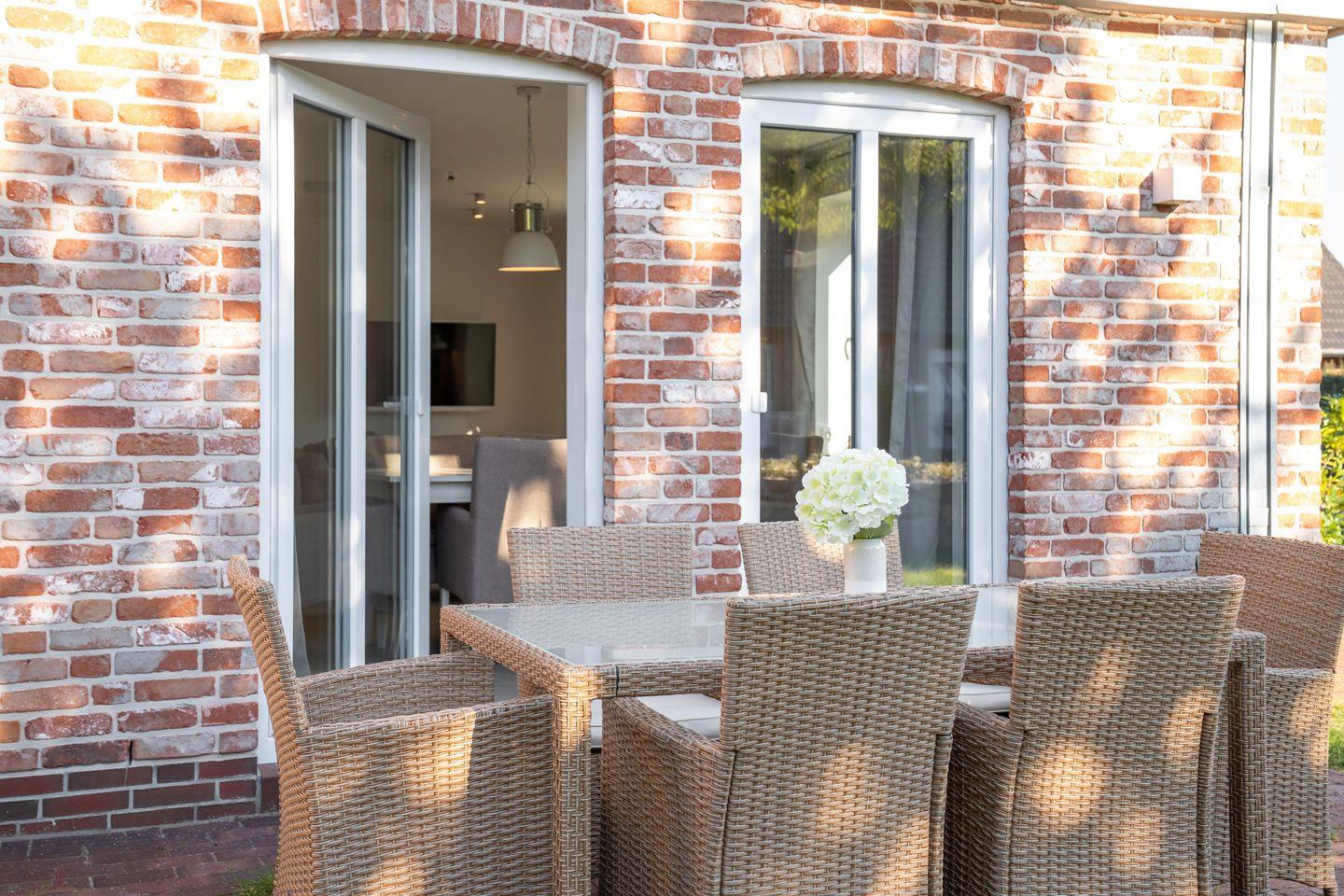 Modernes Ferienhaus Friesentraum in Garding nahe St. Peter-Ording mit Garten, Kamin und vier Bädern für erholsamen Nordseeurlaub.