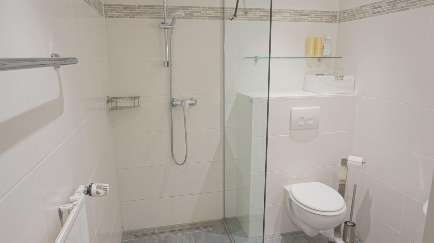 Die Wohnung ist als Nichtraucherunterkunft ausgewiesen und allergikergeeignet. Eine bodengleiche Dusche im Badezimmer, ein Haartrockner, Spiegel und Waschbecken ergänzen die Badezimmereinrichtung.