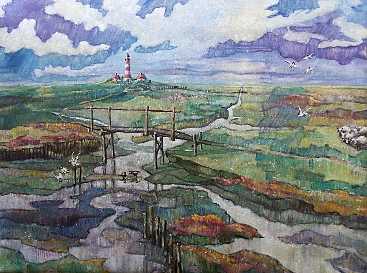 Alle Räume erhalten ihre besondere Note durch die Bilder von Gerhard Rubow. Es sind vornehmlich Landschaftsmotive der Nordseeküste.