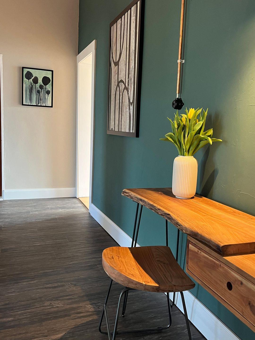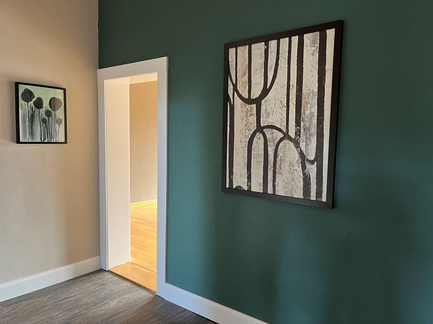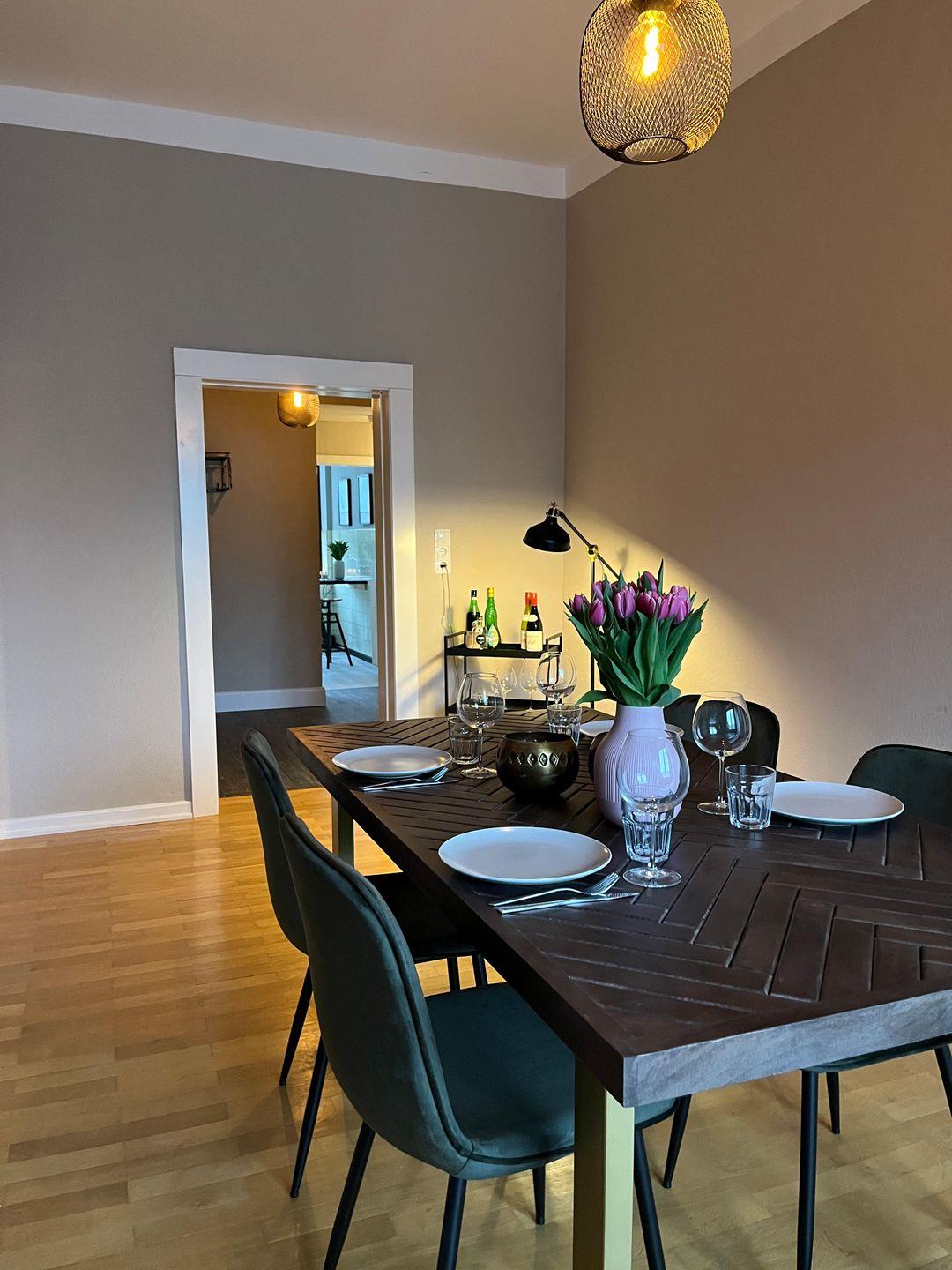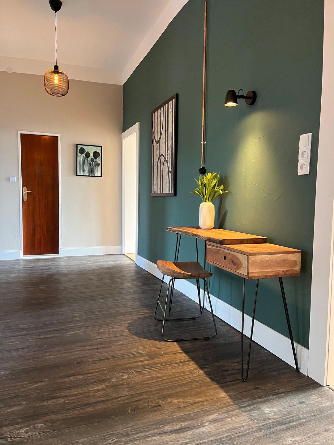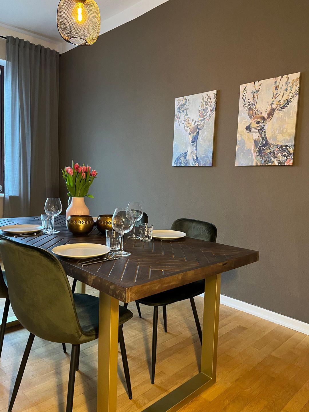 Die 2023 renovierte Unterkunft verbindet wohnliche Details mit praktischer Ausstattung. Im Wohnzimmer mit Parkettboden erwarten Sie eine Sofaecke, ein Sofa, TV mit digitalen internationalen Kanälen, Radio, HiFi-Anlage sowie Bücher. Ein Essbereich mit Esstisch ergänzt die gemeinschaftlich nutzbaren Räume. In den Schlafzimmern sorgen Dielenböden für eine angenehme Atmosphäre. Zusätzlich stehen unter anderem Garderobe, Kommode, Schuhschrank und ein Schreibtisch zur Verfügung.