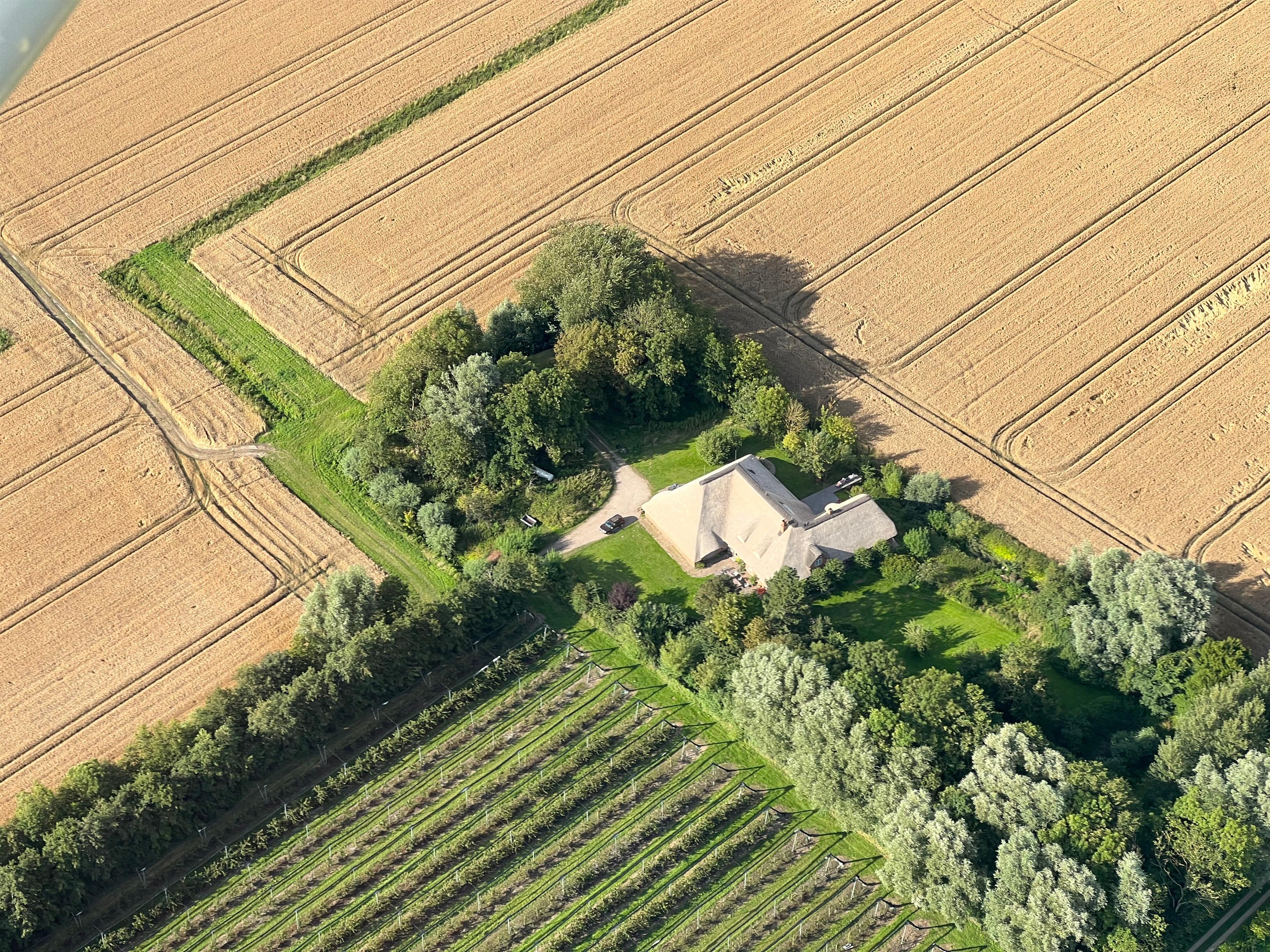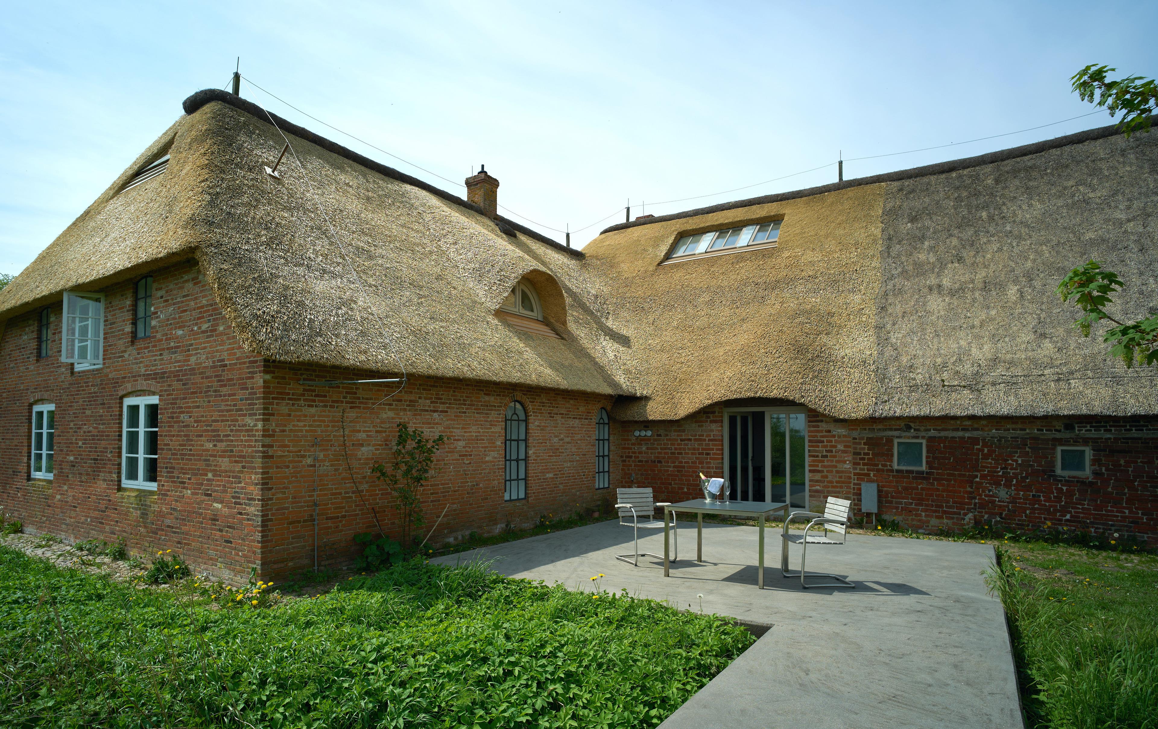 Im Inneren des Anwesens wurden zwei Wohneinheiten errichtet. Zwischen den Eingängen der 2 Haushälften befindet sich die 350 qm große Haubargscheune, die mit dem Wohnhaus verbunden ist.
