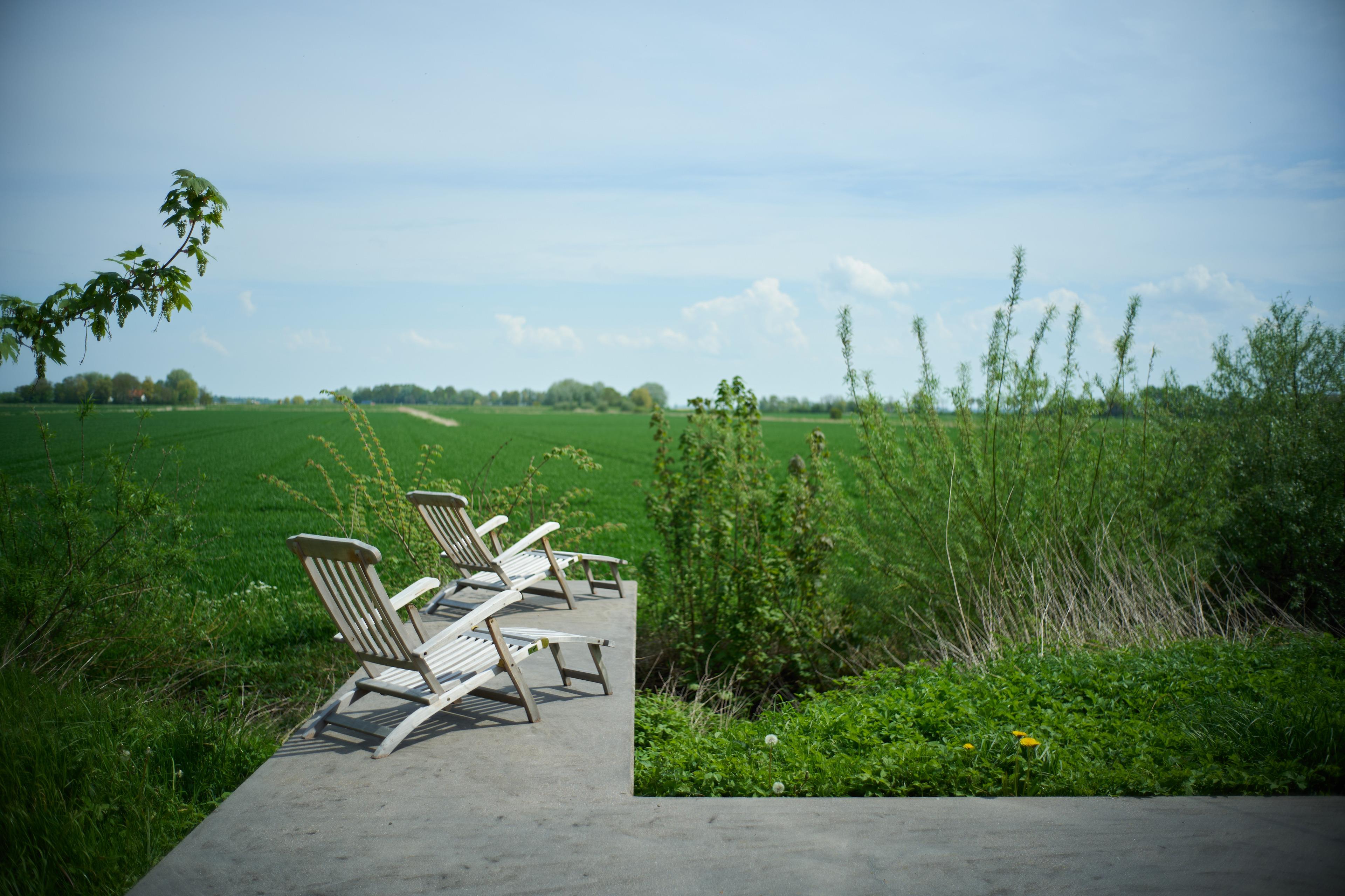 Die gesamte Wohnung verfügt über Fußbodenheizung. Eine weitere Besonderheit ist die großzügige, in schwarzem Beton gegossene, freischwebende Terrasse, deren Kragarm den um das Grundstück laufenden Wassergraben überragt. Der dazugehörige Gartenanteil ist vom restlichen Gebäude nicht einsehbar.