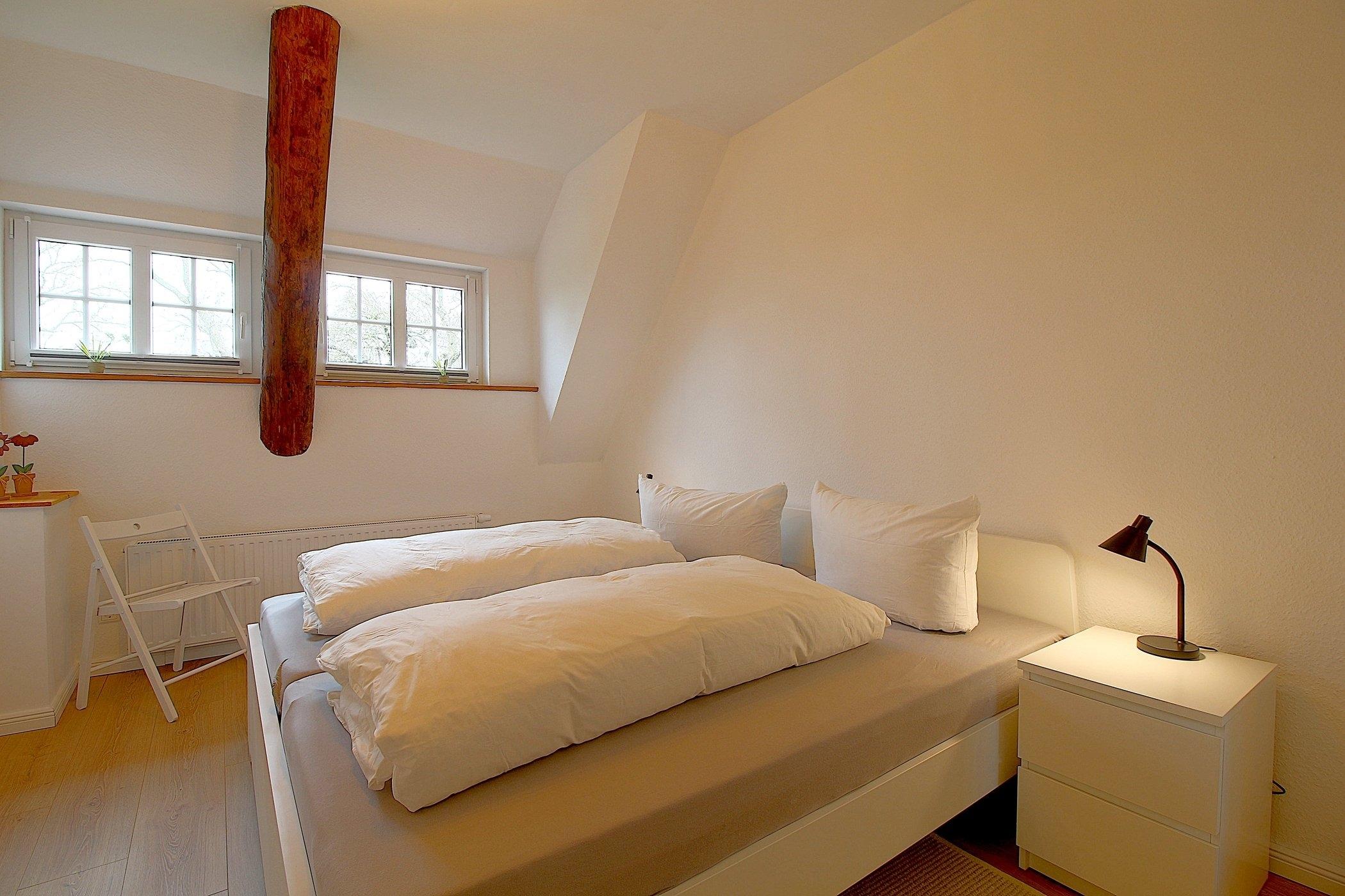 Zwei gemütliche Schlafzimmer mit komfortablen Doppelbetten garantieren erholsame Nächte, während das geräumige Duschbad mit Fenster für zusätzlichen Komfort sorgt. Bettwäsche und Handtücher sind selbstverständlich vorhanden, sodass Sie sich um nichts kümmern müssen.