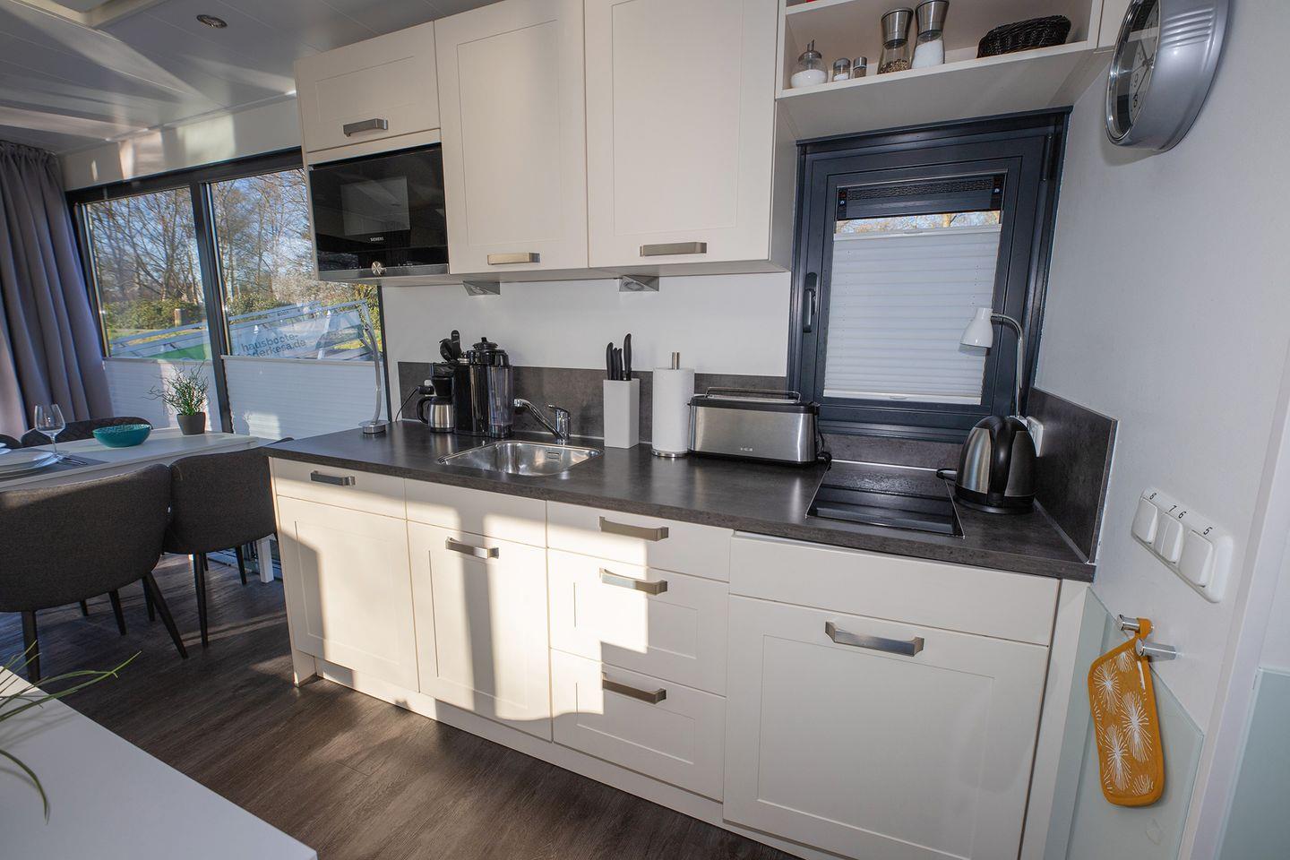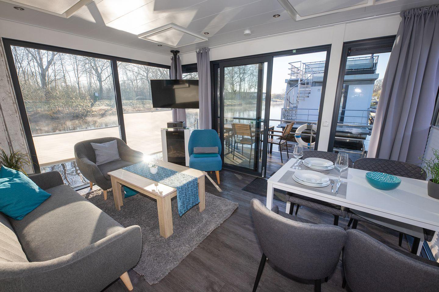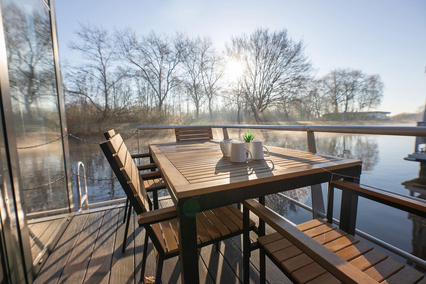 Erleben Sie Ruhe und Komfort auf dem idyllischen Hausboot 8 Seerose in der Marina Bad Bederkesa.