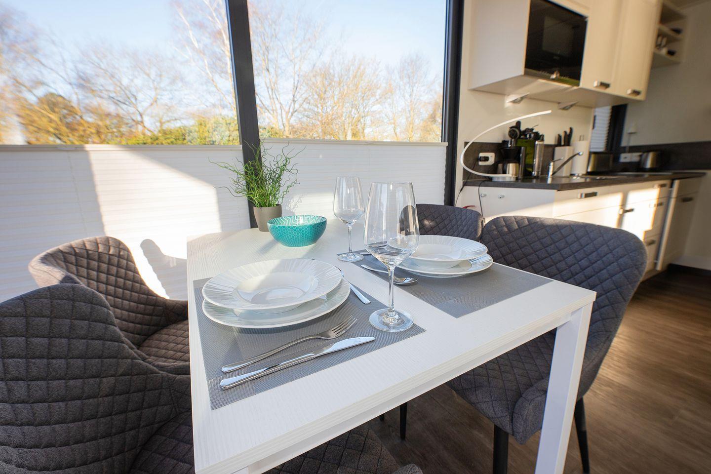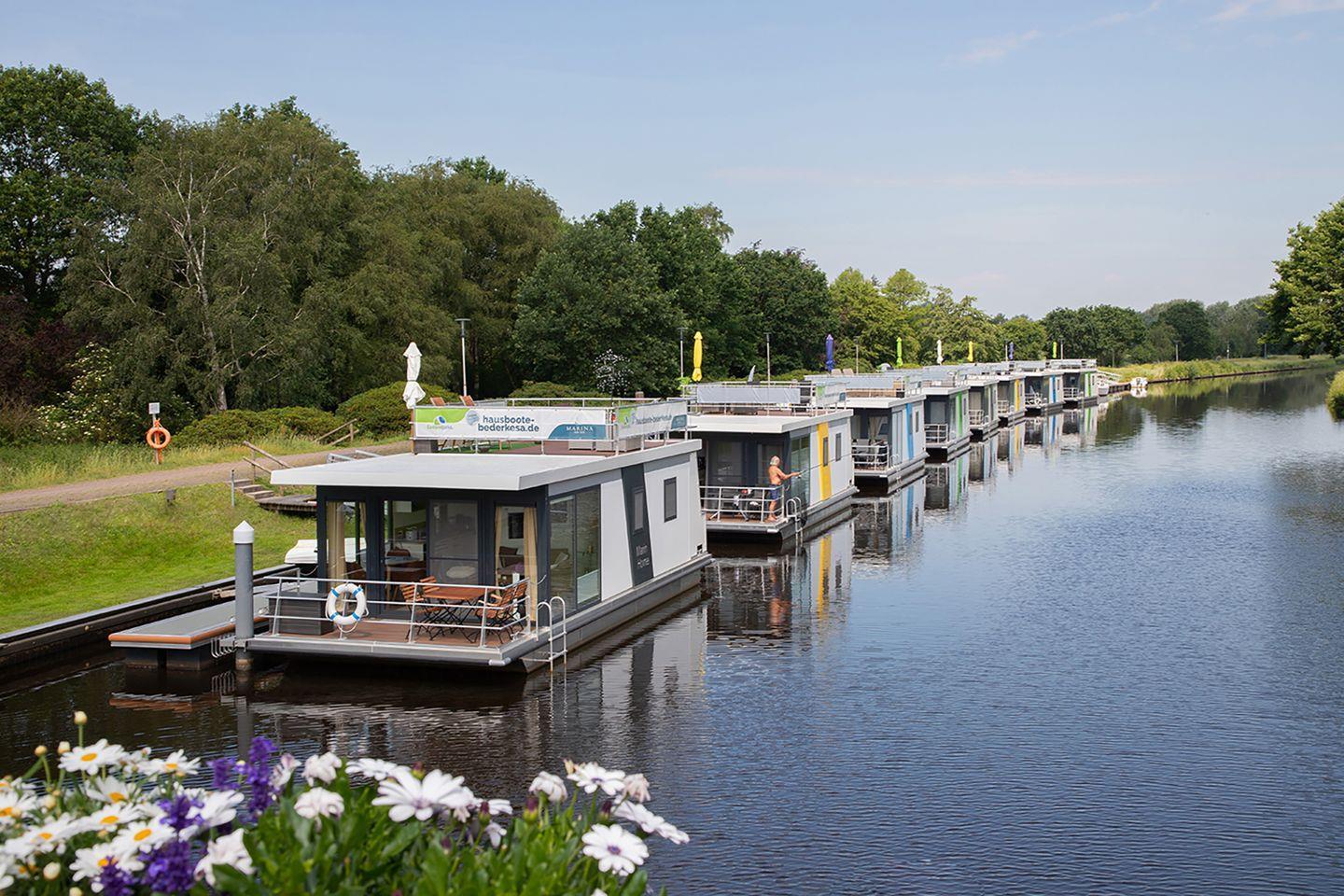 Entspannen Sie auf dem idyllischen Hausboot 8 Seerose mit Kamin, Dachterrasse und Seeblick in Bad Bederkesa am See.