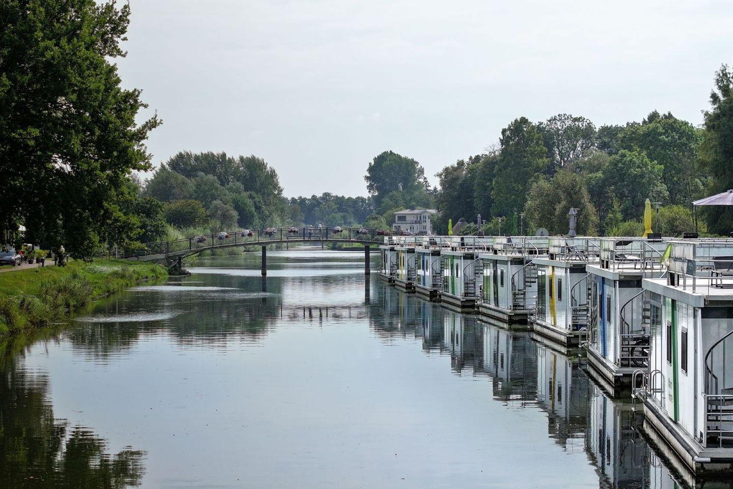 Urlaub auf dem festliegenden Hausboot – führerscheinfrei, ruhig, komfortabel.