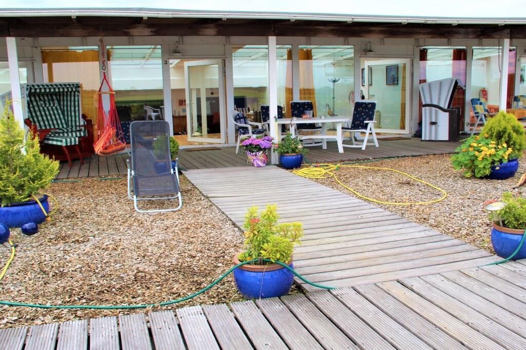 Komfortable Atelierwohnung mit großer Dachterrasse und Kamin in Geversdorf, ideal zum Entspannen in mediterranem Stil.