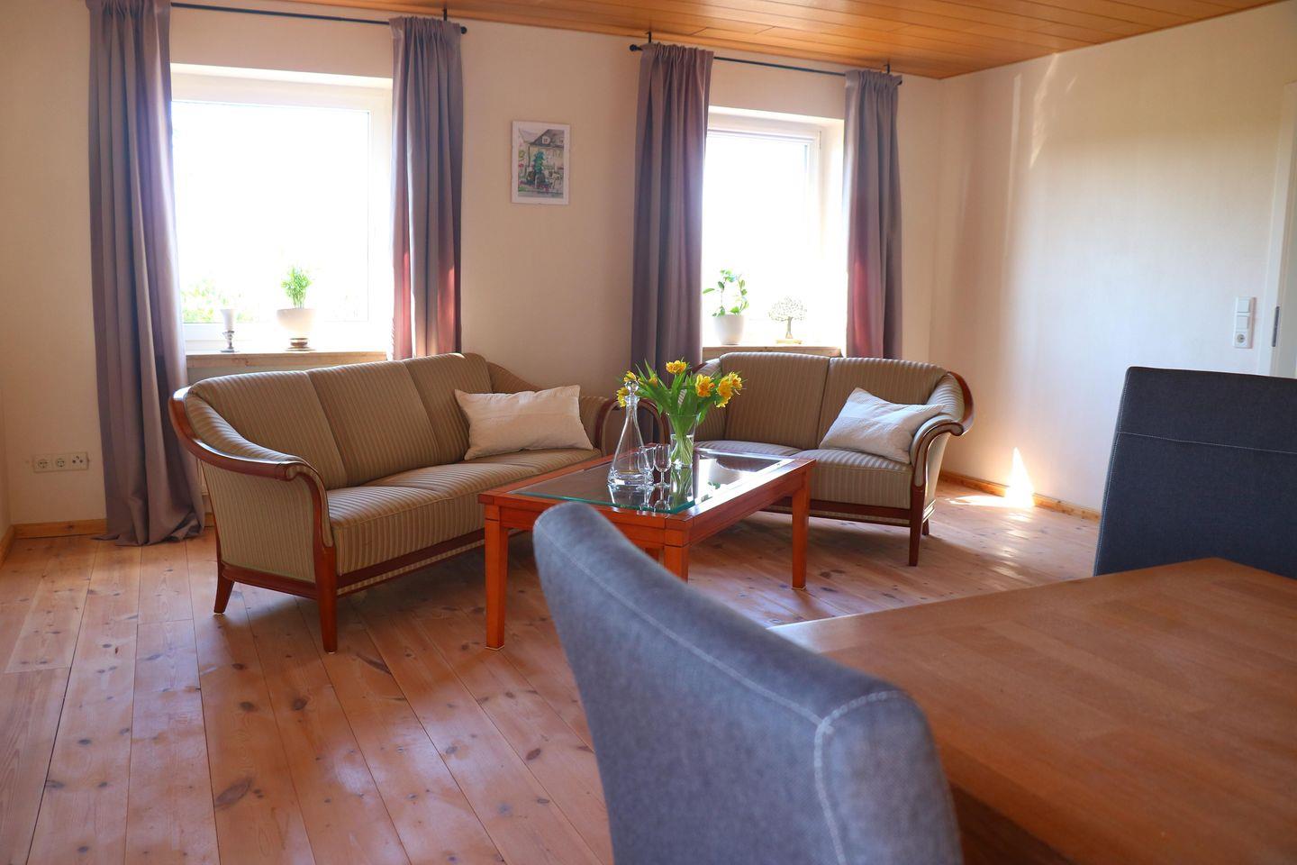 Frisch renovierte ca. 120 m² große Haushälfte für bis zu 6 Personen über zwei Ebenen auf schönem Bauernhof mit verschiedensten Tierarten. Inklusive WLAN und Parkplatzmöglichkeit. Haustiere sind erlaubt.