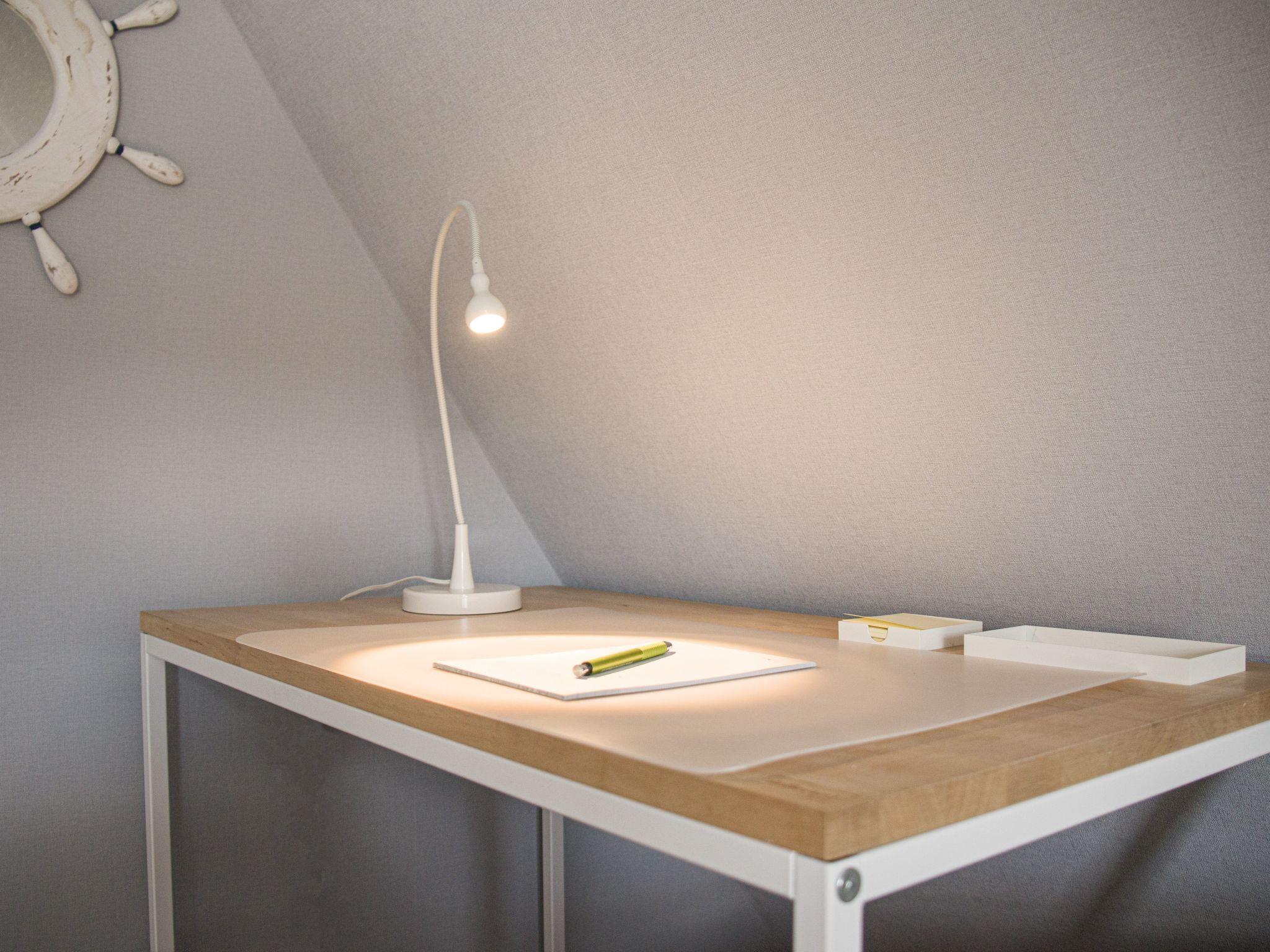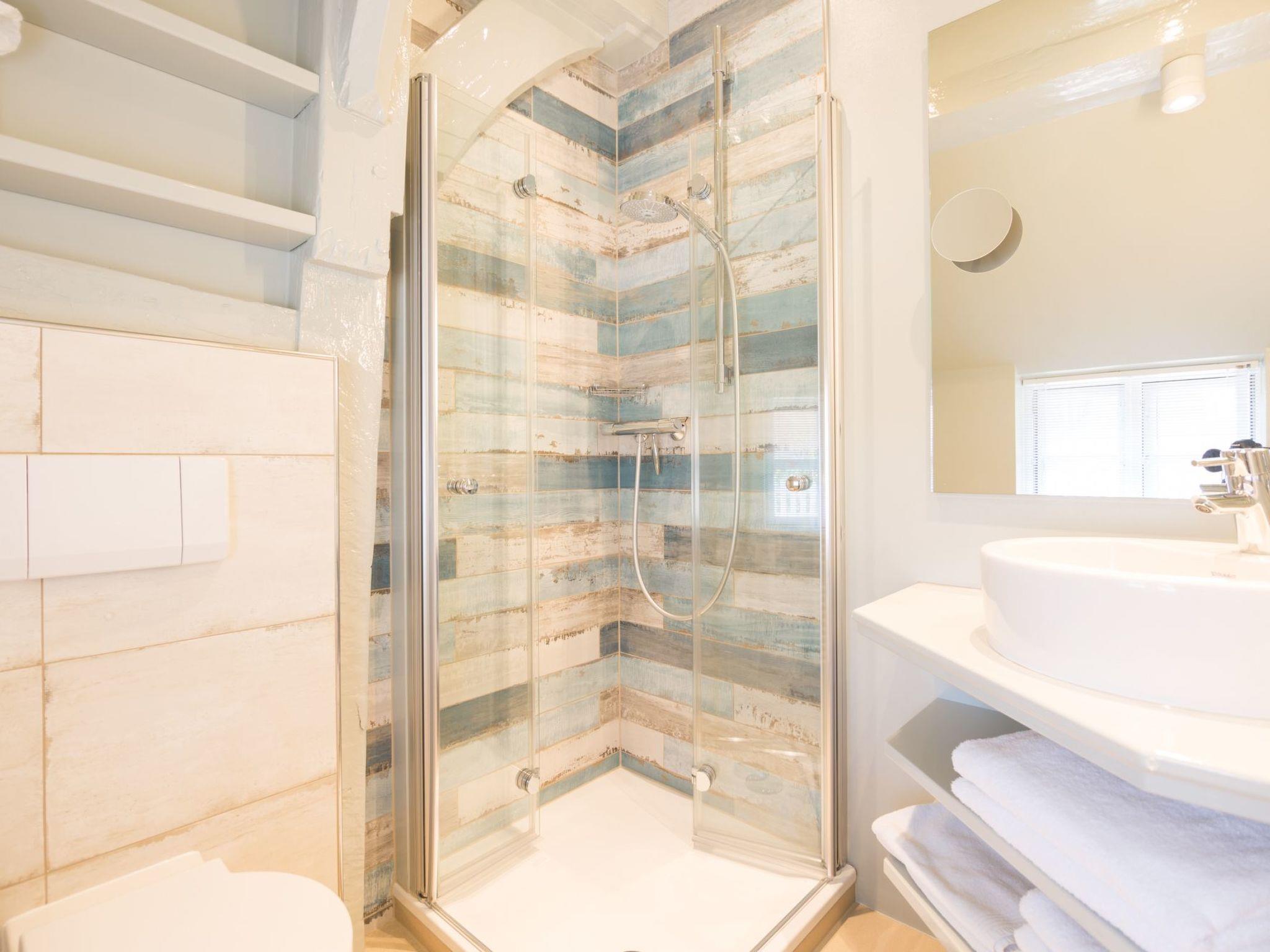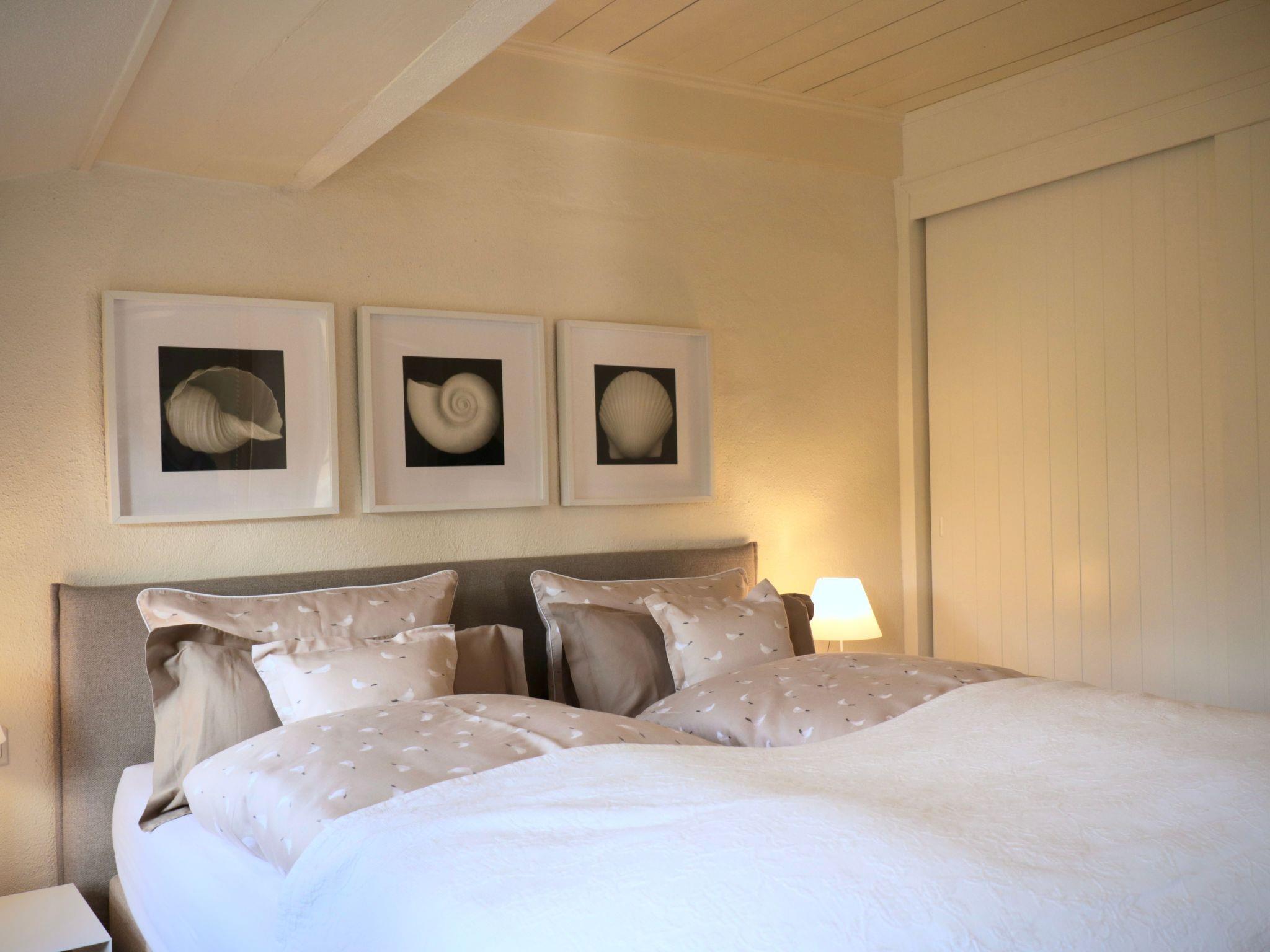 Im Erdgeschoss finden Sie den gemütlichen Wohnraum mit Kamin und Zugang zu Ihrem eigenen Garten, das Elternschlafzimmer mit einem 1,80m großen Boxspringbett, die voll ausgestattete, integrierte Küche mit Essplatz sowie ein Tageslichtbad mit Dusche. Das Schlafzimmer im Obergeschoss hat zwei jeweils 1,20m breite Boxspringbetten sowie ein weiteres Tageslichtbad mit Dusche.