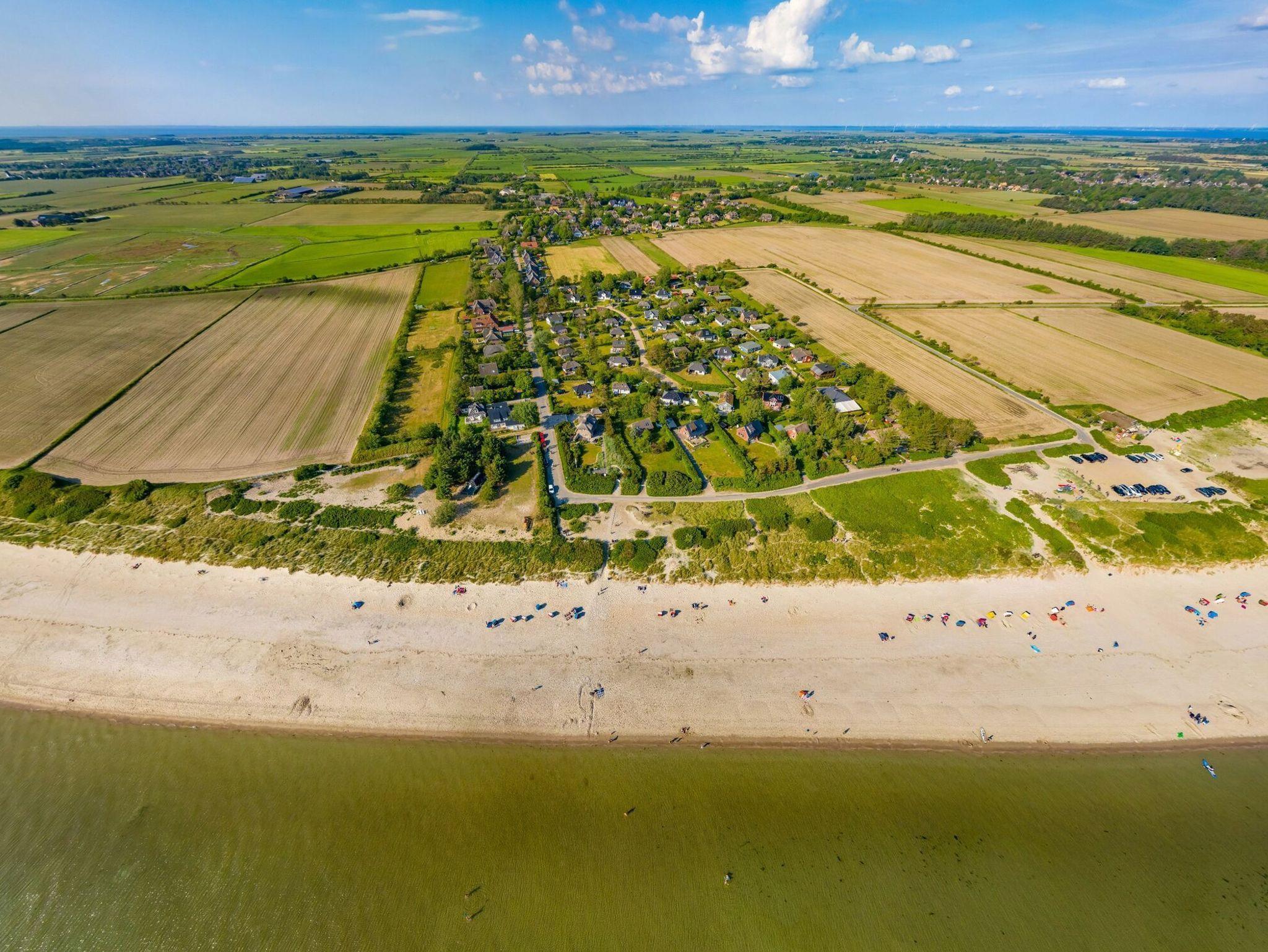 Modernes Ferienhaus Fiiwfut Hüs in ruhiger Lage nahe Goting-Kliff Strand mit großem Garten und komfortabler Ausstattung.