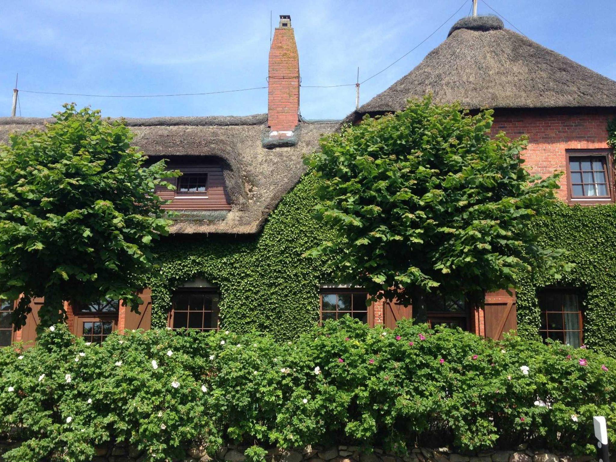 Dieses wunderschöne Reetdachhaus mit vier Ferienwohnungen für 2 bis 4 Personen liegt auf einem parkartigen Grundstück (5000 m²) in Nieblum-Goting.