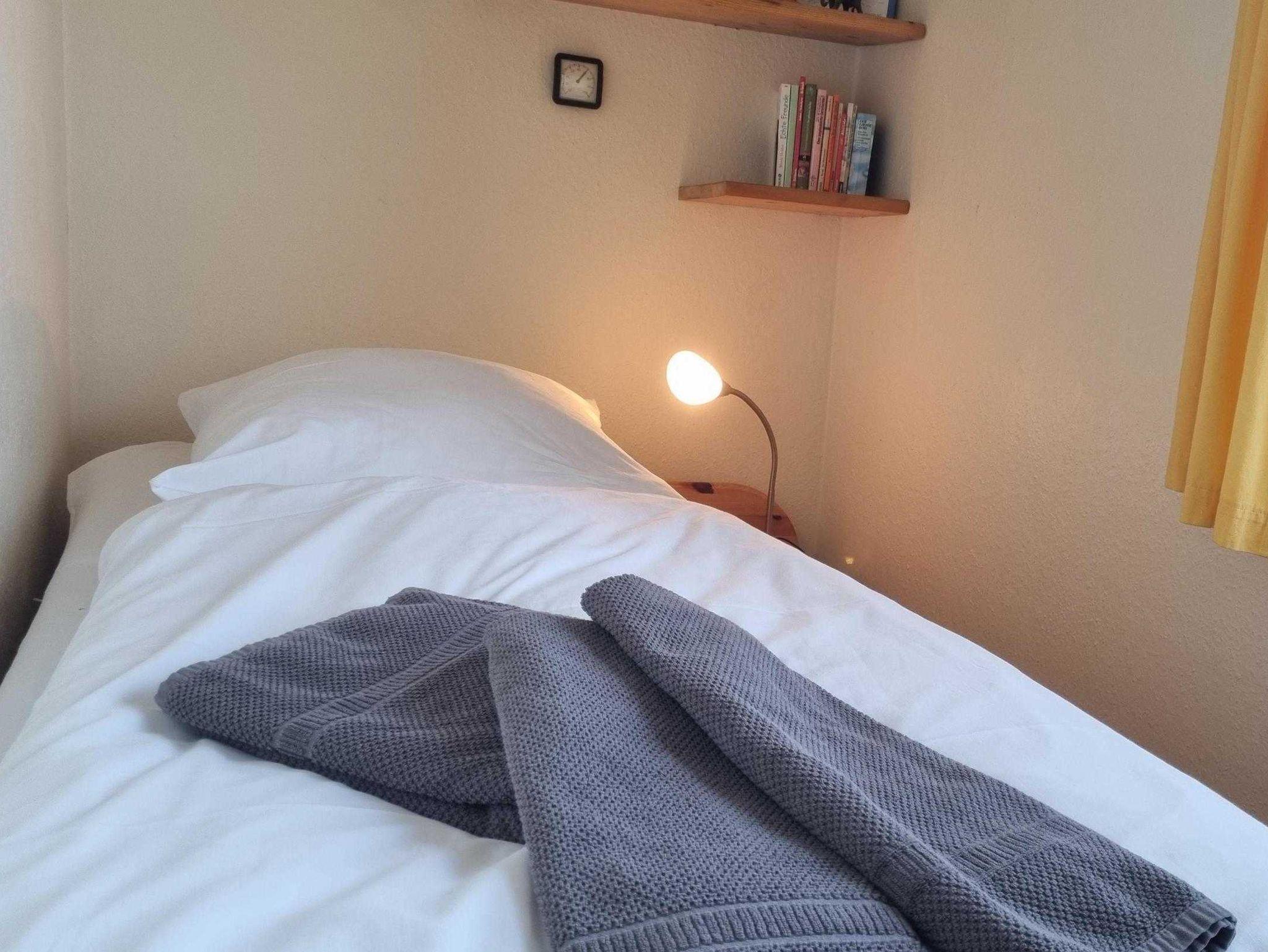Raumaufteilung: 1 Schlafraum (1 Einzelbett), 1 Schlafraum (1 King-Size-Bett), 1 Wohnraum, 1 separate Küche, 1 Badezimmer mit Dusche.