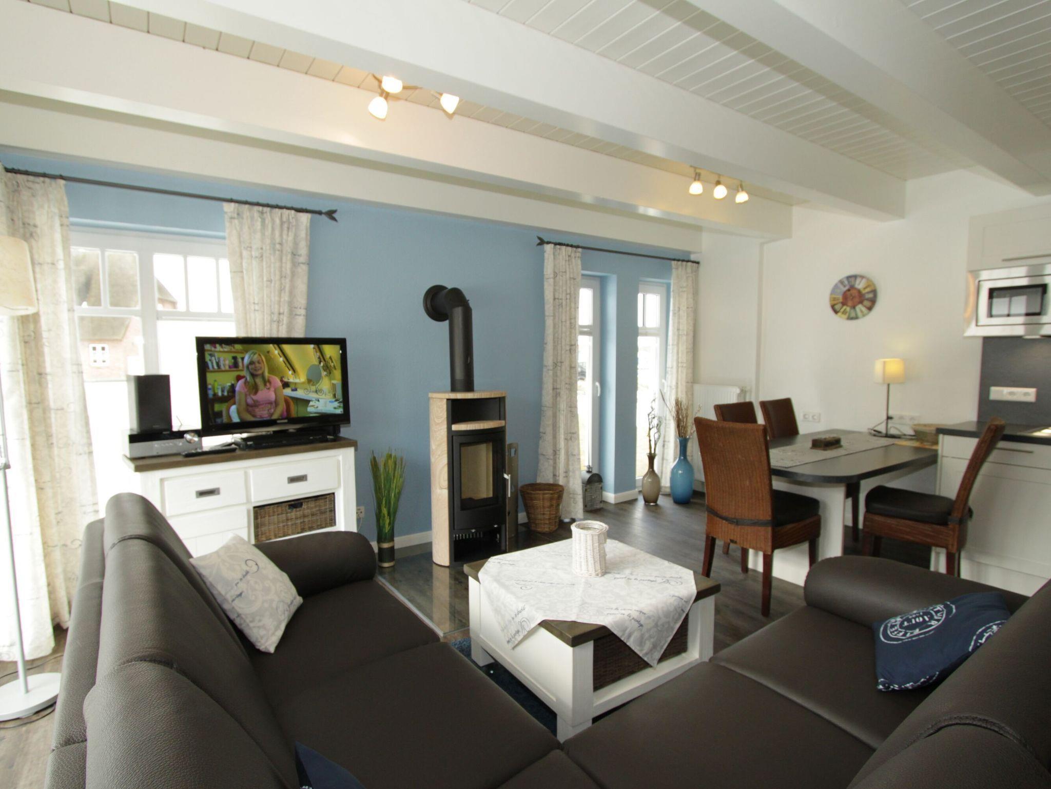Die Kliffkate in Goting bietet Komfort mit 3 Schlafzimmern, Kamin, WLAN und nur 250 m zum Strand.
