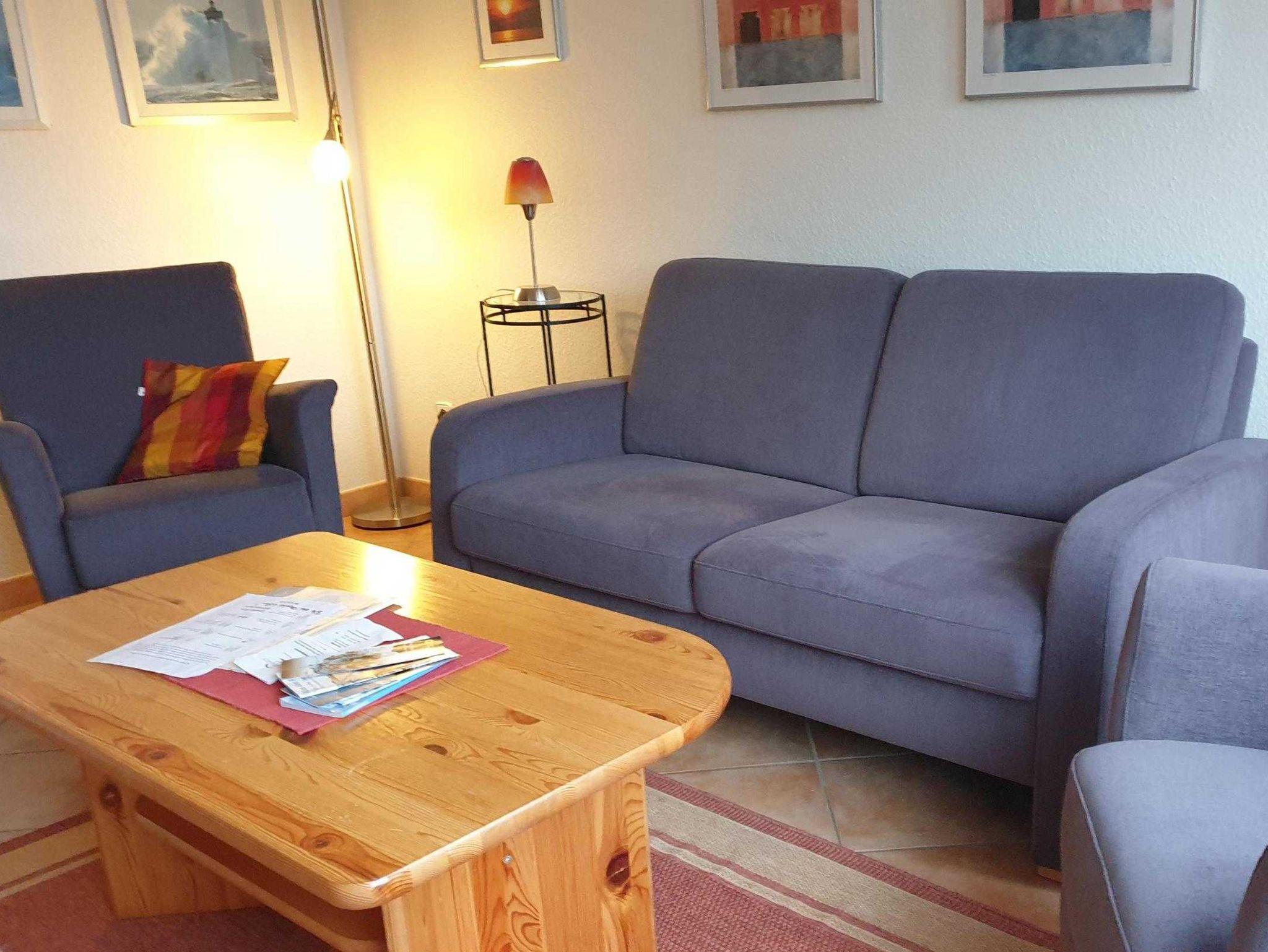 Diese schöne helle Wohnung befindet sich in Goting dem Ortsteil von Nieblum.Der herrliche Strand von Goting mit Kinderspielplatz ist in wenigen Gehminuten zu erreichen, von hier ist alles schön mit dem Fahrrad zu erreichen, Nieblum mit Cafe´s, Restaurants, die Meere 65 qm große, helle und schön eingerichtete Obergeschosswohnung mit Südbalkon bietet Ruhe und Erholung für vier Personen.Die Wohnung bietet ein helles Wohnzimmer, ein geräumiges Duschbad, eine Küche mit Geschirrspüler und Essplatz, sowie 2 großzügige Schlafzimmer (eines mit Doppelbett und eines mit zwei Einzelbetten).Zum Komfort der Wohnung gehören großer Sat-LCD-TV, CD/DVD-Player, Münzwaschmaschine - und Trockner und ein PKW-Stellplatz direkt am Haus.