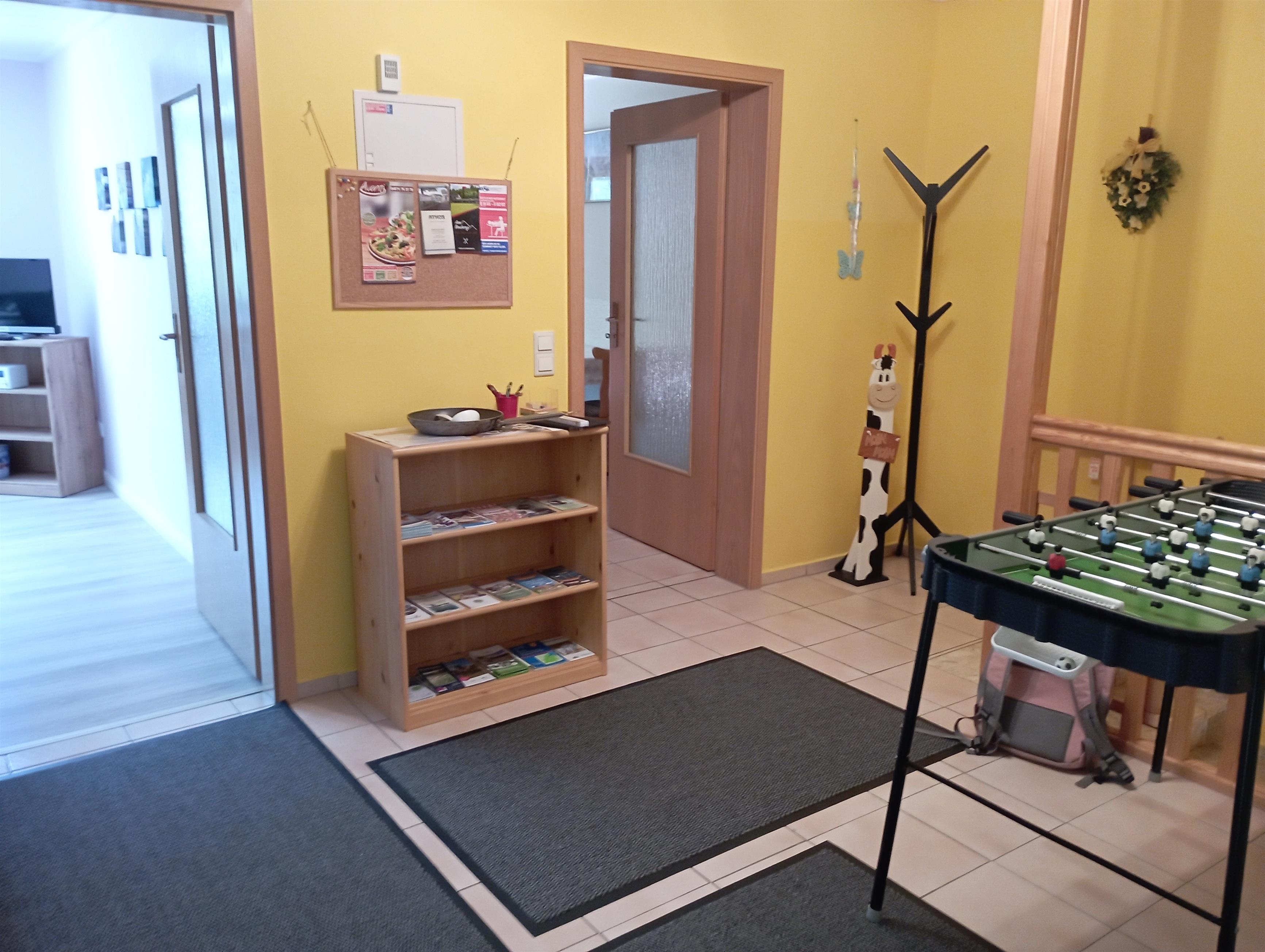 Die Ferienwohnung ist ca 85 m² groß, liegt im ersten Stock auf einem landwirtschaftlichem Betrieb und bietet Platz für 5 Personen (+ Schlafcouch). In der Unterkunft befindet sich: eine voll ausgestattete Küche, eine Loggia, Wohnzimmer, Duschbad, ein Einzelzimmer, ein Doppelbettzimmer und ein Zweibettzimmer. Alle 3 Schlafzimmer und das Wohnzimmer sind mit einem Fernseher ausgestattet. In der ganzen Wohnung gibt es kostenfreies WLAN, ebenfalls sind kostenfreie Parkmöglichkeiten vorhanden.