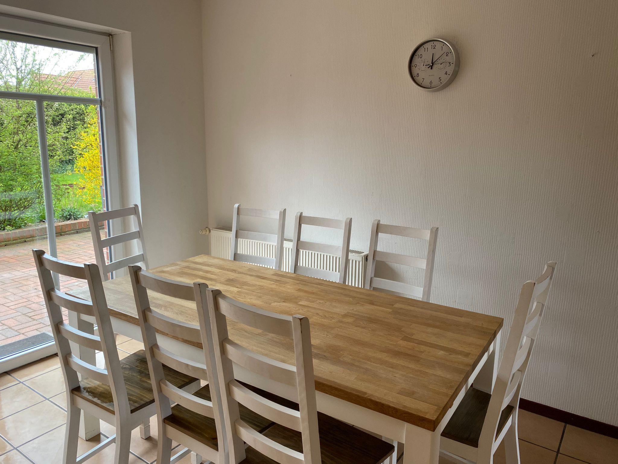Das schöne Ferienhaus verfügt über 4 Schlafzimmer und 3 Bäder. Die große Küche mit Essbereich ist komplett eingerichtet mit Mikrowelle, Backofen, Spülmaschine und Kaffeemaschine. Das gemütliche Wohnzimmer mit Kaminofen ist ideal für gemütliche Stunden.