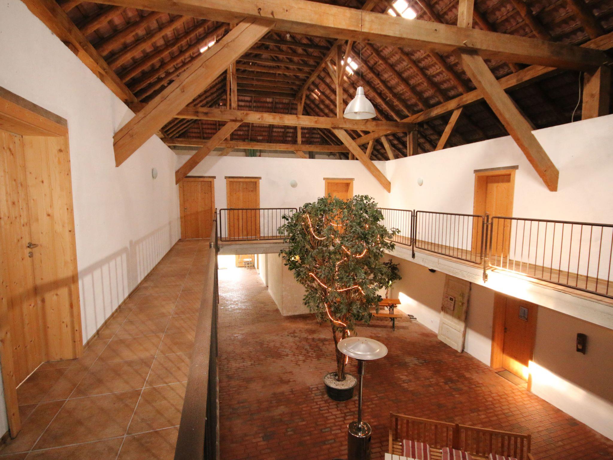Der "Gulf", also der Mittelteil der Scheune wurde zu einem großen "Dorfplatz" mit einer darüberliegenden Galerie umgebaut, die man über eine große Freitreppe erreichen kann. Im Dorfplatz kann man den Tag im Kreise von netten Leuten bei einem kühlen Bier oder einem Glas Wein ausklingen lassen. Im "Gulf" befinden sich für Sie weitere nutzbare Räumlichkeiten. Dazu gehören das Kinderspielzimmer und der Gemeinschaftskickerraum. Ein PKW-Stellplatz ist direkt am Haus vorhanden.