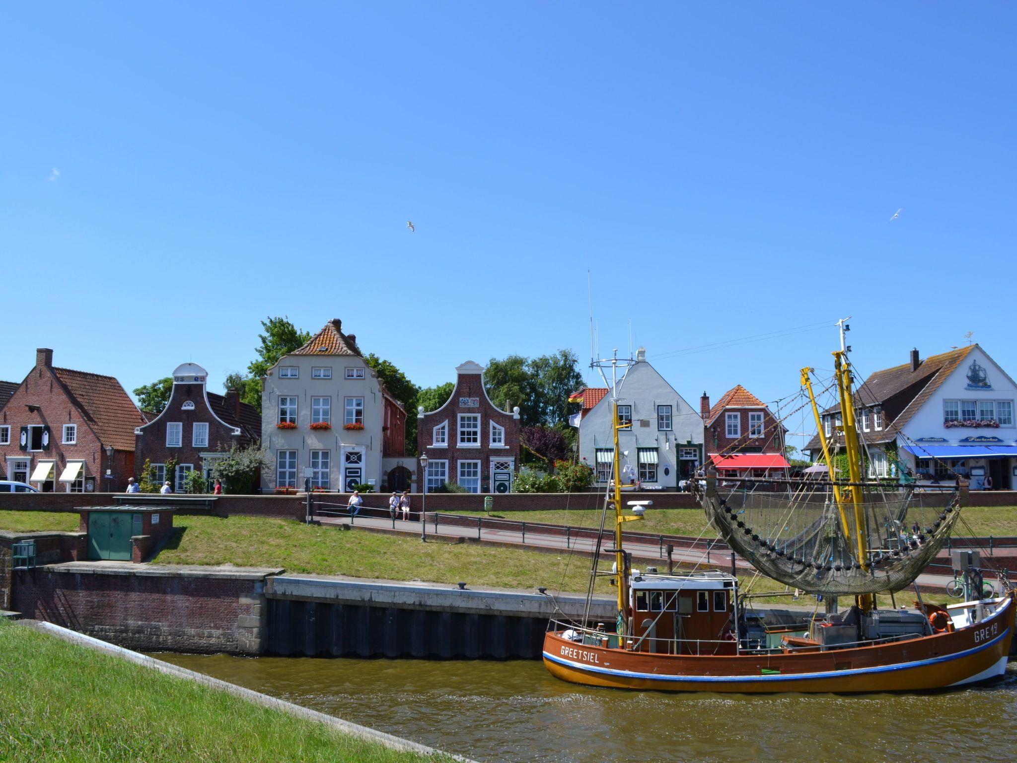 Ihr Urlaubsort befindet sich ca. 15km nordwestlich von Emden inmitten des Landstrichs der Gemeinde Krummhörn mit seinen 19 Warfendörfern, die auf eine mehr als 1000 jährige Geschichte zurückblicken. Diese beginnt nordwestlich der alten Seehafenstadt Emden und zieht sich direkt entlang der Küste von der Emsmündung bis zum malerischen Urlaubsort Greetsiel mit seinen berühmten Zwillingswindmühlen. Zahlreiche Gulfhöfe, historische Windmühlen und Leuchttürme prägen das Landschaftsbild sowie Salzwiesen, der Nationalpark "Niedersächsisches Wattenmeer" und unzählige kleine Kanäle. Die Nordsee mit Trockenstrand und Bademöglichkeit, sowie der Campener Leuchtturm sind fußläufig in 1500 m erreichbar. Frische Brötchen erhalten Sie im nahe gelegenen Nachbarort Campen (ca. 1,9 km), gleich neben dem Landwirtschaftsmuseum. Im ca. 4km entfernten Pewsum finden Sie die nächste Einkaufsmöglichkeit. Des Weiteren lassen sich dort eine Vielzahl der Bedürfnisse des Alltages erledigen (z.B. Bank, Allgemeinmediziner, etc.) Ca. 10 km westlich befindet sich das romantische Fischerdorf Greetsiel. Ein absoluter Touristenmagnet. Zahlreiche Sehenswürdigkeiten in der Umgebung lohnen neben dem Panorama der Krummhörn einen Ausflug mit dem Auto oder dem Fahrrad.