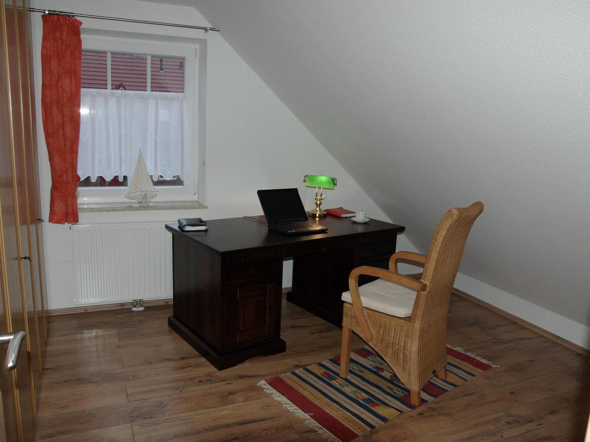 Es bietet vier Schlafzimmern (eins davon im Erdgeschoss) und zwei Duschbädern für acht Personen ausgestattet (ideal auch für zwei Familien). Die Sauna und der Kaminofen laden für einen Urlaub nicht nur im Sommer ein. Die schöne Holzbalkendecke und die maritime Einrichtung verleihen dem Haus einen ganz besonderen Charakter. Im Erdgeschoß befindet sich der großzügige Wohn-/Essbereich mit großen Türen, die auf die Süd-Terrasse führen. Die Küche ist mit Backofen, Mikrowelle und Geschirrspüler und vielem mehr voll ausgestattet. Im direkt angrenzenden Abstellraum sind Waschmaschine und Trockner untergebracht. Im Erdgeschoß-Bad findet sich neben der Dusche, dem WC, ein Bidet und auch die Sauna. Eines der (Eltern-) Schlafzimmer (mit Doppelbett) ist im Erdgeschoß untergebracht und somit für die Mitnahme der Großeltern interessant. Im Obergeschoß sind drei weitere Schlafzimmer (eines mit Doppelbett, zwei mit je zwei einzelnen Betten) und ein weiteres Dusch-Bad.Hinweis zum W-LAN: Leider lassen die Anbieter nur eine maximale Internetgeschwindigkeit von UMTS zu.