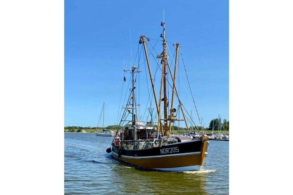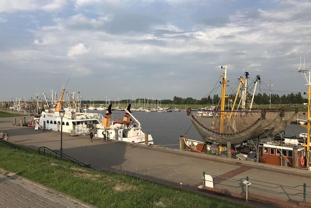 Gemütliche, neu renovierte Ferienwohnung mit Kamin und Garten in Greetsiel, ideal für einen erholsamen Urlaub.