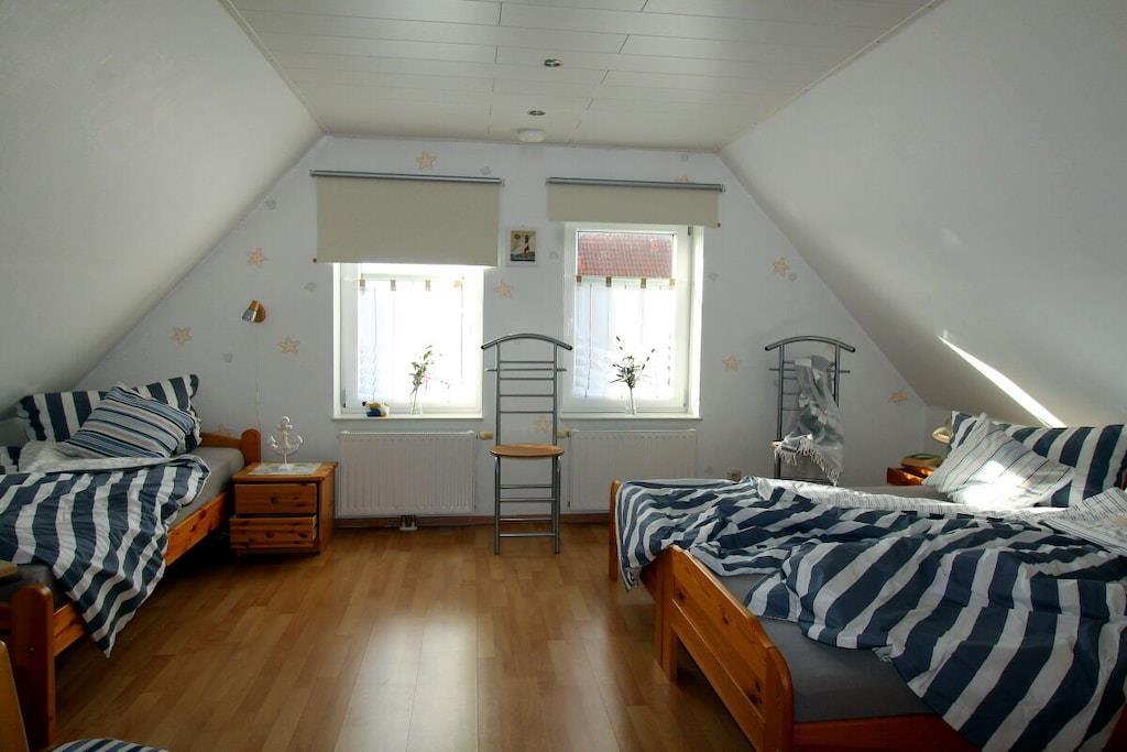 Parterre: (Eingangshalle(, ), offene Küche(, , Kochnische, Esstisch, Herd, Kochplatte, Wasserkocher, Toaster, Kaffeemaschine, Backofen, Mikrowelle, Spülmaschine, Kühlschrank, Tiefkühlschrank, Hochstuhl, Fliegenfenster), Wohn/Esszimmer(, , Bibliothek, TV, Esstisch, DVD-Spieler, CD-Spieler, Hochstuhl, Fliegenfenster), Schlafzimmer(, Doppelbett, Fliegenfenster), Badezimmer(, Toilette, Dusche, Waschbecken, Heizung, Föhn, Fliegenfenster), Abstellraum(, Waschmaschine, Bügelbrett, Trockenschrank)) In der 1. Etage: (Schlafzimmer(, Einzelbett, Doppelbett, TV, Kinderbett), Kinderzimmer(, , Einzelbett, Einzelbett, Fliegenfenster), Badezimmer(, Toilette, Dusche, Waschbecken, Heizung, Föhn, Fliegenfenster)) , , , , Internet, Internet, Erste-Hilfe-Station, Waschmaschine, Heizung, Terrasse(, Strand, Gartenmöbel, Liegen), Garten(Strand, Gartenmöbel, Gartenhaus), Parkplatz, Bügelbrett, Bügeleisen, Trockenschrank