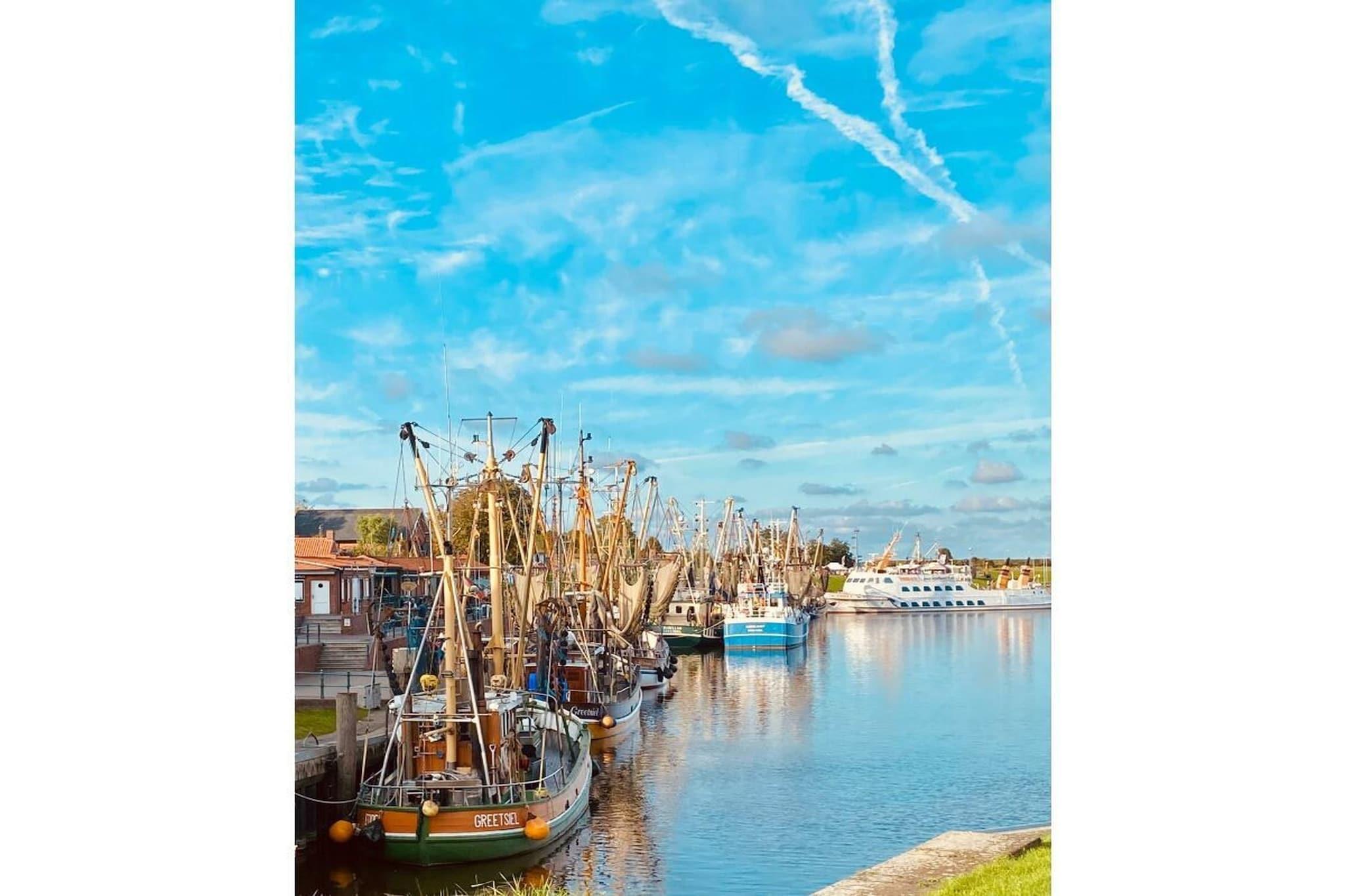 Großzügige Ferienwohnung in Greetsiel mit direktem Kanalzugang und kostenlosem Ruderboot für entspannte Urlaubsmomente.