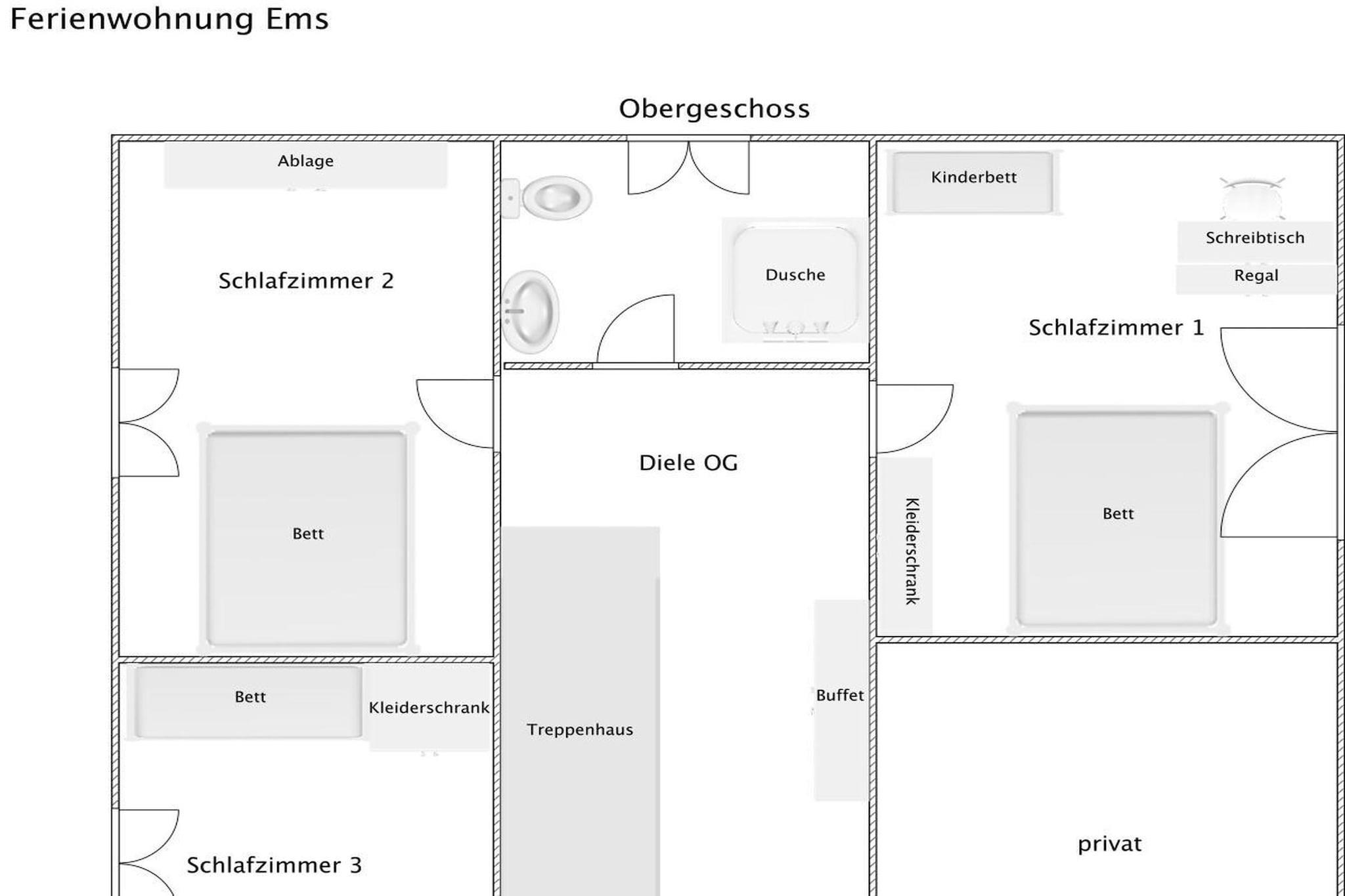 Parterre: (Küche(, , Kochnische, Kochplatte, Wasserkocher, Toaster, Kaffeemaschine, Backofen, Mikrowelle, Spülmaschine, Kühlschrank, Tiefkühlschrank, Waschmaschine), Wohn/Esszimmer(, , TV, Esstisch, Radio), guest toilet(, Toilette)) In der 1. Etage: (Schlafzimmer(, Doppelbett), Schlafzimmer(, Doppelbett), Schlafzimmer(, Einzelbett, Einzelbett), Badezimmer(, Toilette, Dusche, Waschbecken)) , , , , , Internet, Internet, Waschmaschine, Heizung, Terrasse(, Gartenmöbel), Garten, Parkplatz, Trockenschrank