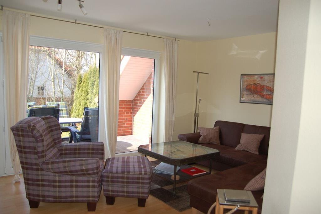 Wir bieten Ihnen ein komfortables und geräumiges Ferienhaus in bevorzugter ruhiger und zentraler Lage in unmittelbarer Nähe zum historischen Ortskern, den Kureinrichtungen, zum Kinderspielplatz und zum Schwimmbad OASE. Das Ferienhaus verfügt über ein geräumiges Wohnzimmer, 2 Schlafzimmer für bis zu 4 Personen, Bad, Gäste-WC, separate Küche mit gemütlicher Sitzgelegenheit für 4 Personen sowie über eine Garage und eine Galerie mit bequemen Sesseln zum Entspannen. Fußbodenheizung im Bad. Der Garten mit Terrasse und bequemen Möbeln lädt zur Entspannung ein. Für die Kinder stehen Hochstuhl und Kinderbett bereit. Geeignet für Allergiker. Neubau 2005