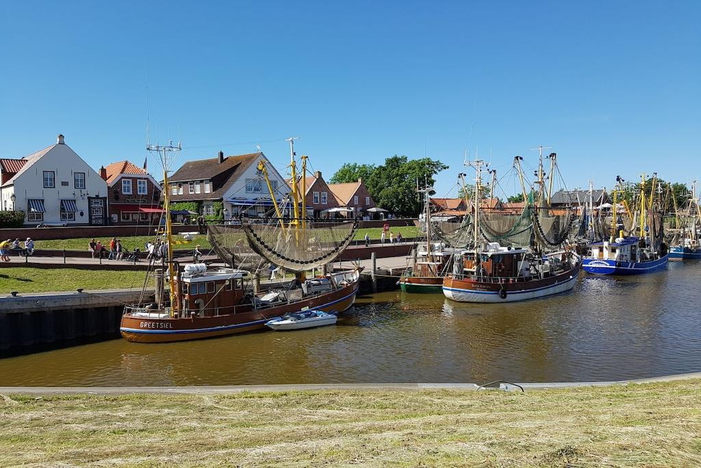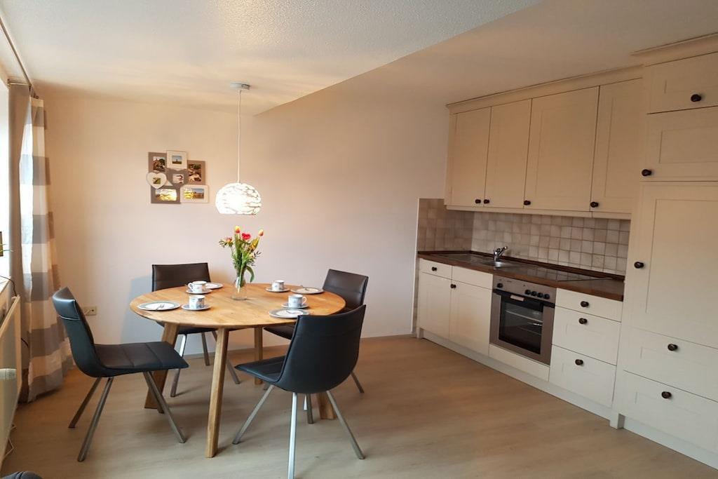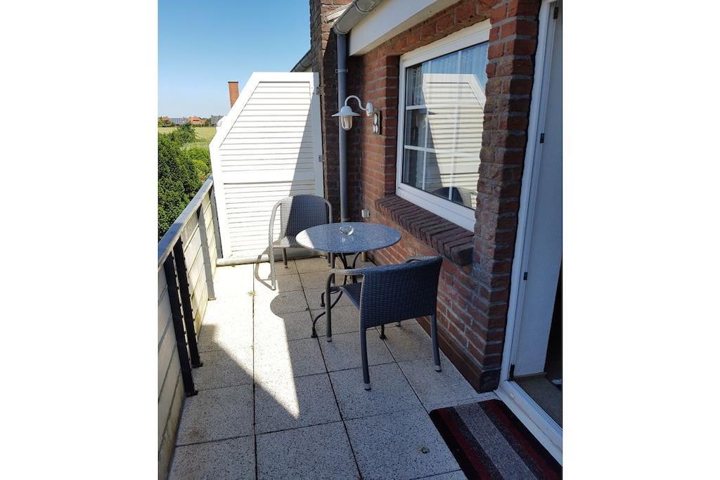 Moderne Nichtraucher-Ferienwohnung in Greetsiel mit Balkon und Deichblick, ideal für einen entspannten Urlaub.