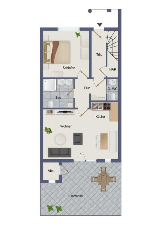 Moderne Ferienwohnung mit Terrasse und Strandkorb
