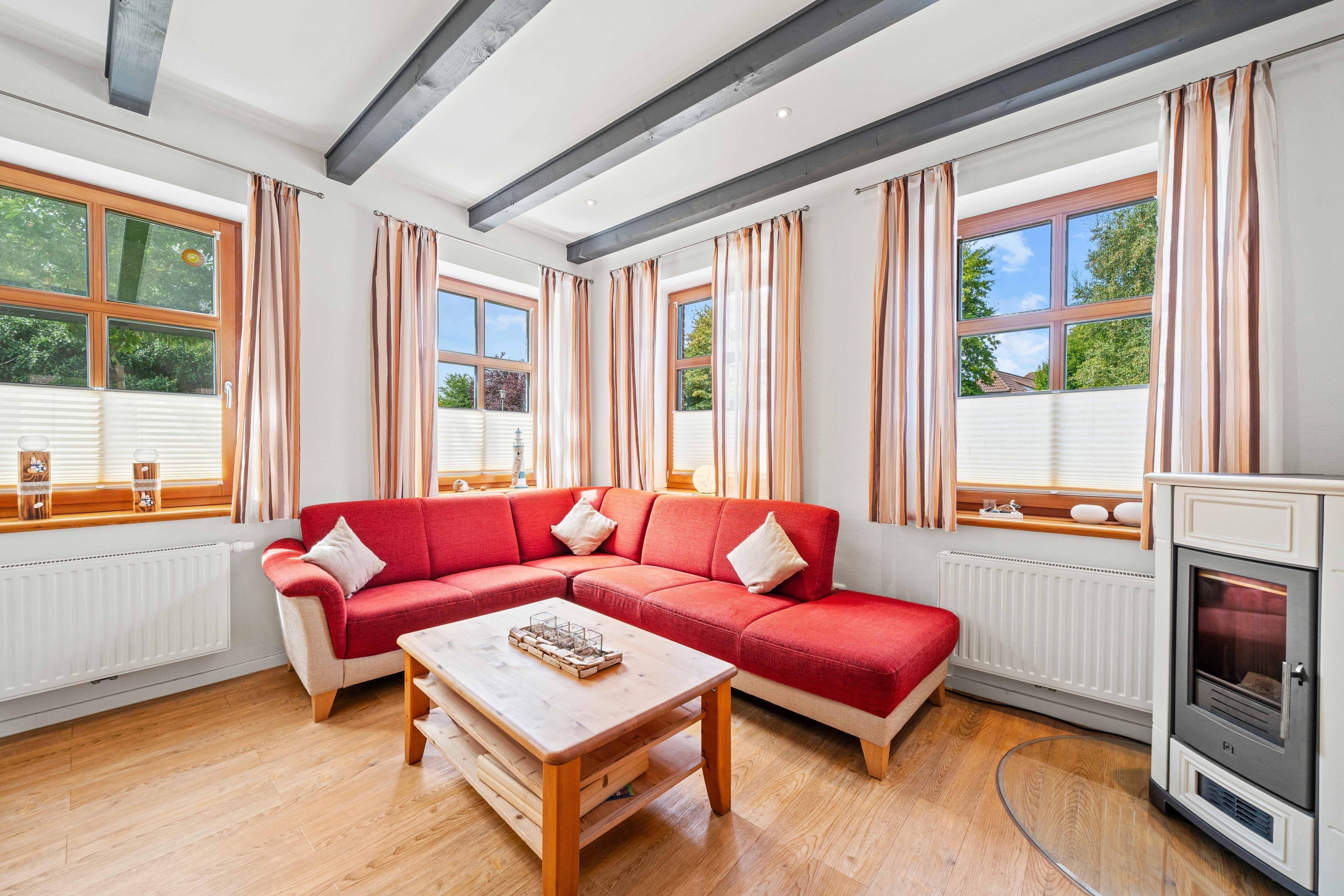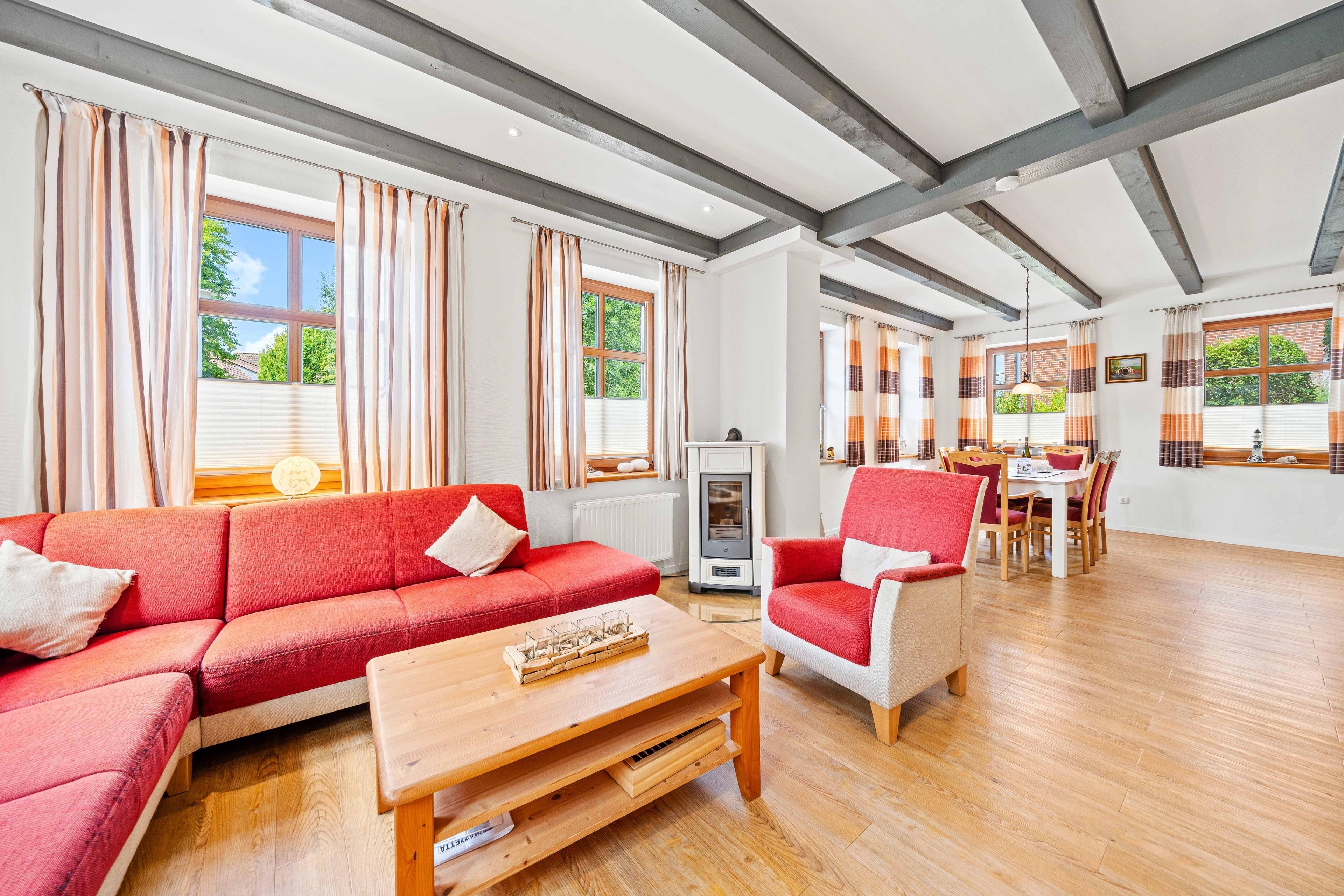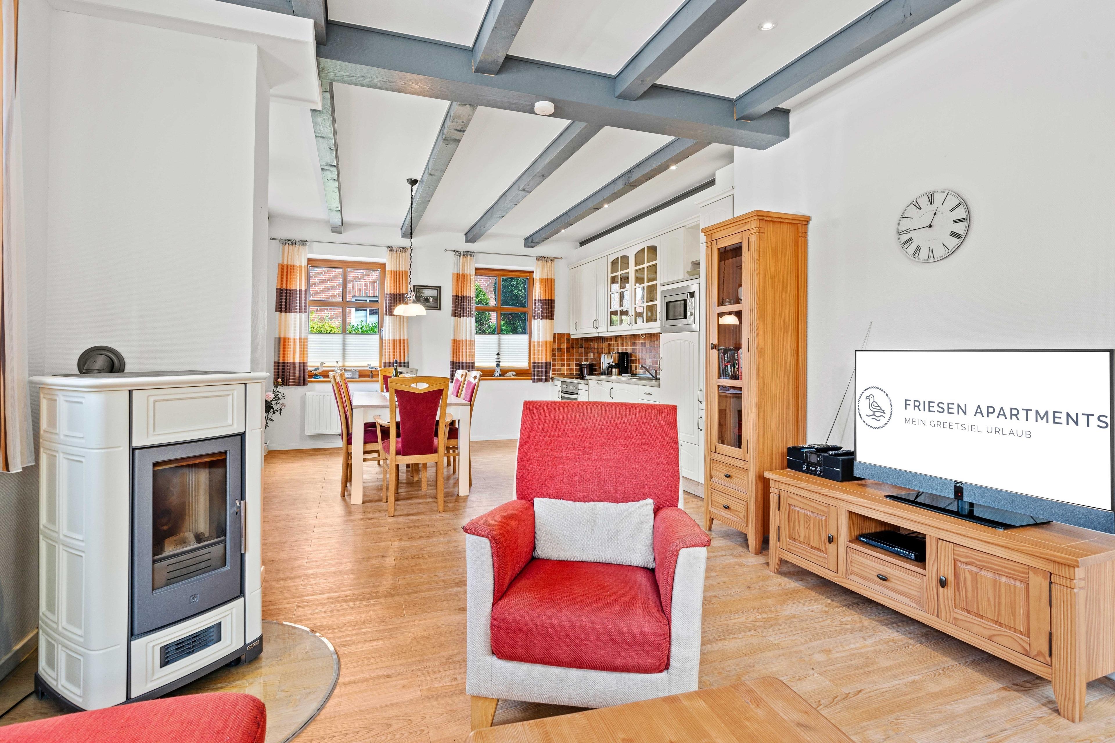 Stilvolle Ferienwohnung mit Hafenblick, Kamin und Terrasse im historischen Greetsiel, perfekt für einen komfortablen Nordseeurlaub.