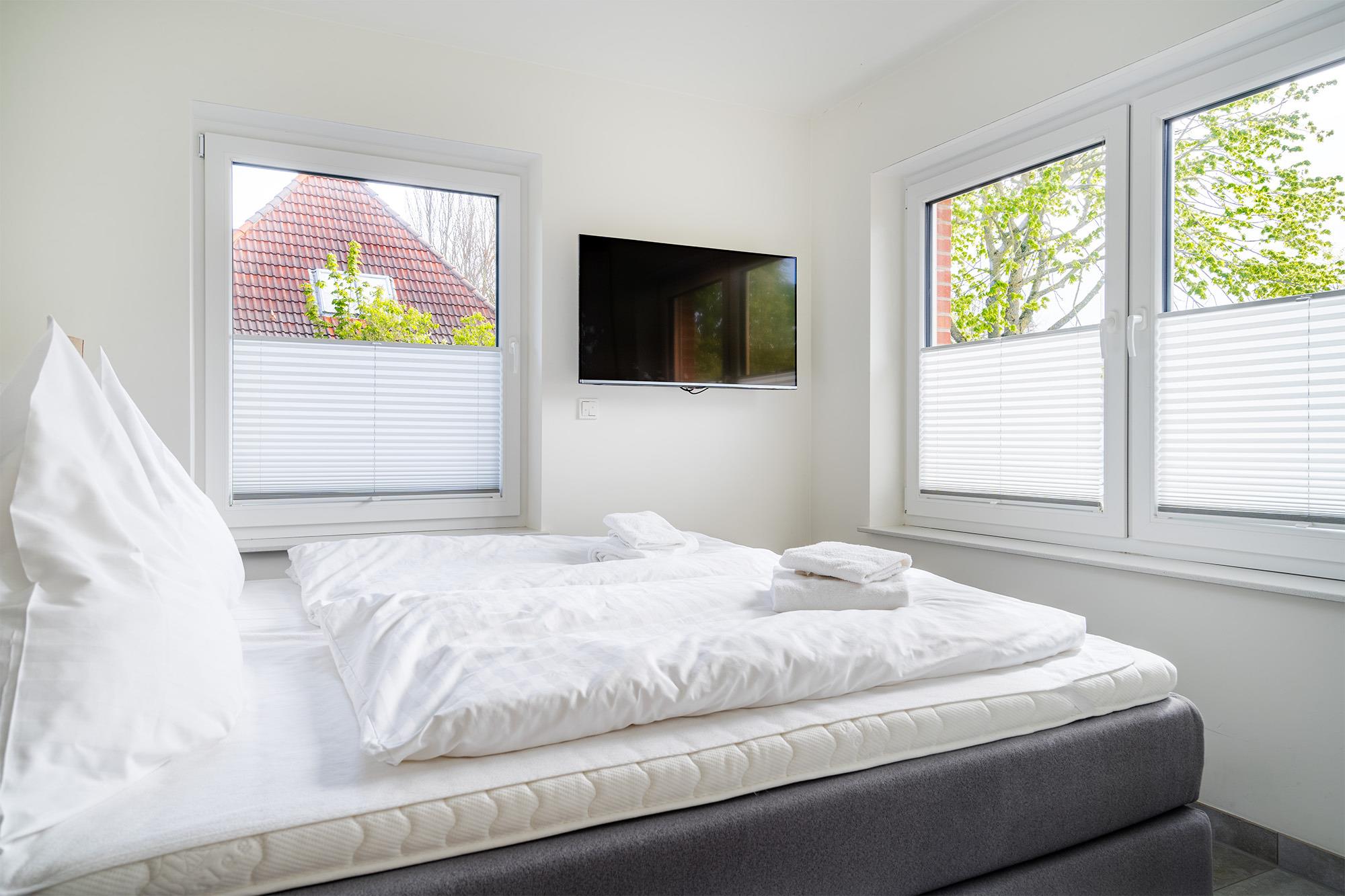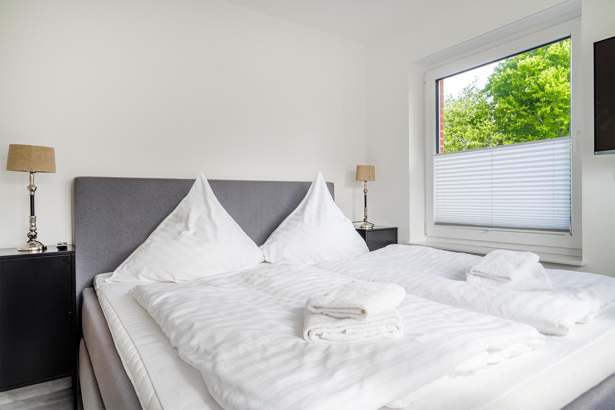 Unsere Wohnung "Die Zimmerei 2" bietet sich mit ihren etwa 70qm als perfektes Urlaubsdomizil an. Sehr zentral und dennoch ruhig in einer durchfahrtsbeschränkten Straße gelegen bietet sie einen hellen und modernen Wohn-Ess-Bereich mit einer großzügigen und voll ausgestatteten Küchenzeile, sowie einen Esstisch (Hochtisch). Sie finden außerdem zwei Schlafzimmer mit bequemen und hochwertigen Boxpspringbetten sowie ein geräumiges Tageslichtbad. Auch ein Abstellraum mit einem Waschtrockner ist vorhanden. Trotz der Lage im Obergeschoss bietet die Wohnung außerdem eine Sonnenterrasse, die sie über den Hauseingang und eine Treppe im Garten erreichen. Selbstverständlich steht Ihnen ein eigener Parkplatz am Haus zur Verfügung. Sollten Sie mit einem E-Auto anreisen, verfügt das Objekt auch über eine Ladesäule, die Sie hinzu buchen können.