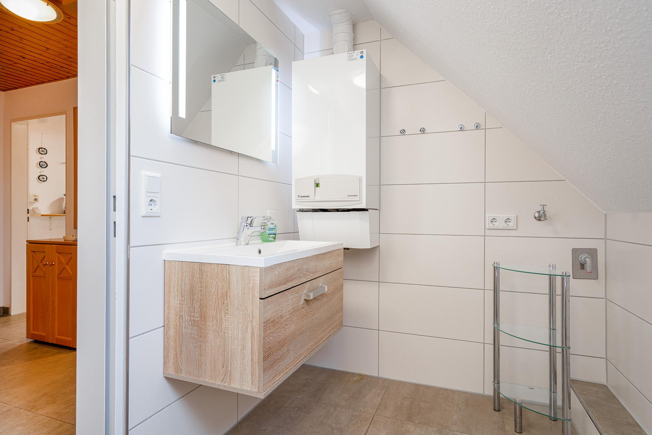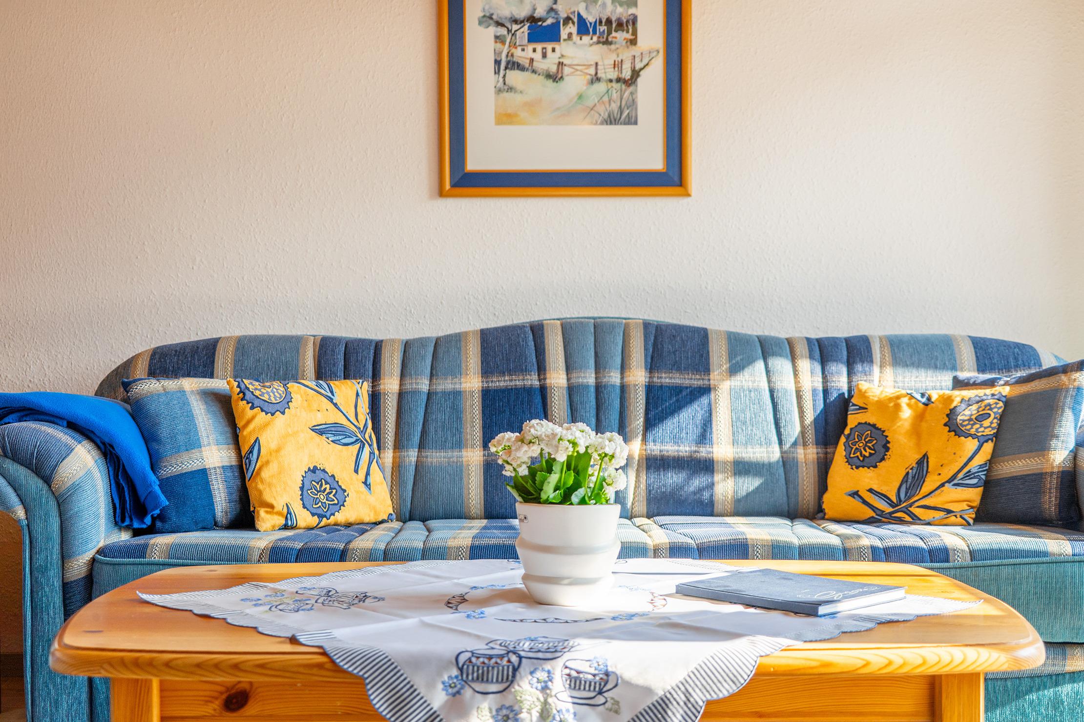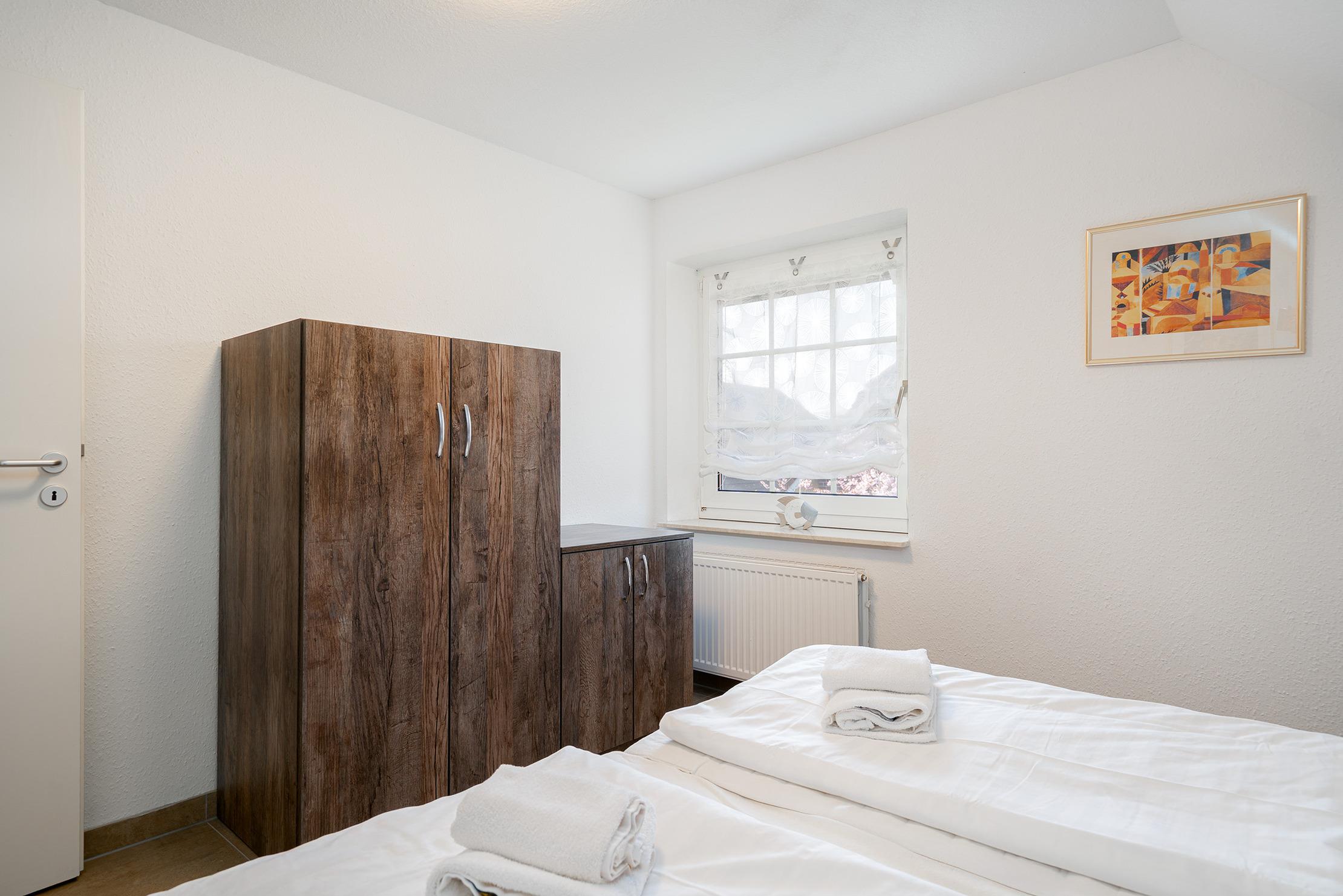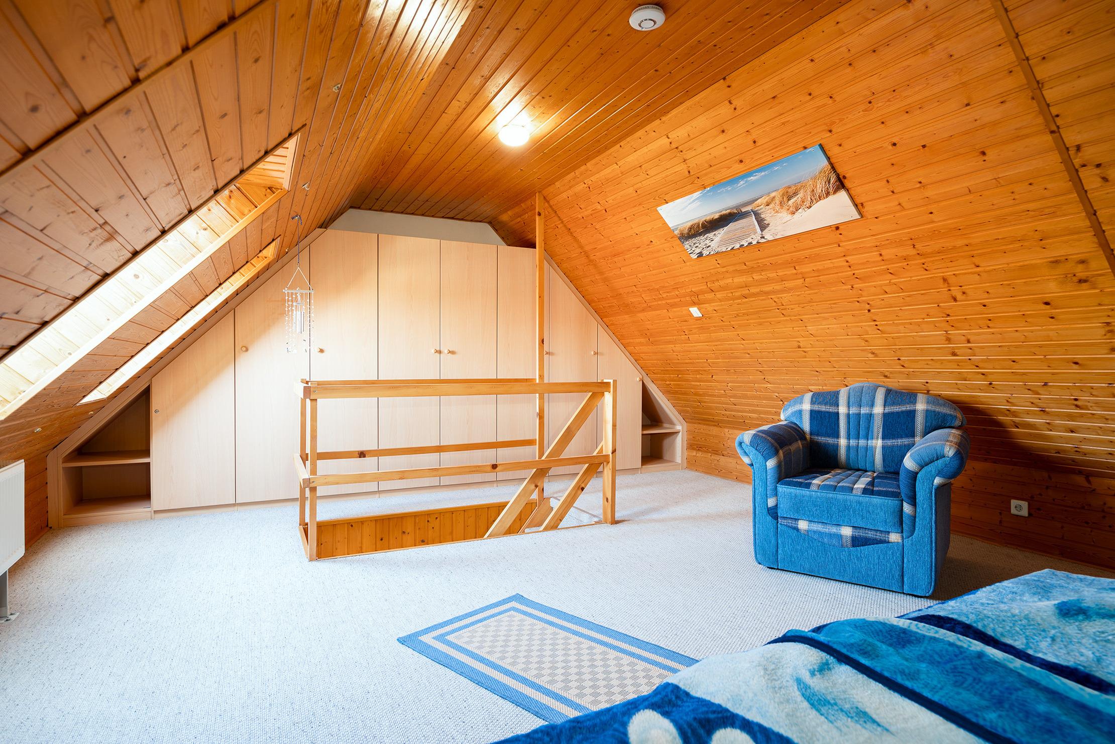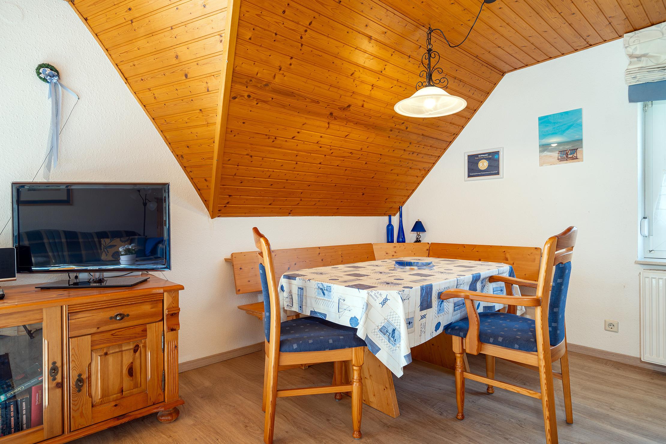 Die Ferienwohnung "Friesentraum" befindet sich in einem traditionellen Ferienhausgebiet im Obergeschoss eines Hauses mit vier Wohneinheiten. Sie vereint auf charmante Weise ostfriesische Tradition mit modernem Wohnkomfort. Beim Betreten der Wohnung fällt sofort die liebevolle, traditionelle Einrichtung ins Auge: rustikale Holzmöbel, gemütliche Stoffe und typisch friesische Dekorationen schaffen eine warme, heimelige Atmosphäre. Der Wohnbereich und die Küche strahlen den gemütlichen Charakter eines klassischen Landhauses aus – ideal, um zur Ruhe zu kommen. Gleichzeitig überzeugt die Wohnung mit modernen Akzenten: Das renovierte Tageslichtbad mit der ebenerdigen Dusche ist zeitgemäß ausgestattet. Auch eines der beiden Schlafzimmer wurde modernisiert und strahlt mit klaren Linien, hochwertigen Materialien und angenehmer Farbgestaltung eine frische, zeitlose Ruhe aus. Das zweite, traditionell gestaltete Schlafzimmer erreichen Sie durch eine Treppe und ist offen als Galerie gestaltet. Es bietet neben einem Schlafbereich auch einen Sessel. Die Wohnung bietet weiterhin einen Balkon, auf dem sich die frische Luft genießen lässt. Neben einem Fahrradabstellraum gibt es außerdem einen reservierten PKW-Stellplatz vor dem Haus.
