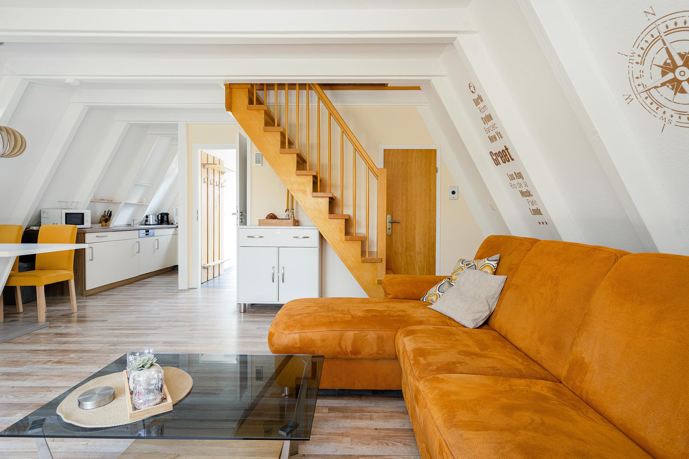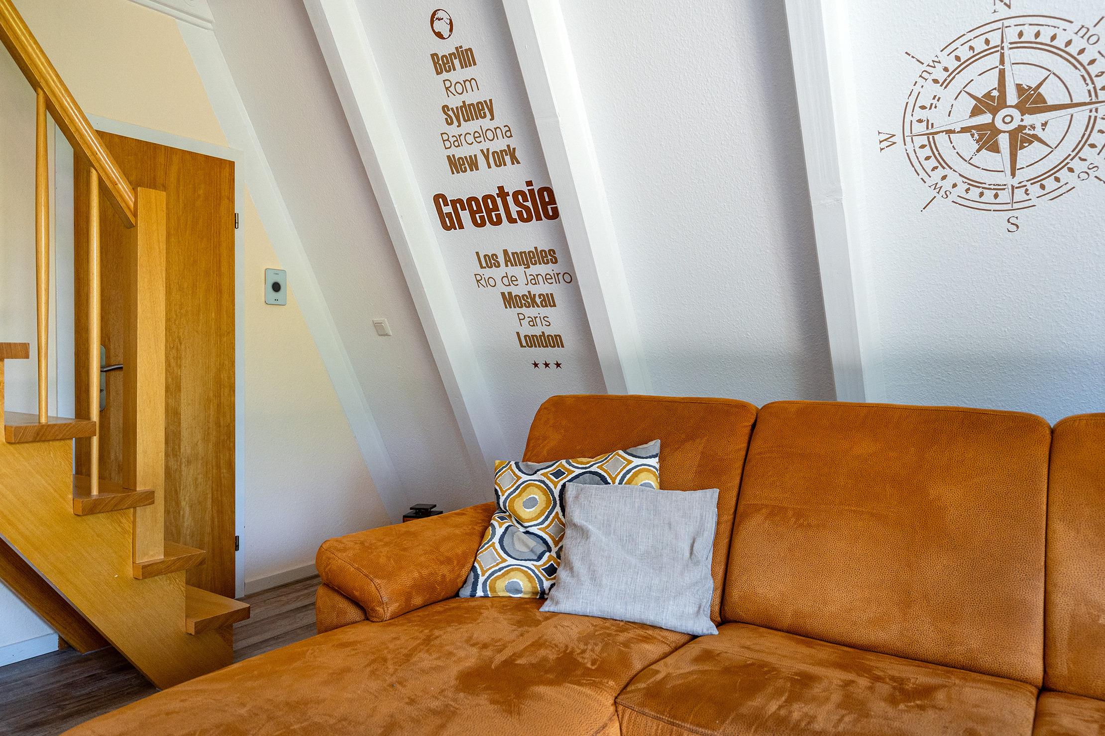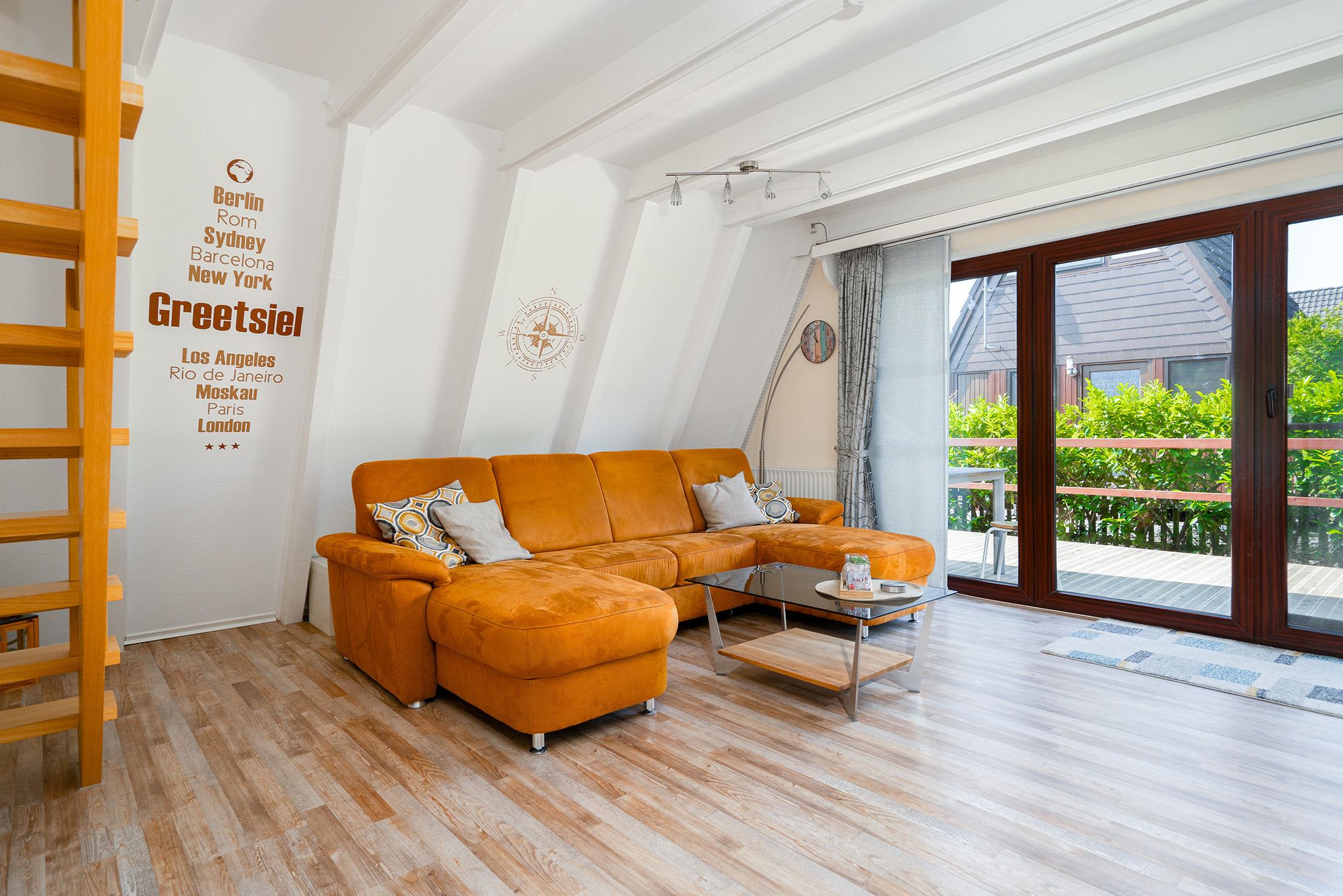 In der ruhigen Nordseestraße, nur wenige hundert Meter vom Deich entfernt, erwartet Sie das liebevoll eingerichtete Ferienhaus „Hänsel und Greetsiel“ – ein charmantes Nurdachhaus, das norddeutsche Gemütlichkeit mit moderner Funktionalität verbindet. Auf etwa 60qm bietet das Haus auf zwei Etagen Platz für insgesamt vier Personen. Im Erdgeschoss befindet sich der helle und gemütliche Wohn- und Essbereich mit großer Wohnlandschaft, einem Esstisch und angrenzender voll ausgestatteter Küchenzeile – der perfekte Ort für entspannte Abende. Große Fenster sorgen für viel Licht und einen schönen Ausblick in den Garten. Ein modernes Tageslichtbad sowie der direkte Zugang zur Terrasse machen das Erdgeschoss besonders komfortabel. Im Obergeschoss befinden sich zwei behagliche Schlafzimmer: eines mit einem Doppelbett, das andere mit zwei Einzelbetten und einem Schreibtisch – ideal für Familien oder Freunde. Die Einrichtung mit klassischen Holzmöbeln verleiht dem Obergeschoss eine warme, traditionelle Atmosphäre. Ein separates WC sorgt zusätzlich für Bequemlichkeit. Die frische Nordseeluft genießen Sie auf der Terrasse mit Markise und dem großzügigen Garten, wo sich auch ein Fahrradabstellraum befindet. Selbstverständlich steht Ihnen ein eigener PKW-Stellplatz am Haus zur Verfügung. Das Ferienhaus „Hänsel [&] Greetsiel“ bietet somit die perfekte Mischung aus Ruhe, Natur und Nähe zum charmanten Ortskern von Greetsiel – ein idealer Ort für Erholung und Nordseeluft.
