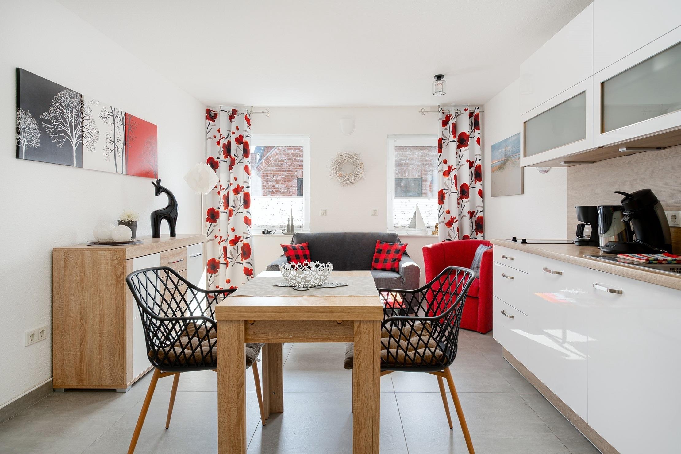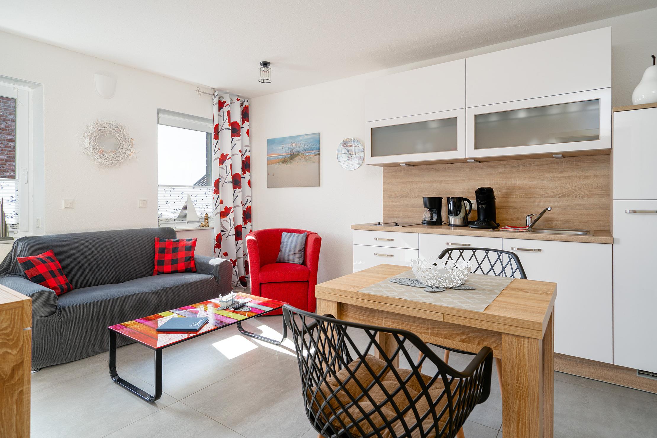 Charmante Ferienwohnung "Krabbenkutter" in Greetsiel mit moderner Küche und eigenem Parkplatz für erholsame Tage an der Nordsee.