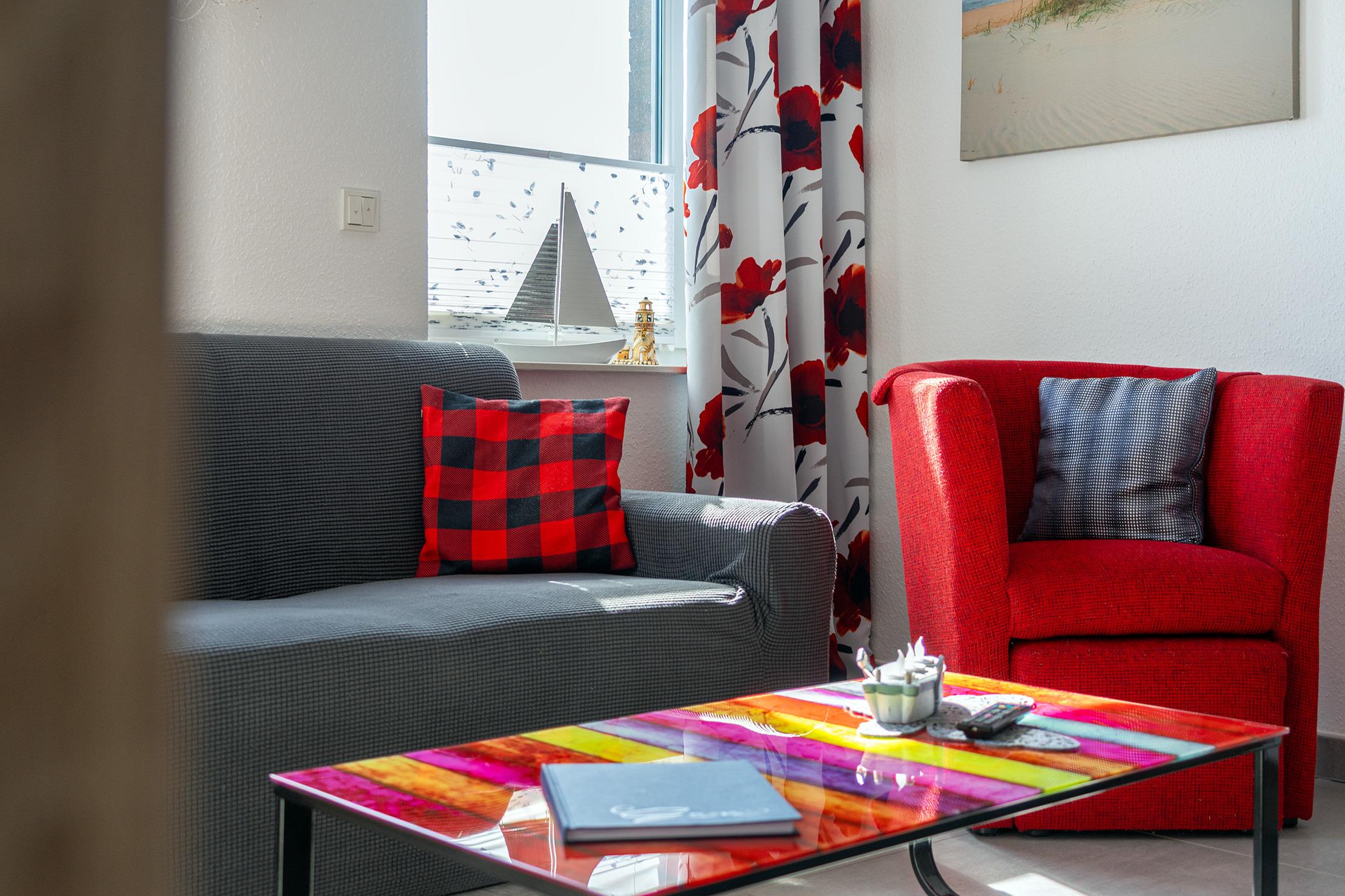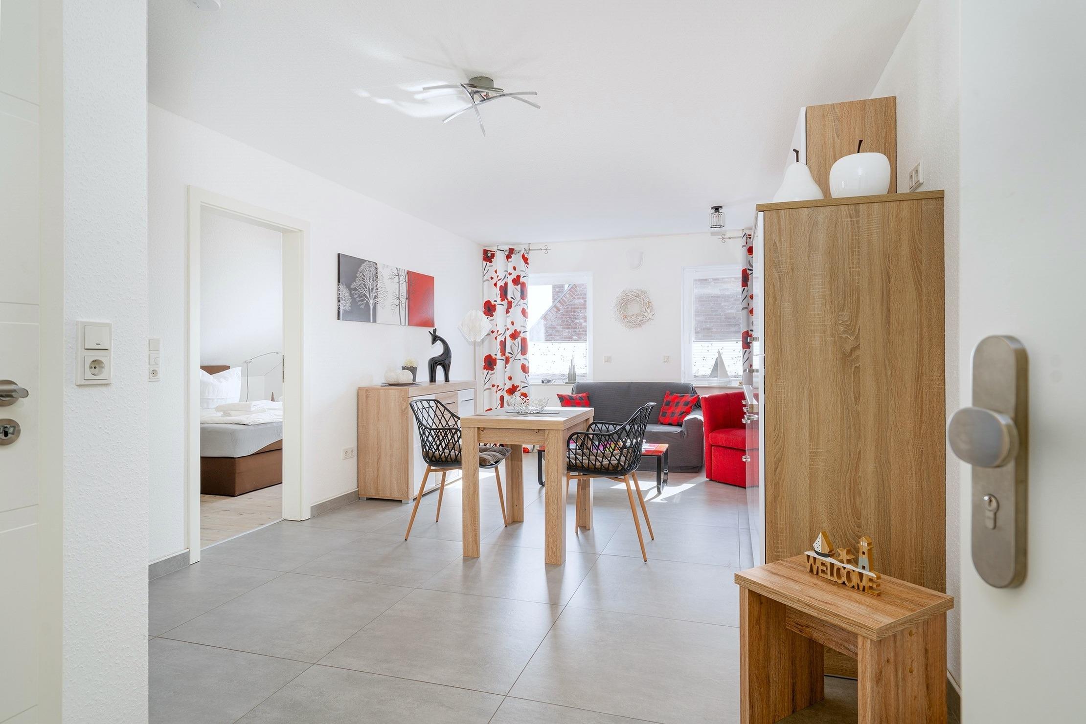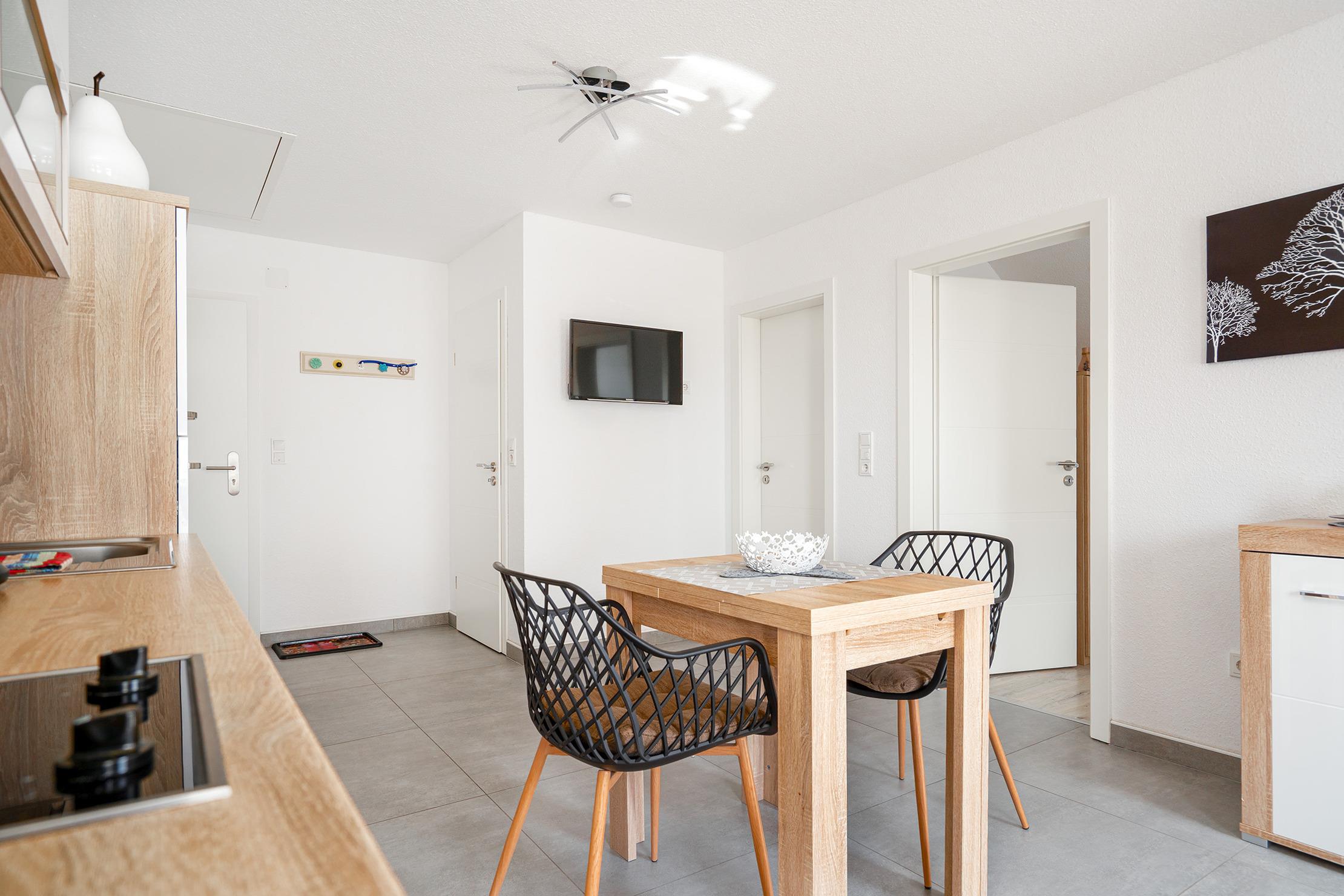 Verbringen Sie entspannte Tage in unserer charmanten Ferienwohnung „Krabbenkutter“. Sie befindet sich im Obergeschoss eines Hauses mit insgesamt fünf Wohneinheiten und bietet auf 45qm Platz für zwei Personen. Der offene Wohn- und Essbereich bietet eine voll ausgestattete, moderne Einbauküche sowie einen Esstisch und eine gemütliche Sitzecke. Im separaten Schlafzimmer schlafen Sie bequem in einem hochwertigen Boxspringbett, ein zweiter Fernseher sorgt für zusätzlichen Komfort. Das helle Tageslichtbad ist großzügig geschnitten und mit einer ebenerdigen Dusche ausgestattet – ideal für einen frischen Start in den Tag. Zur Wohnung gehören außerdem ein eigener Parkplatz sowie ein Abstellraum für Fahrräder, in dem Sie auch E-Bikes laden können. Genießen Sie Greetsiel mit seinem historischen Ortskern, dem romantischen Hafen und der frischen Nordseeluft - die Wohnung „Krabbenkutter“ ist der ideale Ausgangspunkt dafür.