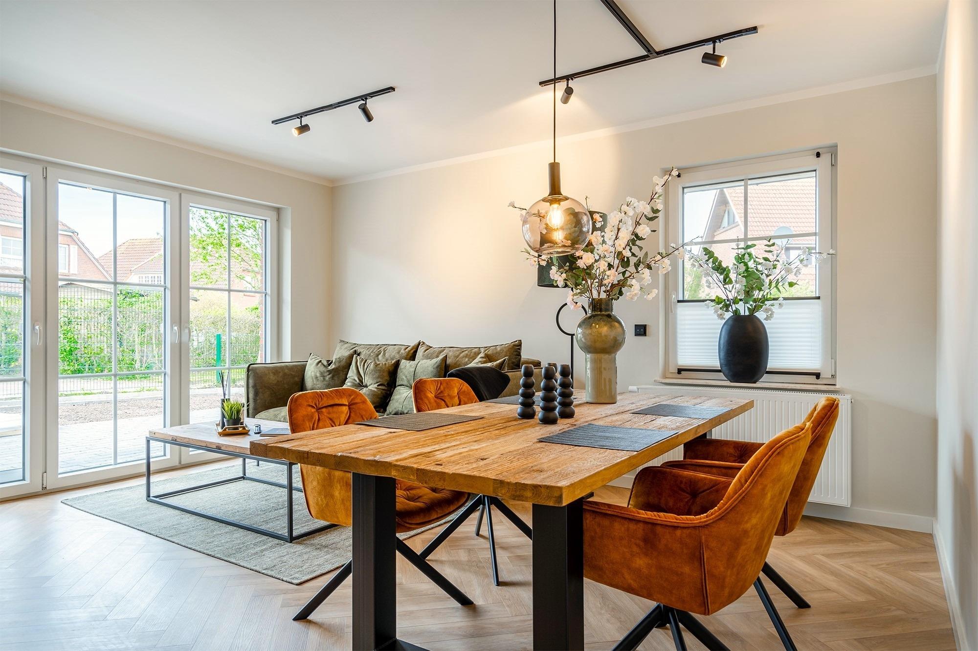 Modern eingerichtete Ferienwohnung mit Terrasse, Garten und Parkplatz im idyllischen Greetsiel.