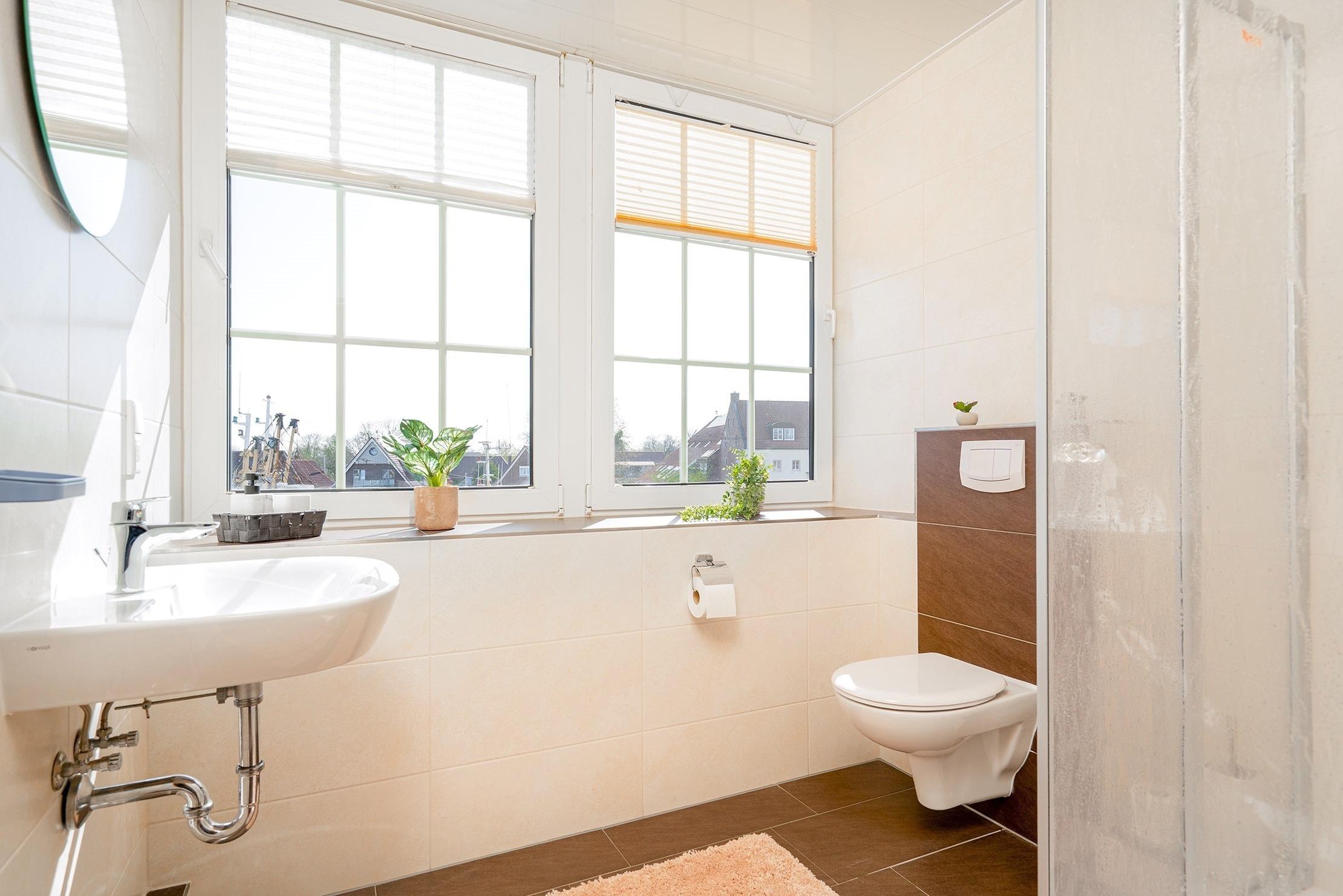 Diese großzügige 90qm große Obergeschoss Wohnung "Kutterblick" befindet sich in einzigartiger Lage mitten im Hafen von Greetsiel – direkt über dem traditionellen Restaurant "Fischerhus". Die Wohnung vereint modernen Komfort mit traditionellem Charme: Während einige Räume stilvoll renoviert wurden, bewahren andere ihren gemütlichen, klassischen Charakter. Zwei Schlafzimmer und eine geräumige abgeschlossene Küche bieten ausreichend Platz für einen entspannten Aufenthalt mit der Familie oder Freunden. Hierfür eigenen sich auch die beiden vorhandenen großzügigen Tageslichtbäder, wovon eines mit Badewanne und eines mit Dusche ausgestattet ist. Letzteres bietet beim Duschen sogar eine unglaublichen Weitsicht in den Hafen, der perfekte Start in den Tag. Der großzügige Wohnbereich lädt mit seinem Kamin und dem traumhaften Blick auf die Kutterflotte zum Verweilen ein. Nach einem erlebnisreichen Tag können Sie in der hauseigenen Sauna entspannen und die maritime Atmosphäre genießen. Ein perfekter Rückzugsort für alle, die das Klassische suchen und sehr zentral wohnen möchten.