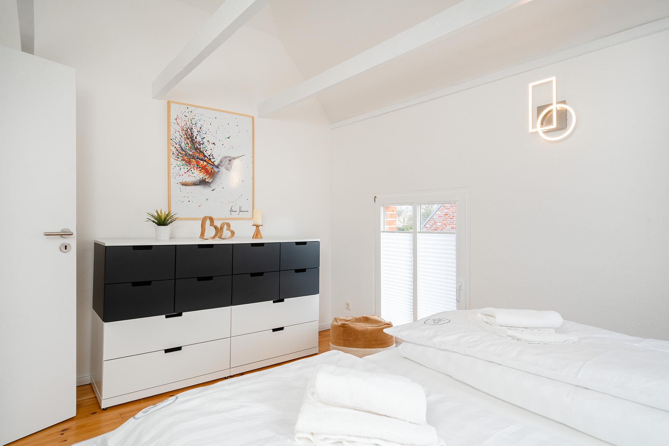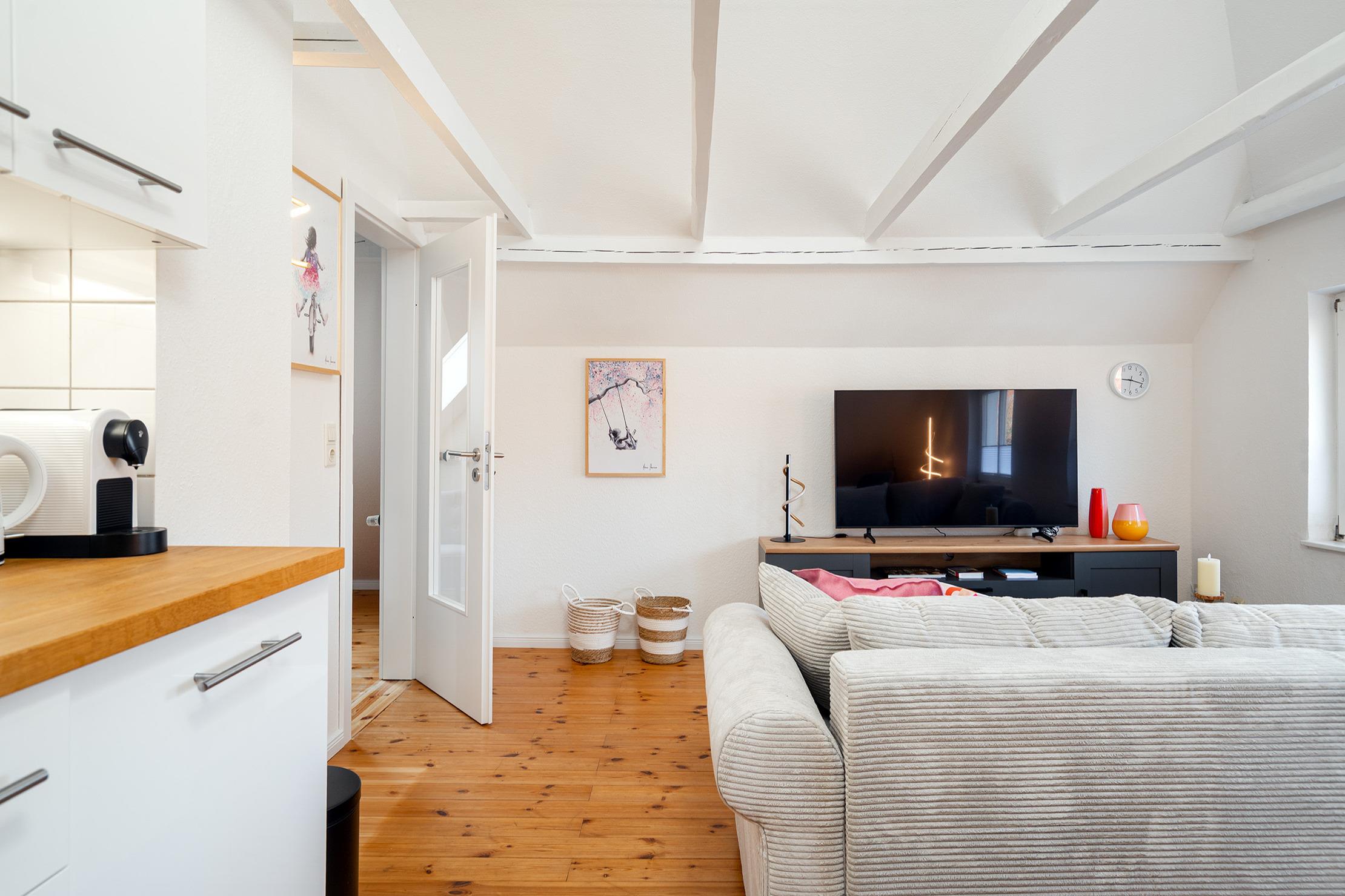 Willkommen in der "Lüttje Bud", Ihrer gemütlichen Ferienwohnung im Herzen von Greetsiel! "Klein aber sehr fein" beschreibt diese etwa 40qm große Wohnung im Obergeschoss am Besten, die mit einer perfekten Raumaufteilung überzeugt. Wer gerne zentral wohnt ist hier genau richtig: Die Wohnung verfügt über einen offenen und gemütlichen Wohn- und Essbereich mit einem großen Sofa, einen Esstisch und eine gut ausgestatteten Küchenzeile - ideal, um nach einem Tag an der frischen Luft den Abend entspannt ausklingen zu lassen. Neben dem Schlafzimmer mit komfortablem Doppelbett und genügend Ablagefläche bietet die Wohnung außerdem einen einladenden Eingangsbereich mit kleinem Sessel zum Lesen sowie ein geräumiges Tageslichtbad. Für die sonnigen Stunden eignet sich der kleine Freisitz, der sich am Eingangsbereich befindet und über die Wohnungseingangstreppe zu erreichen ist (bitte beachten Sie, dass die Treppe recht steil ist und die Terrasse somit nicht direkt vom Wohnraum aus zugänglich ist). Weitere Pluspunkte der Wohnung sind zum Einen der reservierte Parkplatz direkt am Haus sowie der Fahrradabstellraum, dies bietet nicht jede so zentral gelegene Wohnung.