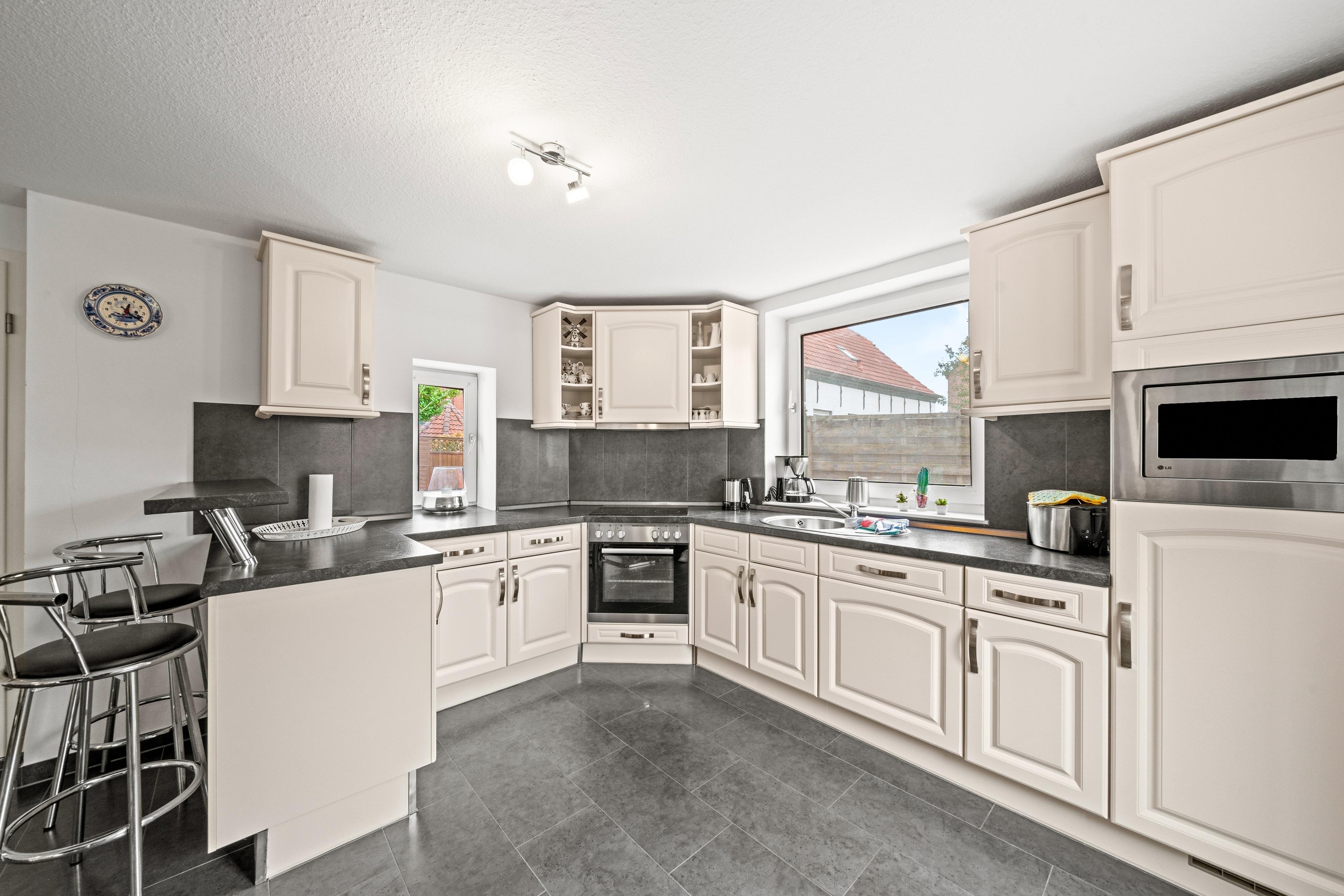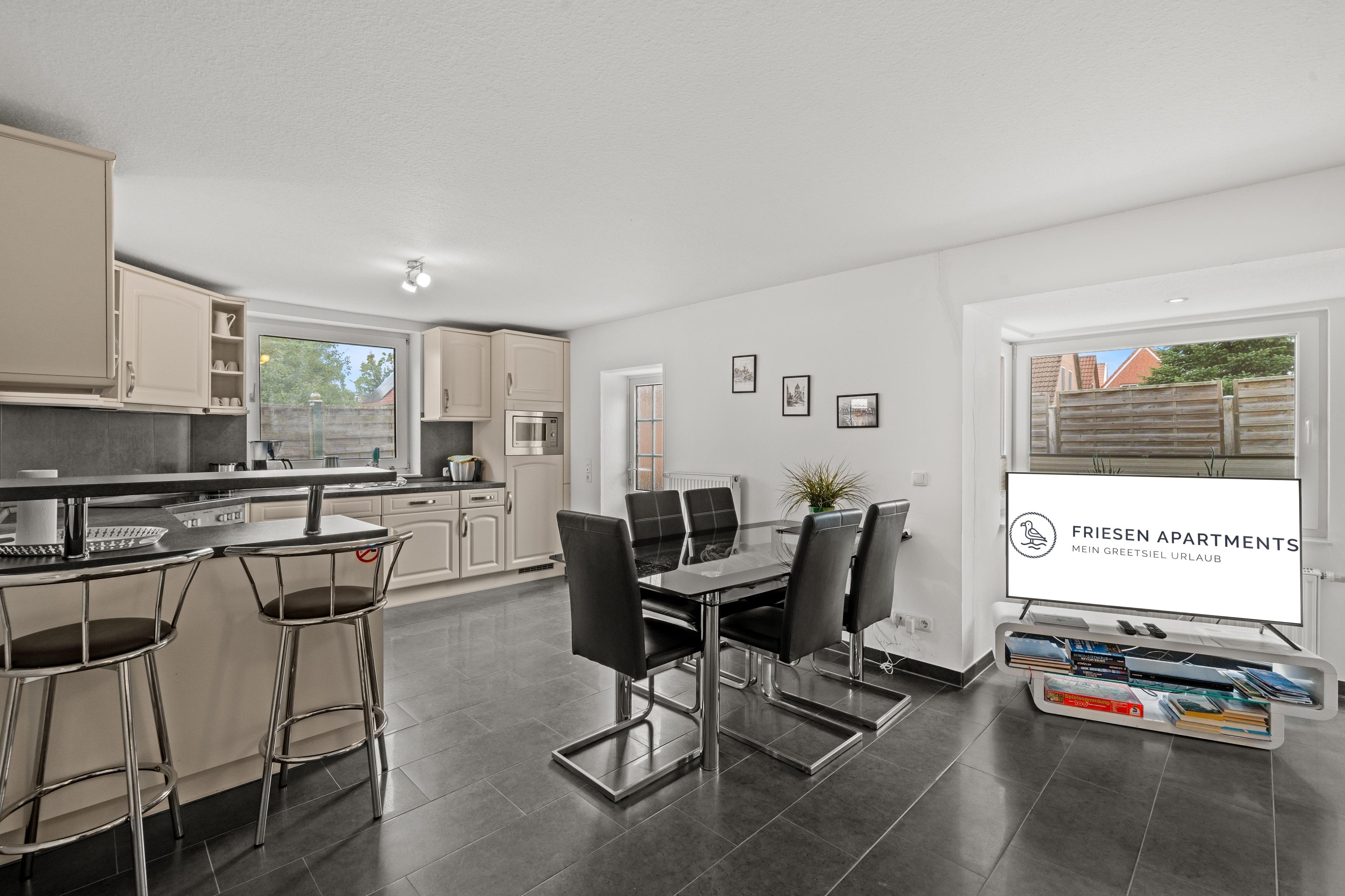 Mitten im charmanten Fischerörtchen Greetsiel erwartet Sie das Ferienhaus "Nordwind" – ein modernes, gemütliches Haus mit viel Platz auf 80qm Wohnfläche. Die Unterkunft erstreckt sich über zwei Etagen und bietet damit den idealen Rückzugsort für Familien, Paare oder befreundete Gruppen. Im Erdgeschoss befindet sich ein Schlafzimmer mit Doppelbett, das sich besonders für Gäste eignet, die Treppen vermeiden möchten. Ebenfalls auf dieser Ebene liegen das moderne Tageslichtbad sowie der großzügige und helle Wohn- und Essbereich mit angrenzender Küchenzeile. Im Obergeschoss stehen zwei weitere Schlafzimmer zur Verfügung – eines mit Doppelbett, das andere mit zwei Einzelbetten. Zusätzlich gibt es hier ein separates WC, was für Komfort und kurze Wege sorgt. Ein echtes Highlight ist der kleine Garten mit Terrasse, der zum Verweilen im Freien einlädt. Für ein Haus in dieser zentralen Lage ist dies eine echte Besonderheit. Nur wenige Schritte trennen Sie vom Hafen, den historischen Gassen und den Restaurants und doch bietet die Sackgassenlage einen ruhigen Rückzugsort. Selbstverständlich steht auch ein eigener PKW-Stellplatz vor dem Haus zur Verfügung.