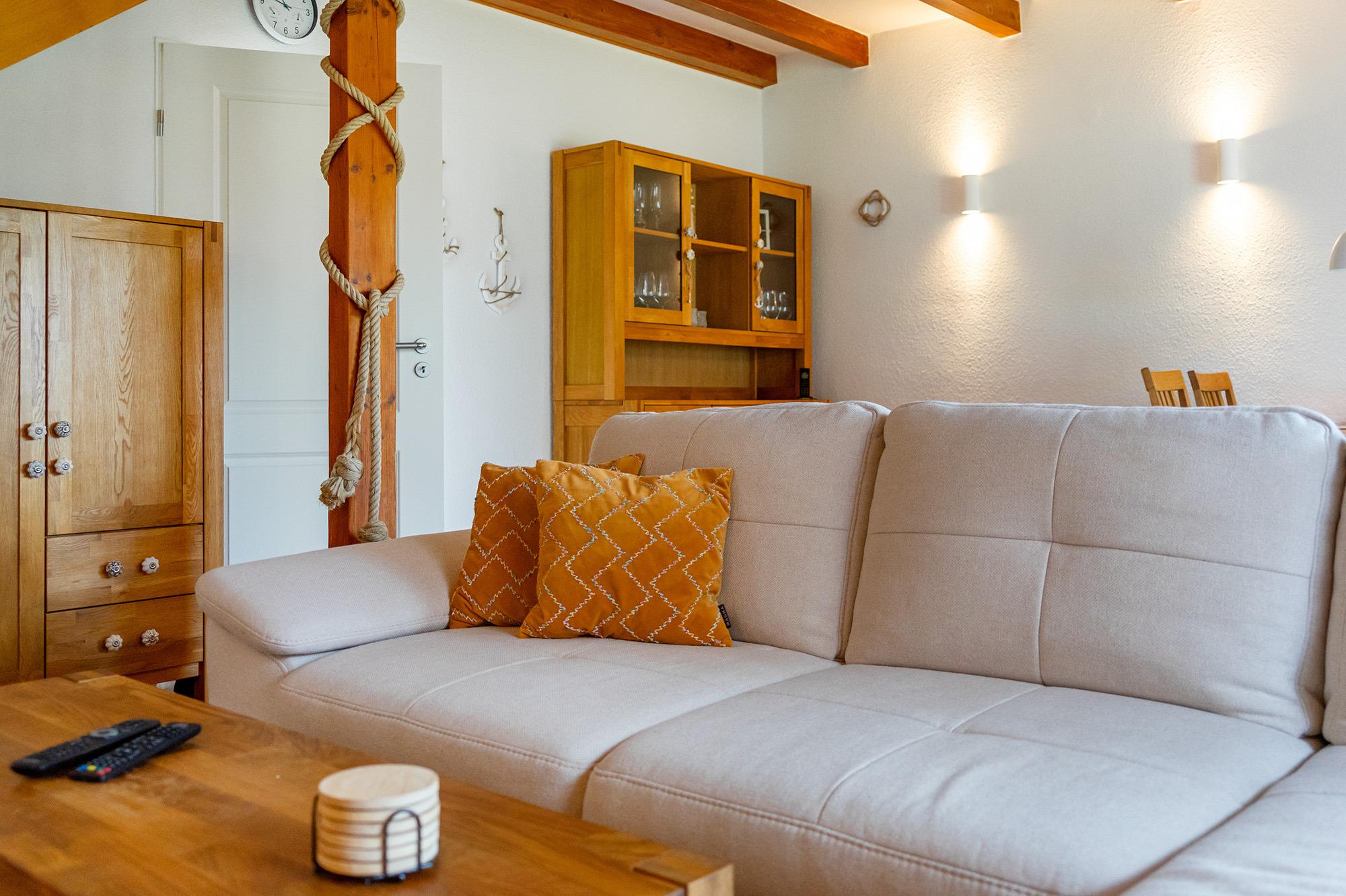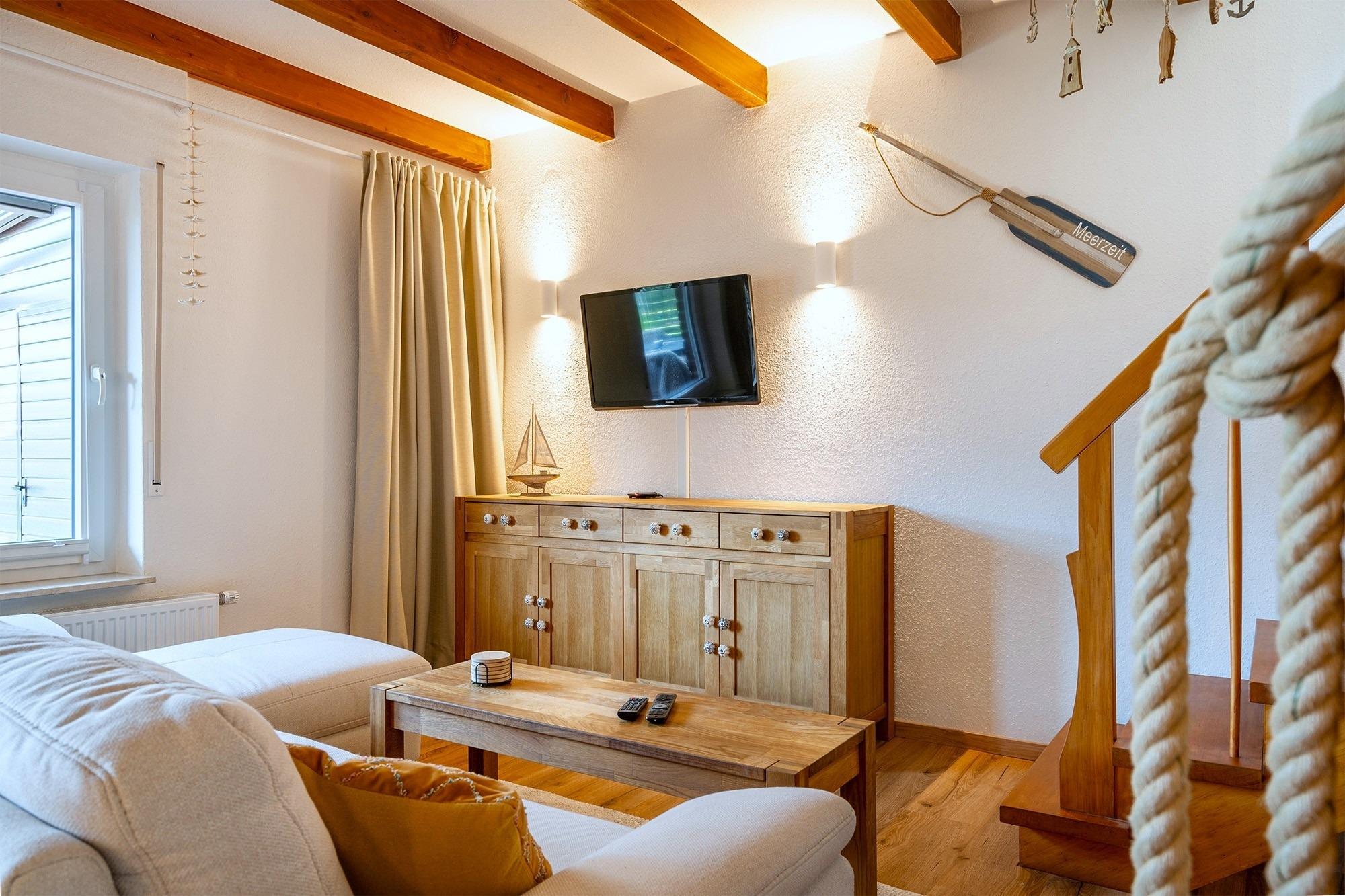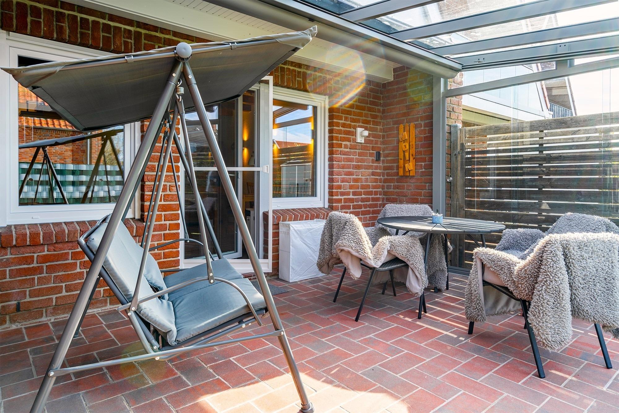 Viel draußen sitzen und die frische Nordseeluft genießen - das ist in unserem Ferienhaus "Ruhehafen" sogar trotz ostfriesischem "Schietwetter" gut möglich. Denn dieses kürzlich umfassend renovierte Ferienhaus bietet einen Garten, eine voll überdachte und mit Glastüren verschließbare Terrasse sowie einen großen Sonnenbalkon. Auf etwa 70qm finden Sie im Erdgeschoss einen hellen Wohn-Ess-Bereich, sowie eine großzügige separate Küche. Die Einrichtung im Landhausstil sowie die Deckenbalken aus Holz strahlen eine gemütliche und warme Atmosphäre aus. Neben einem Abstellraum befindet sich im Erdgeschoss ebenfalls das Tageslichtbad mit einer ebenerdigen Dusche. Die großzügigen Schlafzimmer mit bequemen Boxspringbetten und großen Einbauschränken finden Sie im Obergeschoss, ebenso ein kleines Gäste-WC. Das Haus verfügt außerdem über zwei Parkplätze, was sich für den gemeinsamen Urlaub mit Freunden anbietet. Für Fahrräder steht im Garten ein Abstellraum zur Verfügung.