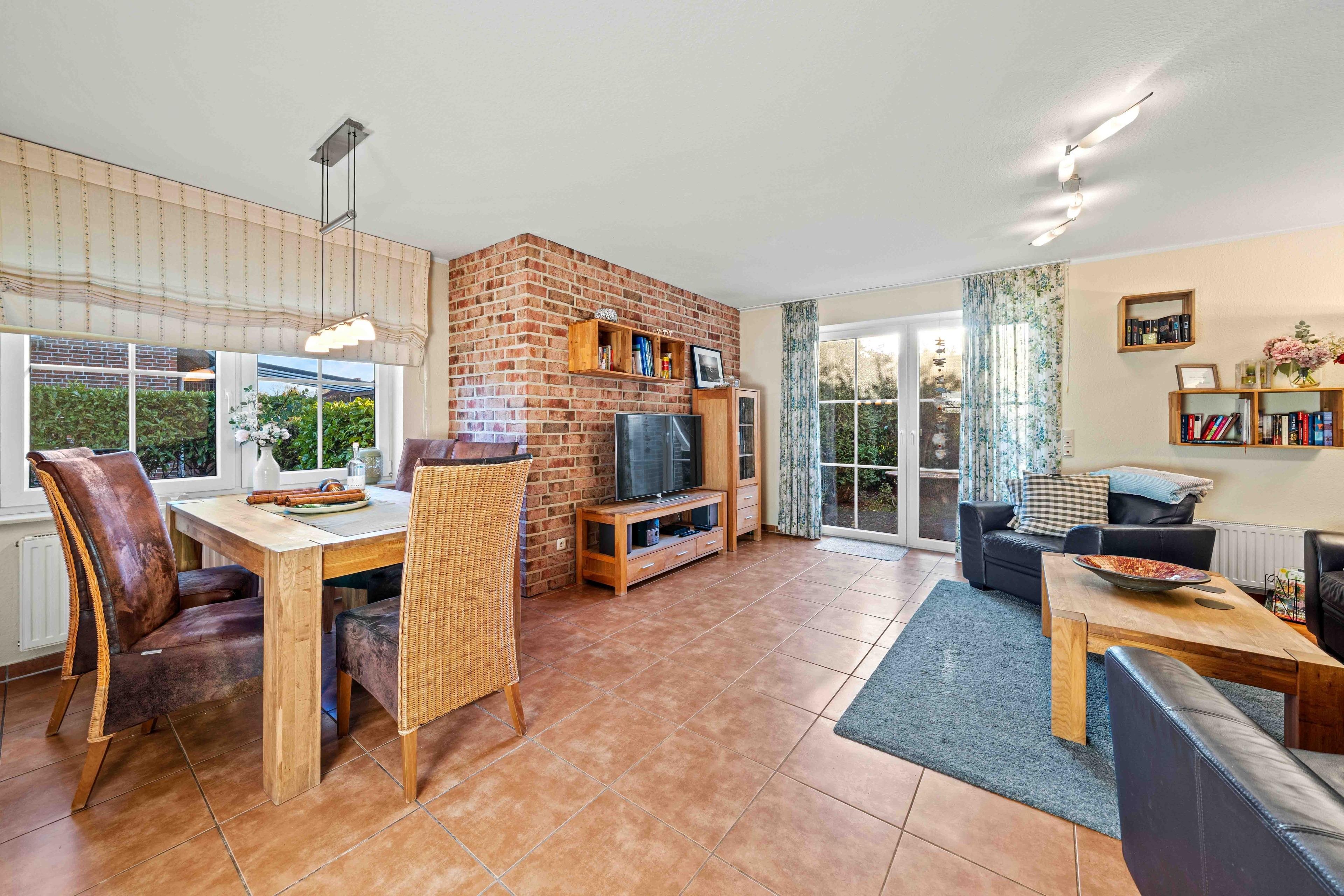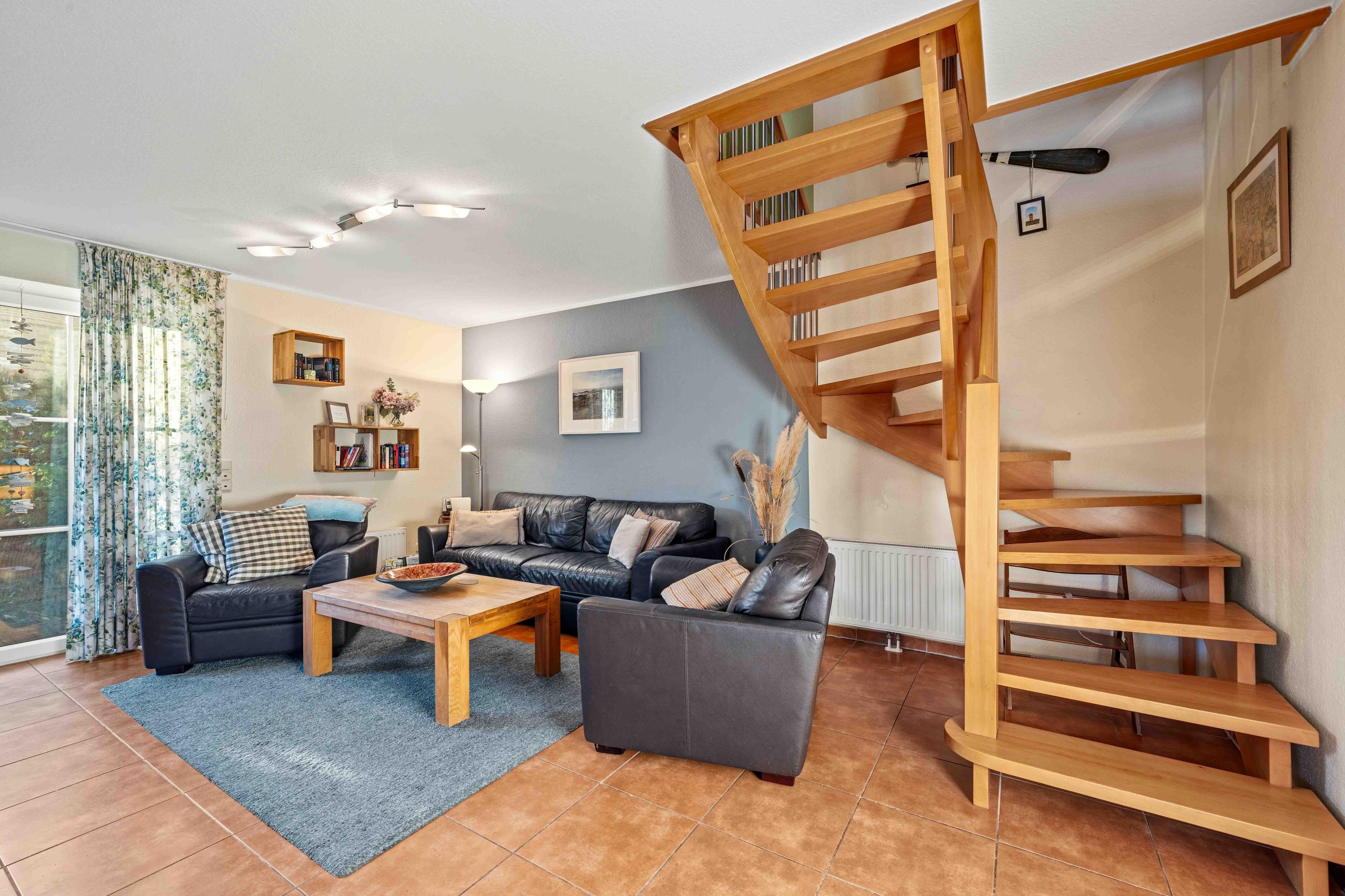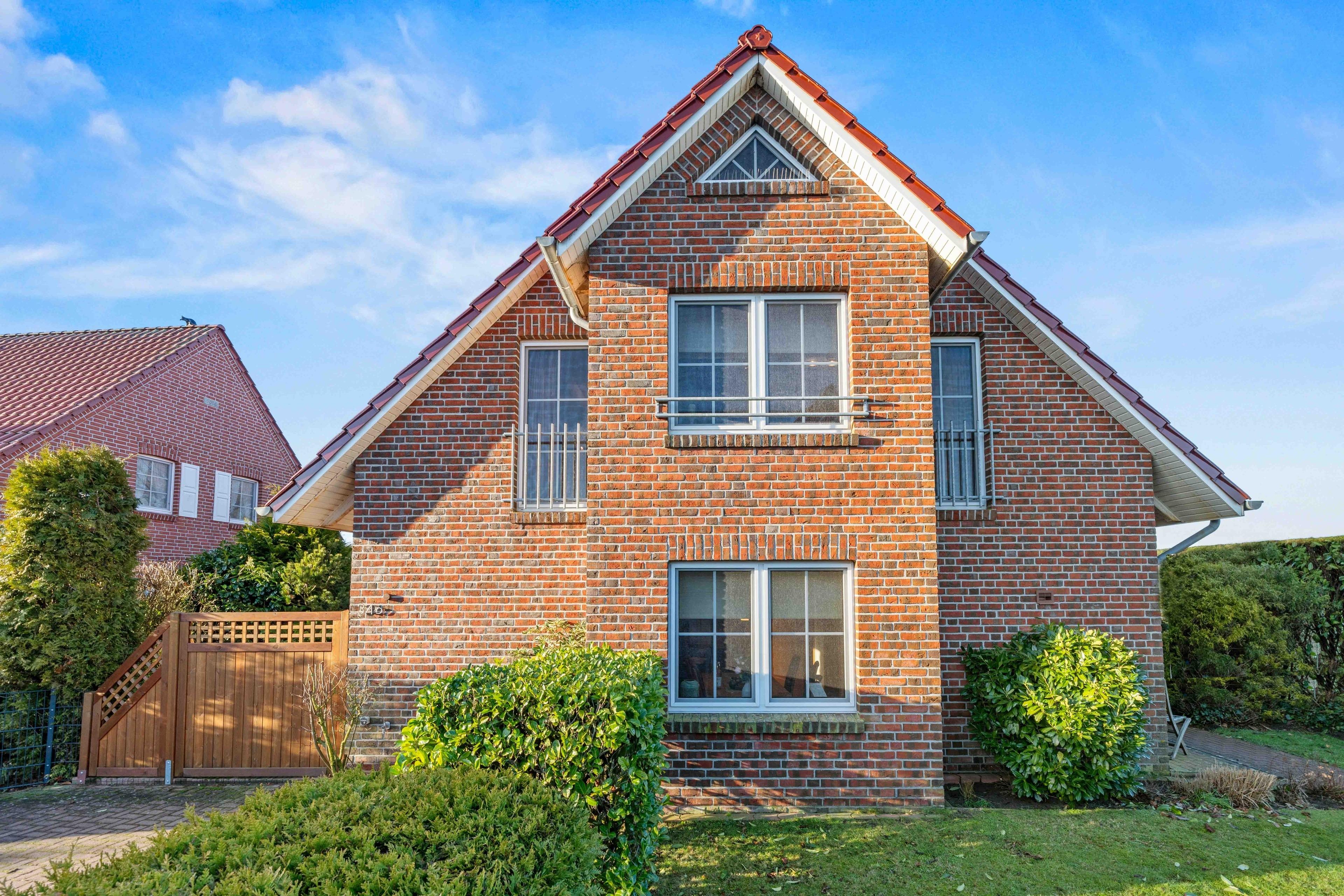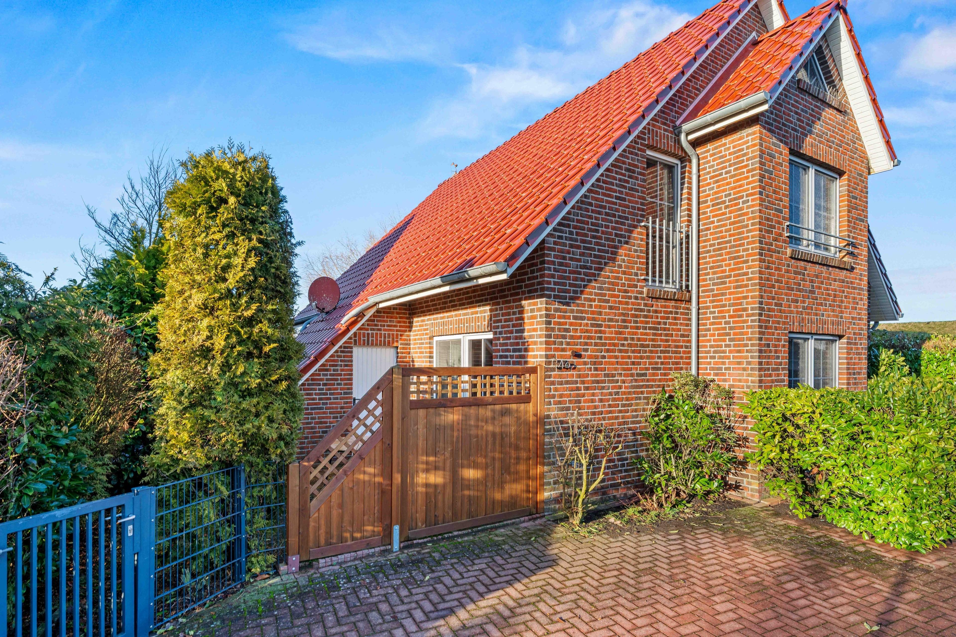 Willkommen im "Seehuus" Greetsiel – Ihrem Feriendomizil in traumhafter Lage, nur wenige Schritte vom Deich und dem Badesee entfernt. Auf ca. 90qm erwartet Sie eine gemütlich eingerichtete Doppelhaushälfte für einen entspannten Urlaub. Im Erdgeschoss genießen Sie ein einladendes Wohnzimmer sowie eine voll ausgestattete separate Küche. Die Essecke lädt zu geselligen Mahlzeiten ein. Ein Gäste-WC rundet das Angebot im Erdgeschoss ab. Im Obergeschoss befinden sich zwei Schlafzimmer mit großen Kleiderschränken sowie ein modernes Tageslichtbad. Ein Highlight ist außerdem das Dachgeschoss, in dem Sie einen Aufenthaltsraum mit einem Tischkicker finden, ideal für gesellige Abende oder Kinder. Im Außenbereich erwarten Sie zwei Gartenflächen - eine bietet einen eingezäunten Rasen mit Terrasse, der vor allem von Hundebesitzern sehr geschätzt wird. Im zweiten Bereich genießen Sie den Blick zum Deich und entspannen auf den Sonnenliegen. Ein Gartenhaus für Ihre Fahrräder ist vorhanden, ebenso wie der PKW-Parkplatz direkt vor dem Haus. Nutzen Sie die direkte Deichlage des Hauses für ausgedehnte Spaziergänge zum Hafen oder ins idyllische Ortszentrum.