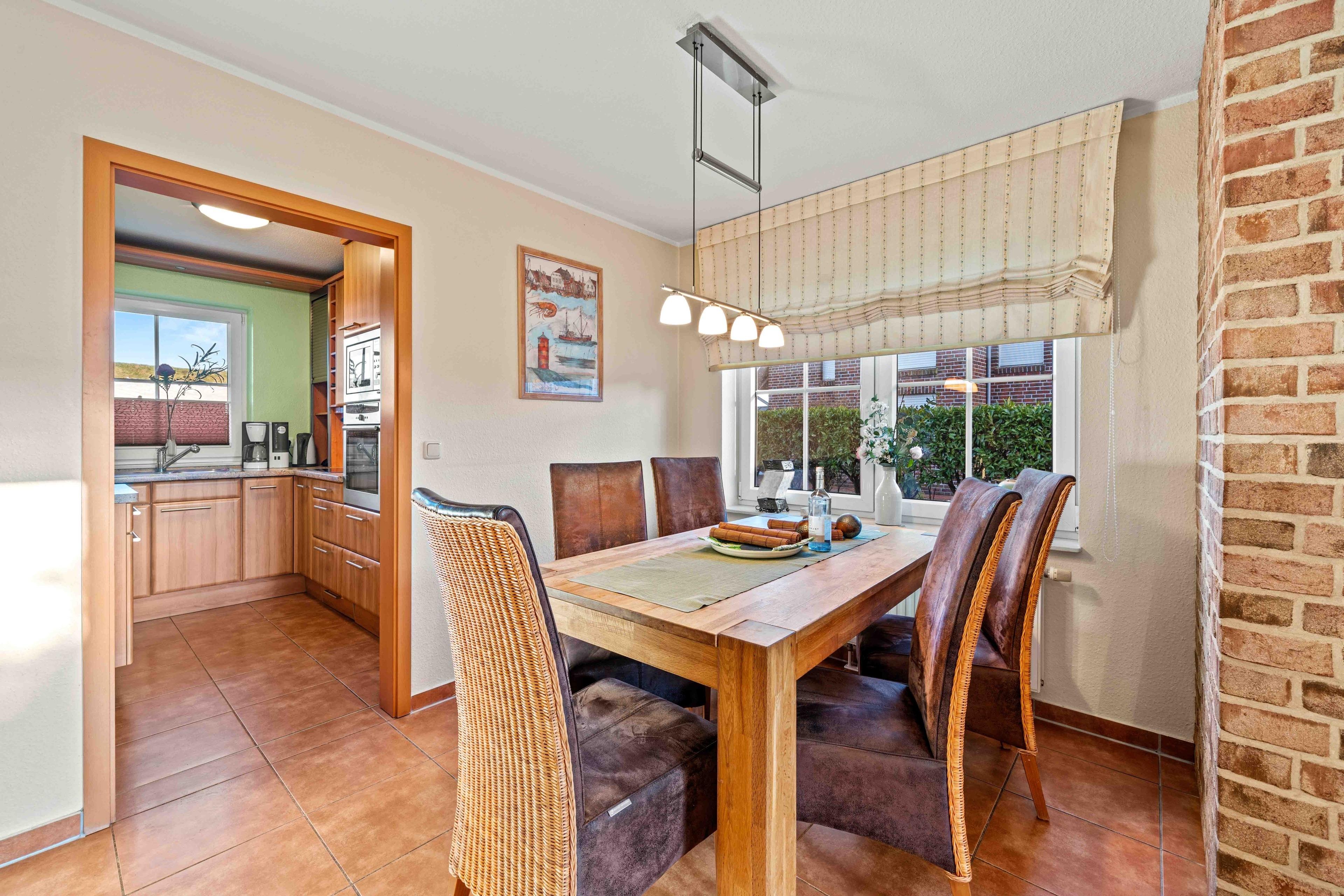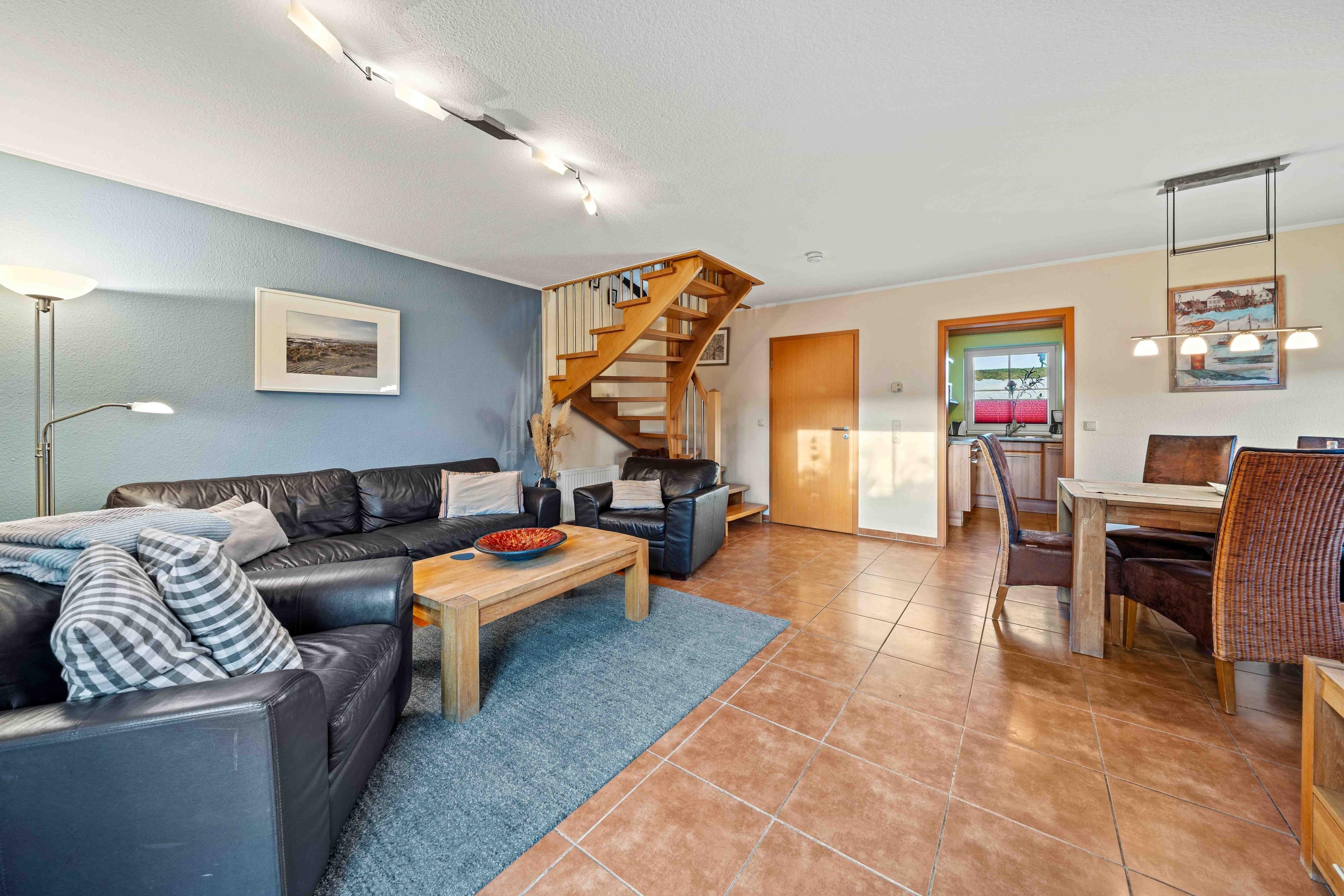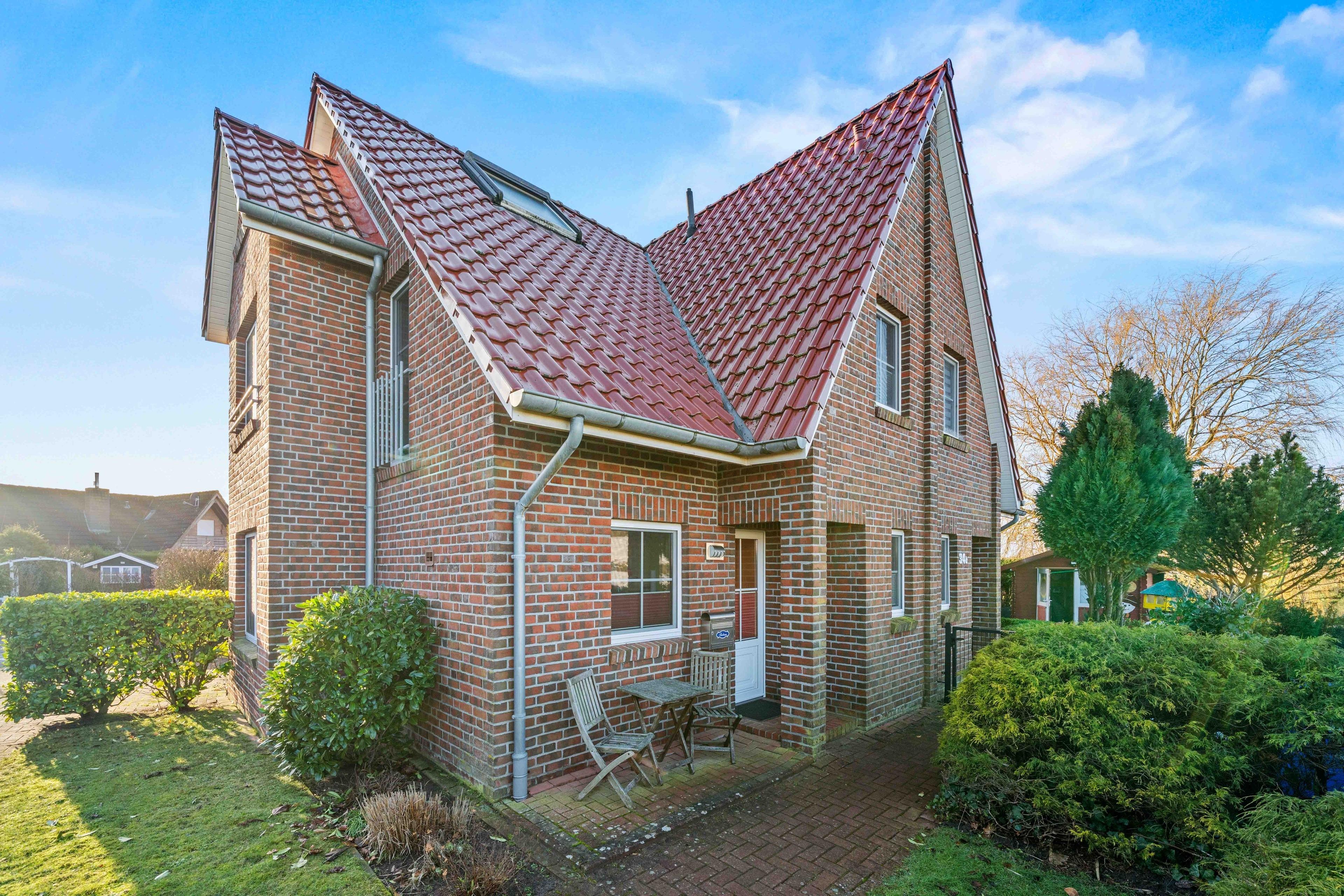 Willkommen im "Seehuus" Greetsiel – Ihrem Feriendomizil in traumhafter Lage, nur wenige Schritte vom Deich und dem Badesee entfernt. Auf ca. 90qm erwartet Sie eine gemütlich eingerichtete Doppelhaushälfte für einen entspannten Urlaub. Im Erdgeschoss genießen Sie ein einladendes Wohnzimmer sowie eine voll ausgestattete separate Küche. Die Essecke lädt zu geselligen Mahlzeiten ein. Ein Gäste-WC rundet das Angebot im Erdgeschoss ab. Im Obergeschoss befinden sich zwei Schlafzimmer mit großen Kleiderschränken sowie ein modernes Tageslichtbad. Ein Highlight ist außerdem das Dachgeschoss, in dem Sie einen Aufenthaltsraum mit einem Tischkicker finden, ideal für gesellige Abende oder Kinder. Im Außenbereich erwarten Sie zwei Gartenflächen - eine bietet einen eingezäunten Rasen mit Terrasse, der vor allem von Hundebesitzern sehr geschätzt wird. Im zweiten Bereich genießen Sie den Blick zum Deich und entspannen auf den Sonnenliegen. Ein Gartenhaus für Ihre Fahrräder ist vorhanden, ebenso wie der PKW-Parkplatz direkt vor dem Haus. Nutzen Sie die direkte Deichlage des Hauses für ausgedehnte Spaziergänge zum Hafen oder ins idyllische Ortszentrum.