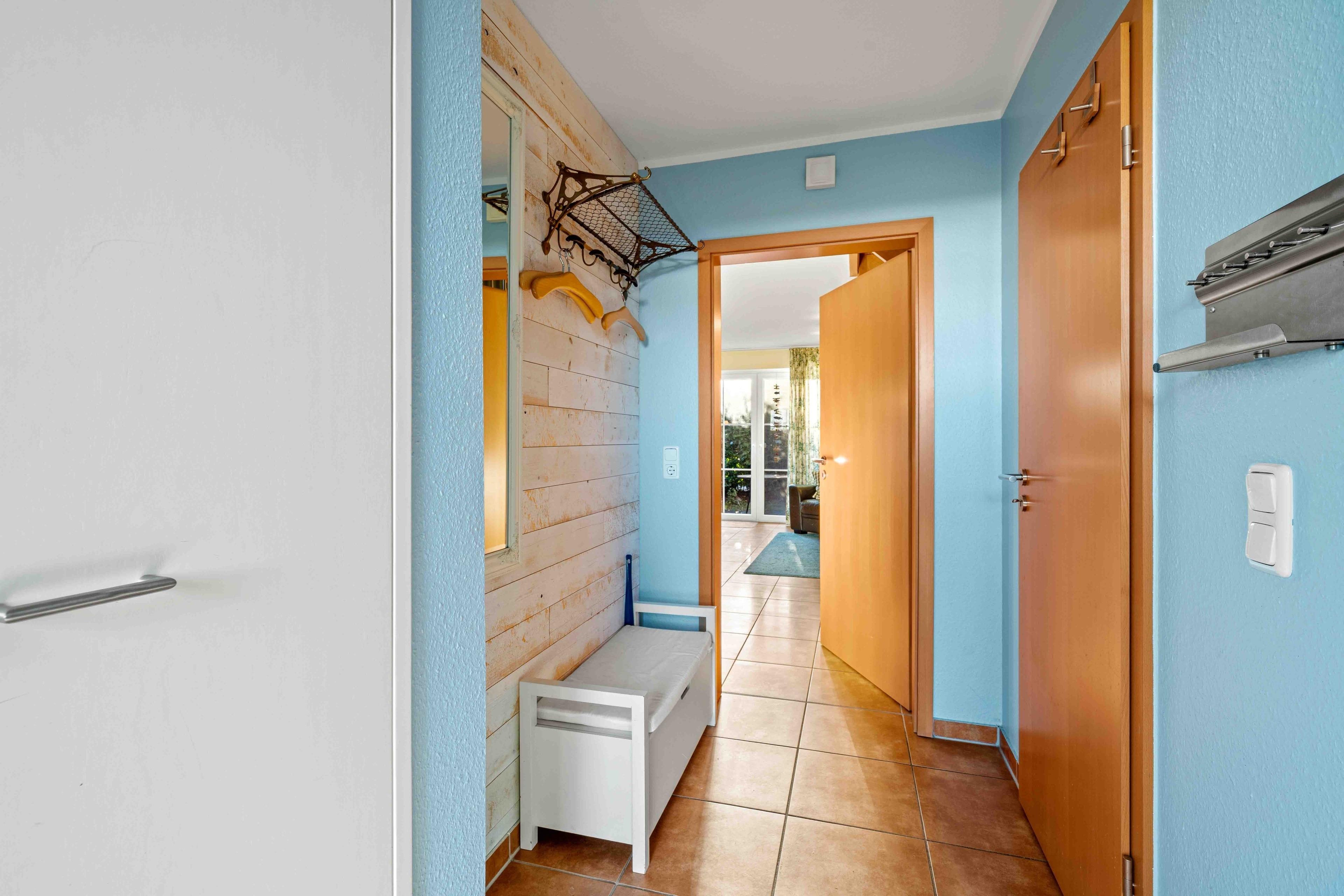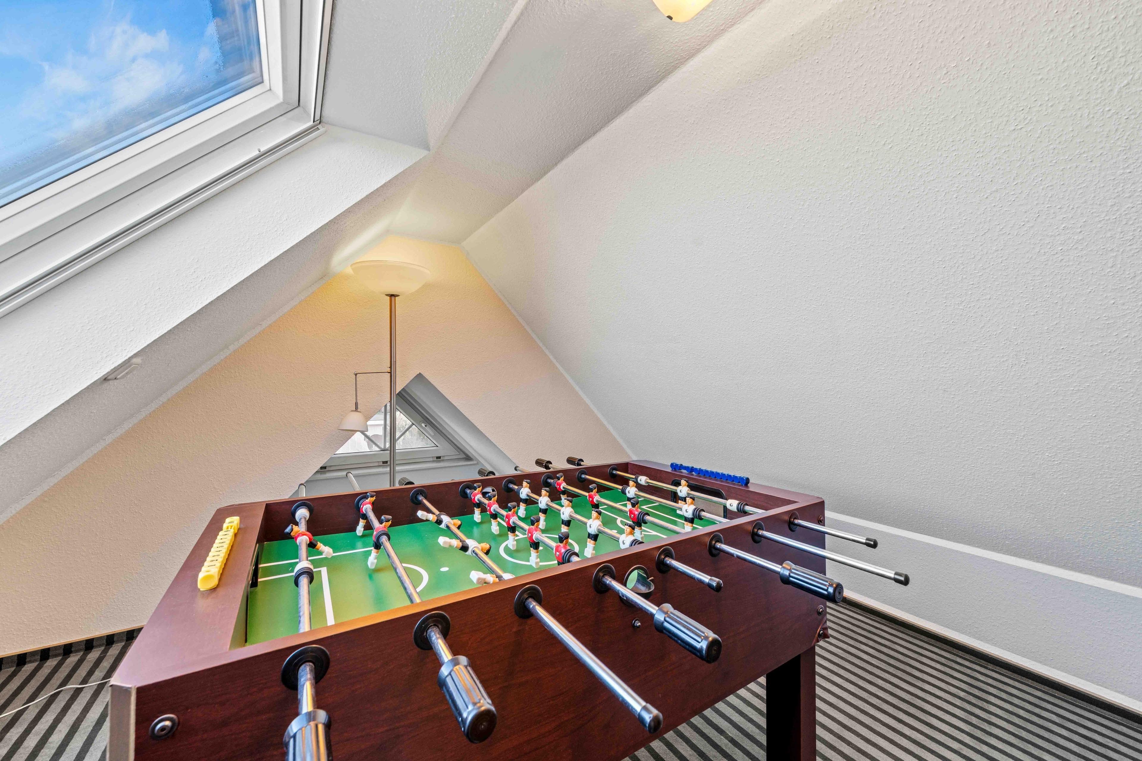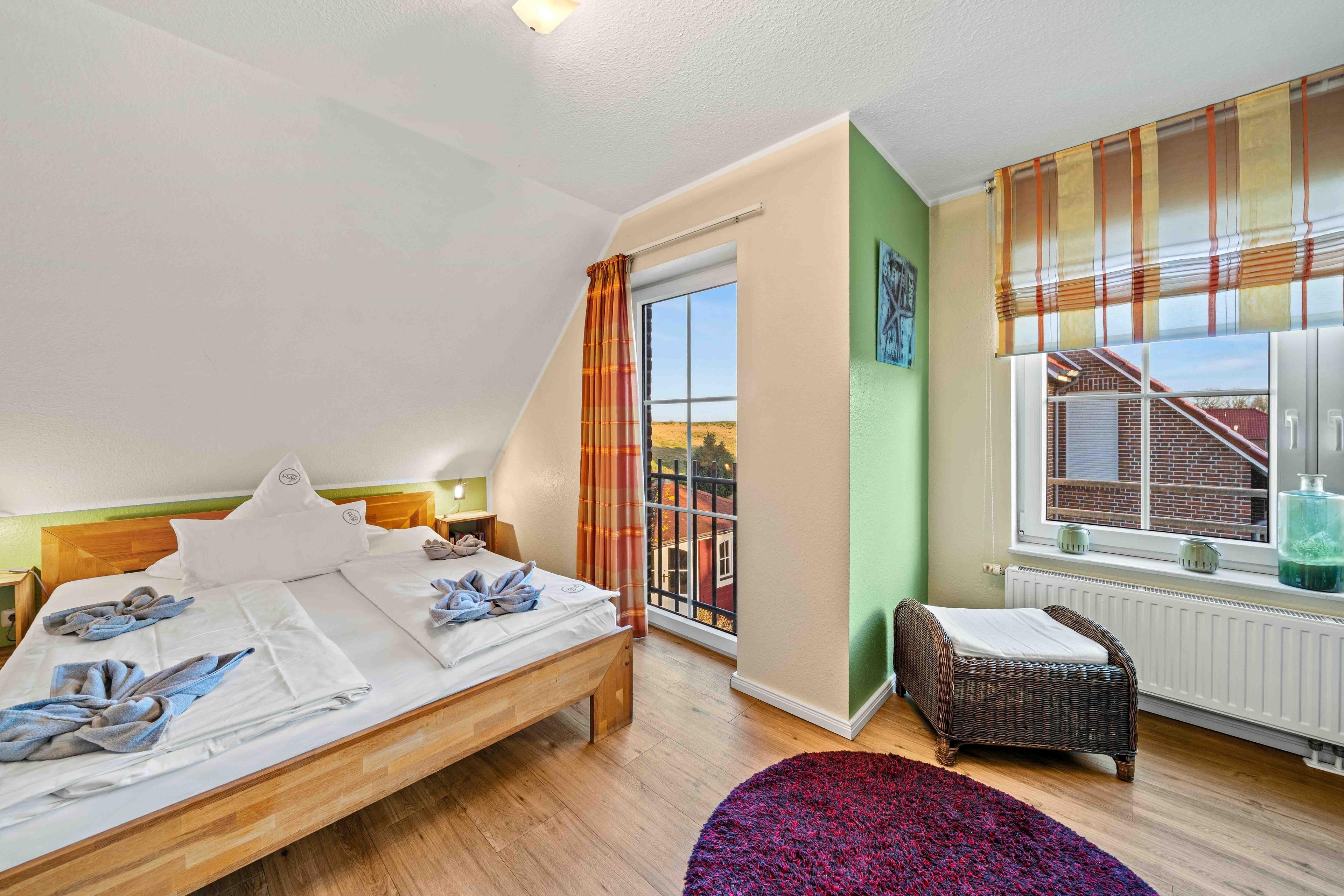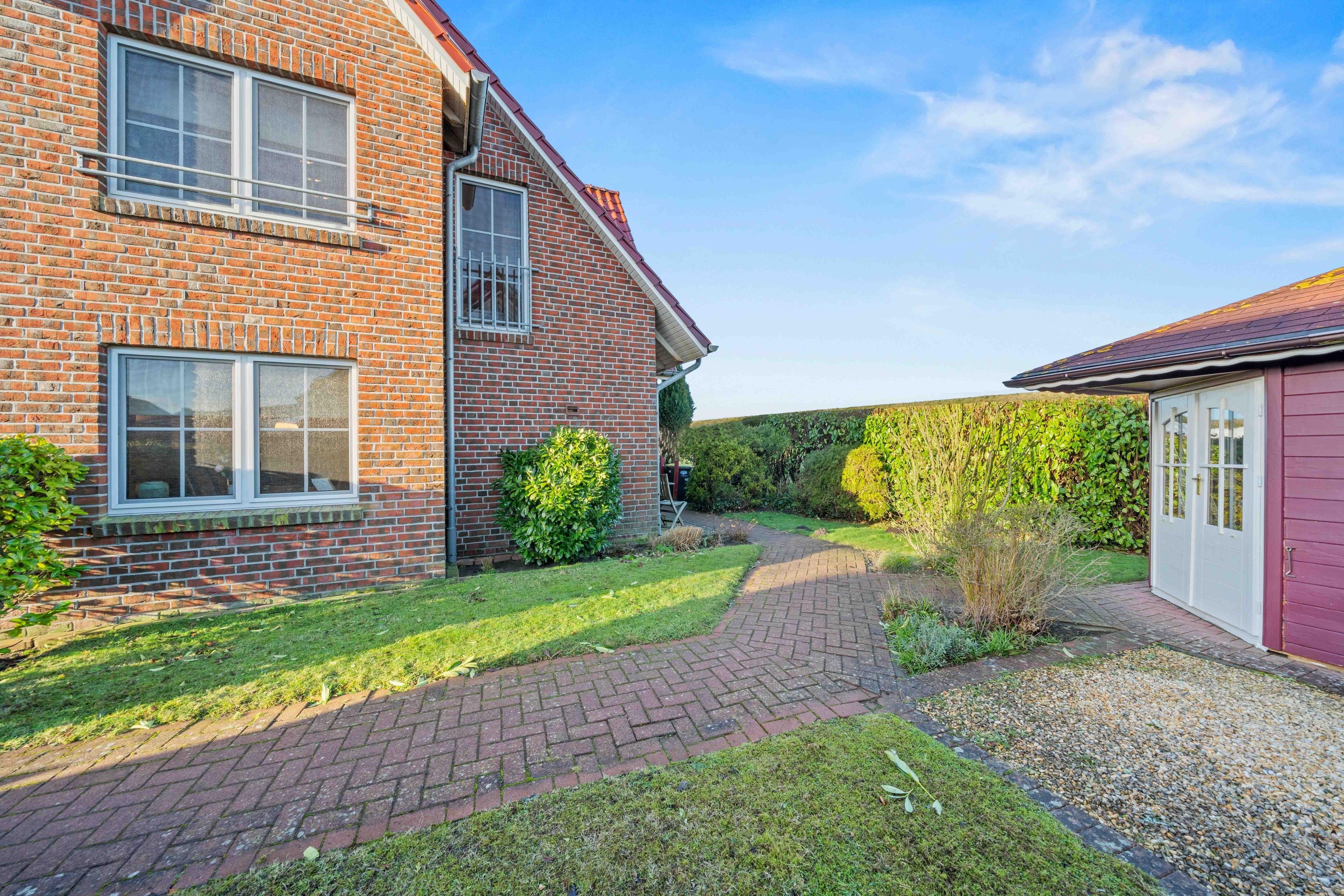 Willkommen im "Seehuus" Greetsiel – Ihrem Feriendomizil in traumhafter Lage, nur wenige Schritte vom Deich und dem Badesee entfernt. Auf ca. 90qm erwartet Sie eine gemütlich eingerichtete Doppelhaushälfte für einen entspannten Urlaub. Im Erdgeschoss genießen Sie ein einladendes Wohnzimmer sowie eine voll ausgestattete separate Küche. Die Essecke lädt zu geselligen Mahlzeiten ein. Ein Gäste-WC rundet das Angebot im Erdgeschoss ab. Im Obergeschoss befinden sich zwei Schlafzimmer mit großen Kleiderschränken sowie ein modernes Tageslichtbad. Ein Highlight ist außerdem das Dachgeschoss, in dem Sie einen Aufenthaltsraum mit einem Tischkicker finden, ideal für gesellige Abende oder Kinder. Im Außenbereich erwarten Sie zwei Gartenflächen - eine bietet einen eingezäunten Rasen mit Terrasse, der vor allem von Hundebesitzern sehr geschätzt wird. Im zweiten Bereich genießen Sie den Blick zum Deich und entspannen auf den Sonnenliegen. Ein Gartenhaus für Ihre Fahrräder ist vorhanden, ebenso wie der PKW-Parkplatz direkt vor dem Haus. Nutzen Sie die direkte Deichlage des Hauses für ausgedehnte Spaziergänge zum Hafen oder ins idyllische Ortszentrum.