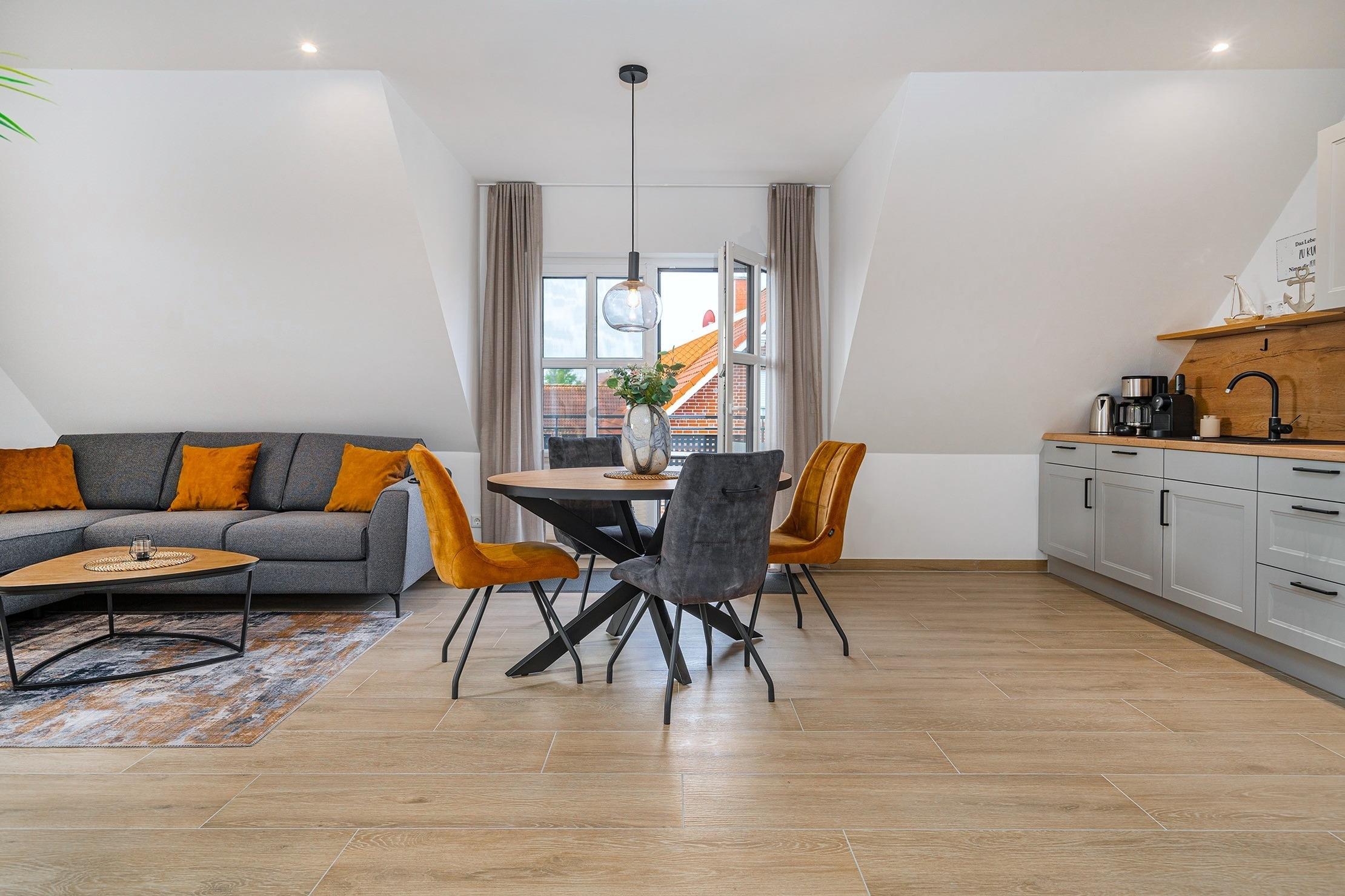 Moderne Ferienwohnung Vista 10 in Greetsiel mit Balkon, Fußbodenheizung und hundefreundlich, ideal für entspannte Nordsee-Aufenthalte.