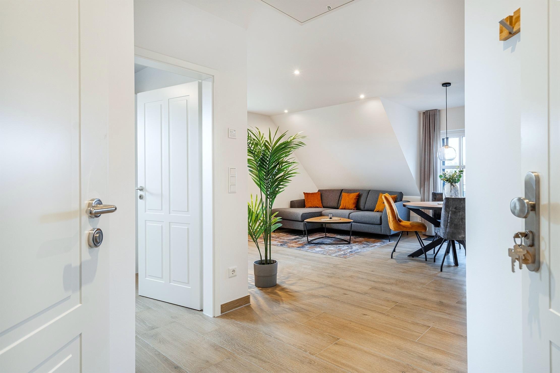 Unsere neue Ferienwohnung "Vista 10" heißt Sie ab dem Spätsommer 2024 willkommen. Die moderne und hochwertig eingerichtete Wohnung im Obergeschoss verfügt über ein großzügiges Tageslichtbad mit ebenerdiger Dusche, eine voll ausgestattete Küche, Fußbodenheizung sowie einen lichtdurchfluteten und gemütlichen Wohnraum. Das Schlafzimmer überzeugt mit einem komfortablen Boxspringbett. Genießen Sie Ihre Auszeit auf dem möbilierten Balkon und lassen Sie die Seele bei bester Nordsee-Luft baumeln. Ein eigener Parkplatz und ein Abstellraum für Ihre Fahrräder steht Ihnen selbstverständlich zur Verfügung. Auch Ihr Hund ist in unserer Vista 10 herzlich Willkommen!