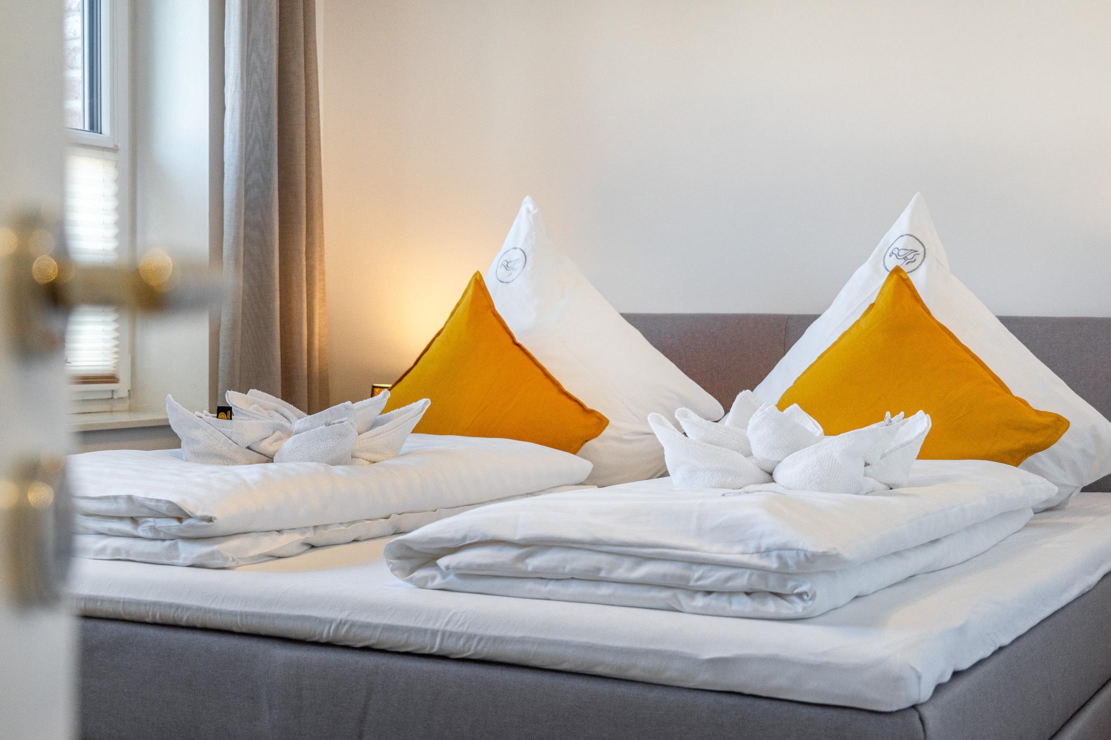 * Gerne bieten wir Ihnen unser Wäschepaket für Ihren Aufenthalt an, welches bezogene Betten, sowie Handtücher (Duschtuch, zwei Handtücher, Duschvorleger und ein Geschirrtuch) umfasst und € 19,50 p.P. kostet. Sie können dieses in der Buchungsstrecke unter dem Punkt "Ihr Mietpreis" hinzu buchen. *