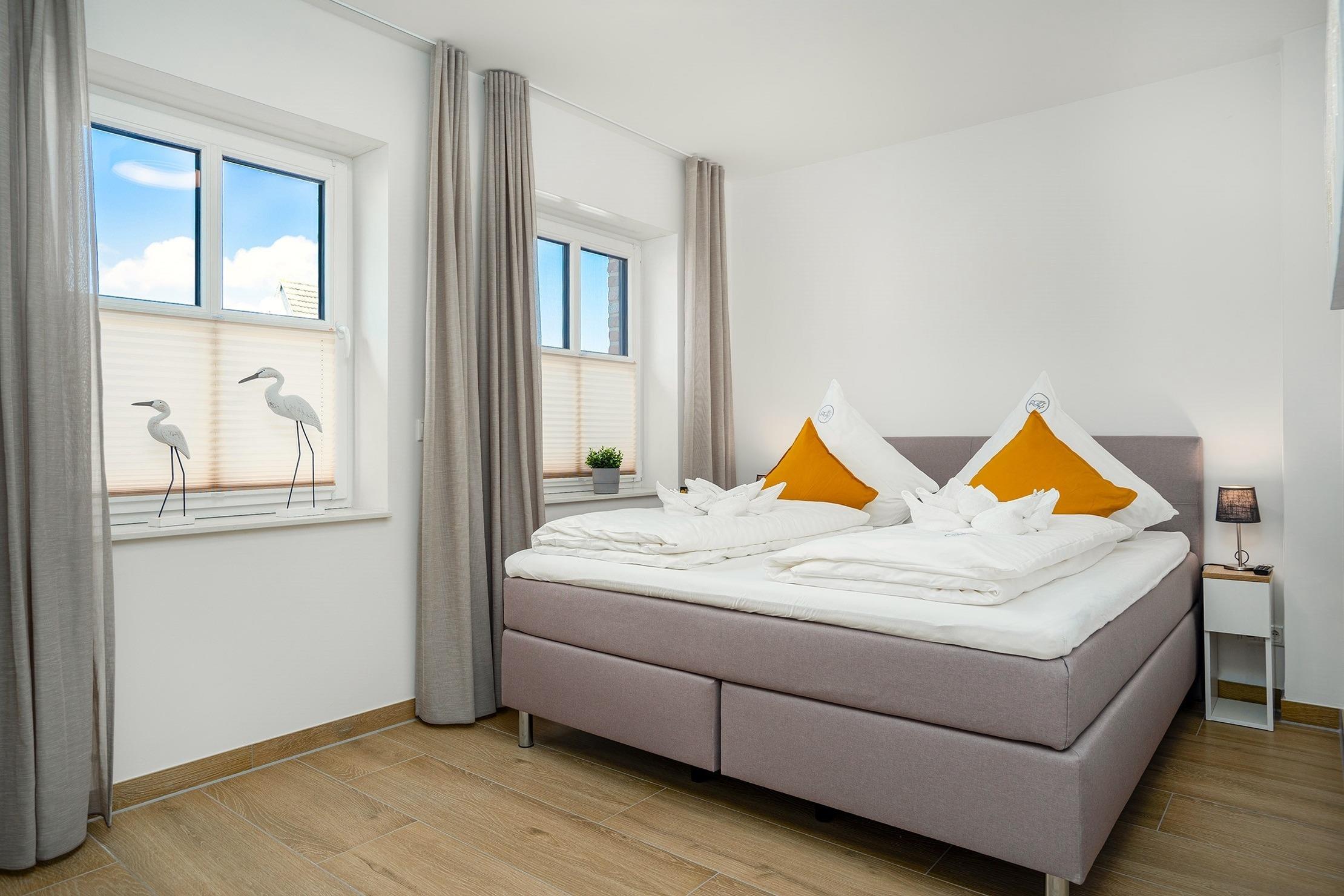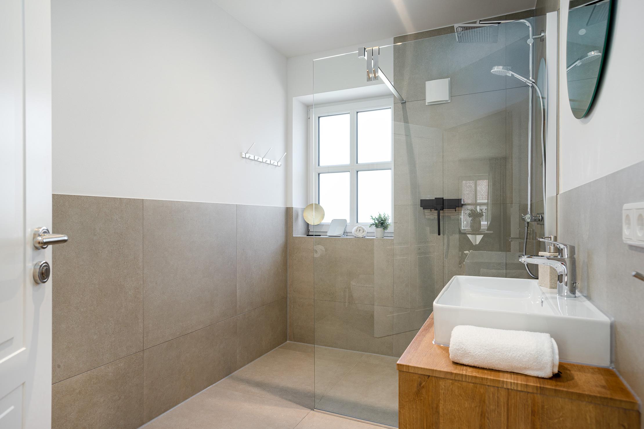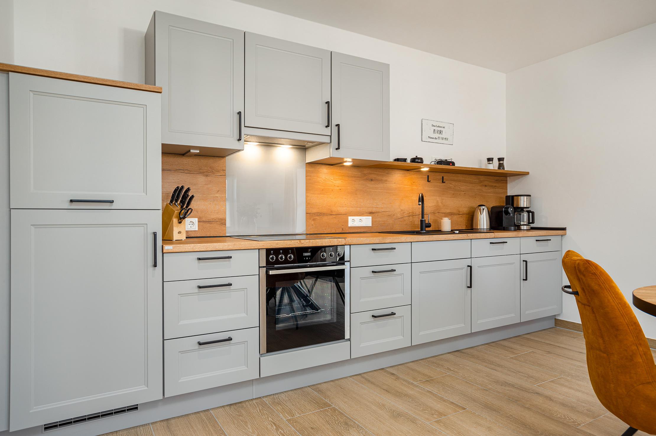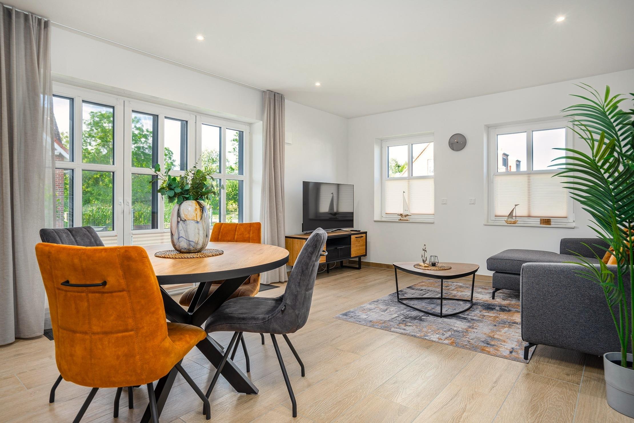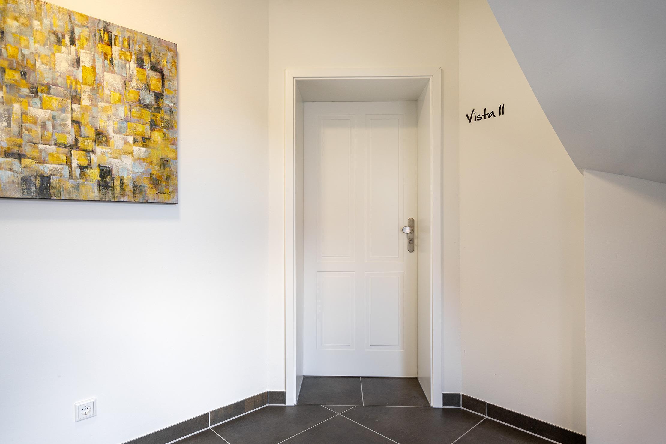 Unsere neue Ferienwohnung „Vista 11“ bietet auf 60qm alles, was man für einen entspannten Urlaub braucht. Im Erdgeschoss gelegen, besticht die Wohnung durch einen modernen und hellen Wohn-Ess-Bereich, der viel Platz zum Wohlfühlen bietet. Die hochwertige Einbauküche ist voll ausgestattet und lässt keine Wünsche offen. Das separate Schlafzimmer ist gemütlich und mit einem komfortablen Boxspringbett ausgestattet. Ein Highlight der Wohnung ist das Tageslichtbad, das mit einer ebenerdigen Dusche überzeugt und ein angenehmes Ambiente schafft. Der großzügige, eingezäunte Garten mit einer einladenden möbilierten Terrasse bietet viel Raum zum Entspannen und Genießen. Hunde sind in unserer „Vista 11“ herzlich willkommen, sodass auch Vierbeiner die Auszeit im Grünen genießen können. Neben einem Fahrradabstellraum steht selbstverständlich auch ein reservierter Parkplatz zur Verfügung.