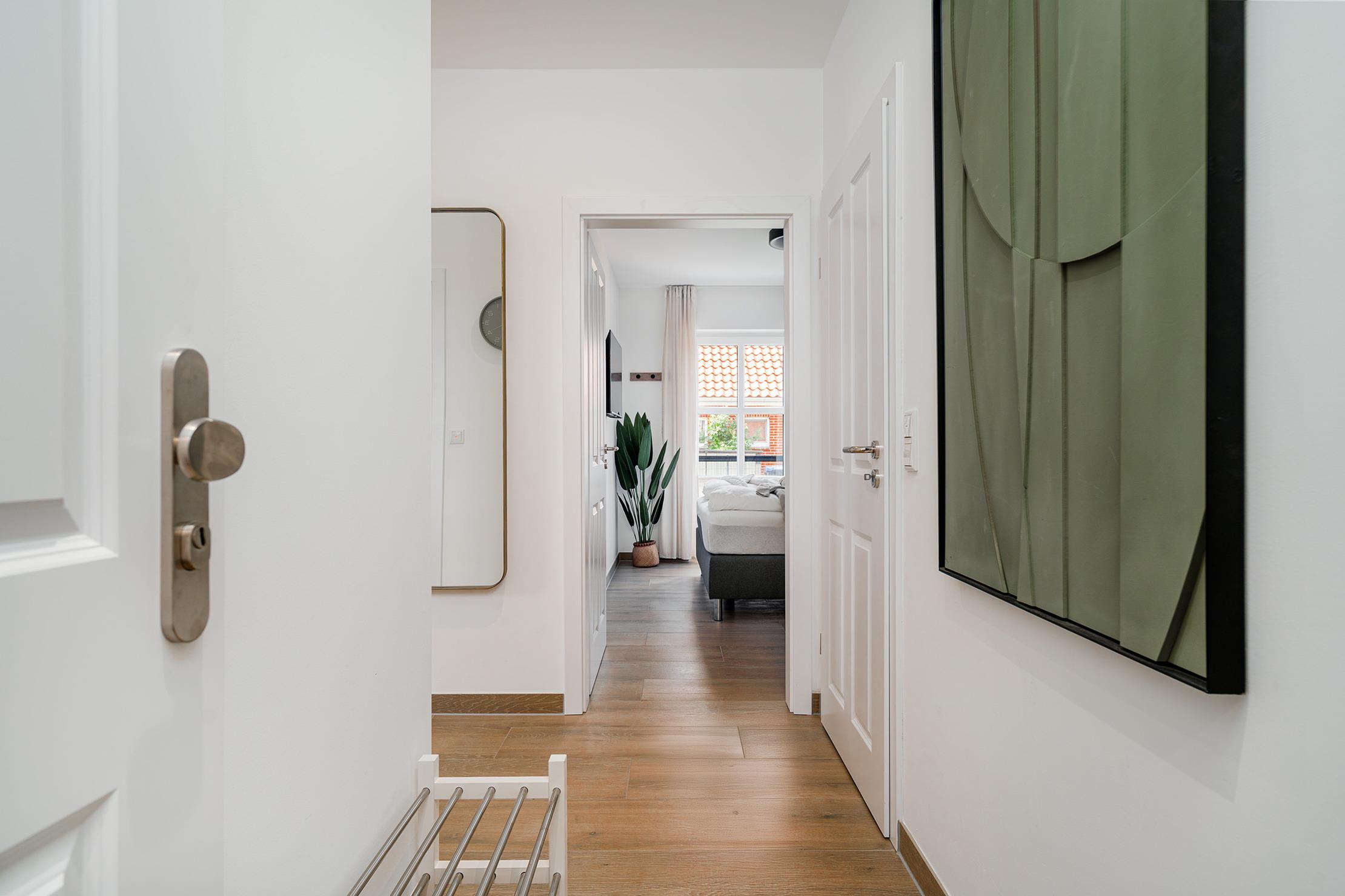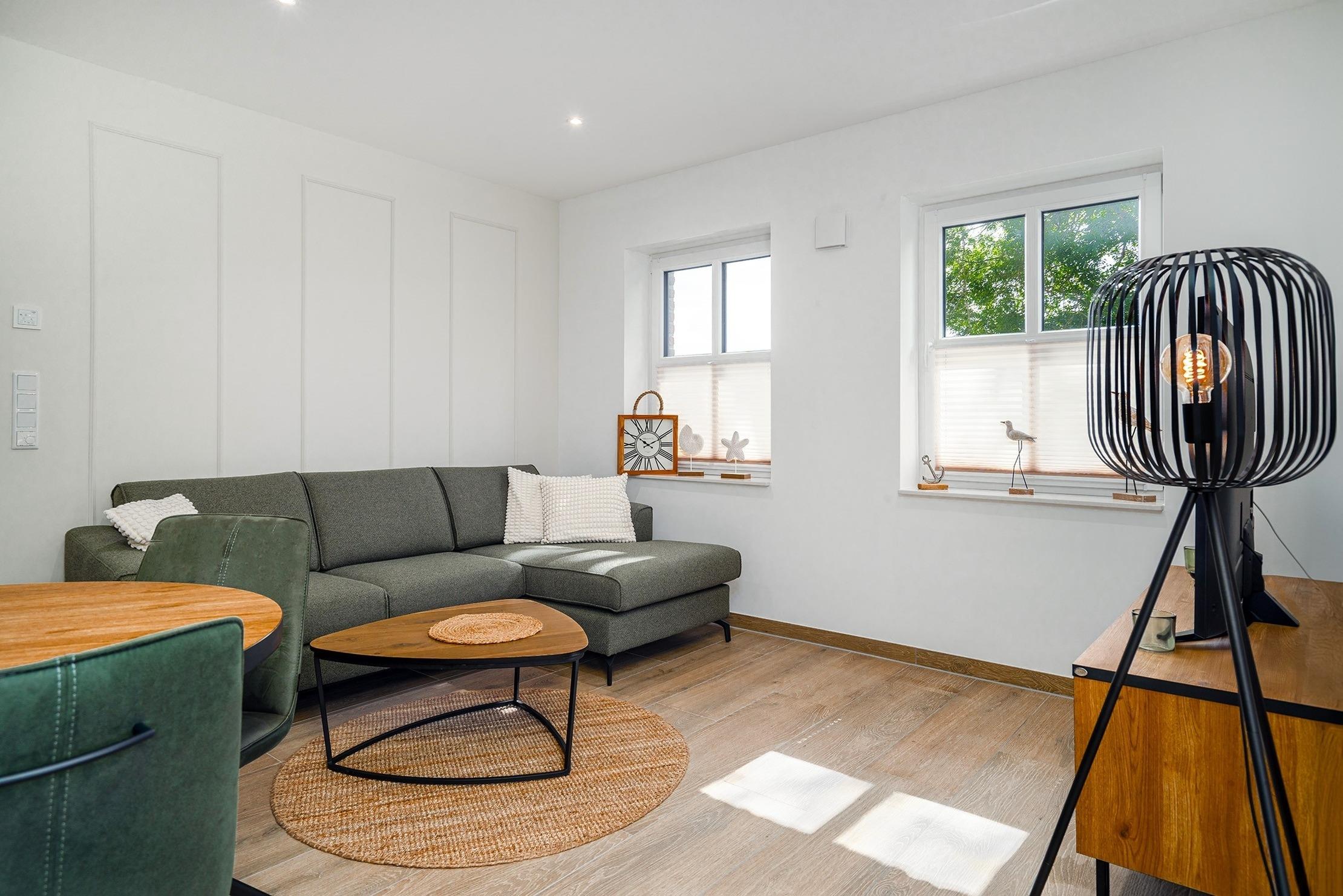 Rein kommen und wohl fühlen - dieses Gefühl wird Ihnen unsere neue Ferienwohnung "Vista 4" vermitteln. Auf etwa 70qm bietet diese Ferienwohnung einen hellen und vor allem gemütlich eingerichteten Wohnraum mit bequemem Sofa, eine voll ausgestattete Küchenzeile sowie einen Esstisch. Neben dem Tageslichtbad mit ebenerdiger Dusche und einem Abstellraum verfügt die Wohnung außerdem über zwei Schlafzimmer - eines davon bietet Ihnen beim Aufwachen einen Weitblick auf die Felder. Ausgestattet sind diese mit hochwertigen Boxspringbetten sowie ausreichend Ablagefläche. Ihr Hund wird sich im Garten wohl fühlen, während Sie sonnige Stunden in ruhiger Lage auf den bequemen Gartenmöbeln der Terrasse genießen. Ein eigener Parkplatz sowie eine Abstellmöglichkeit für Ihre Fahrräder sind selbstverständlich ebenfalls Bestandteil dieser Wohnung.